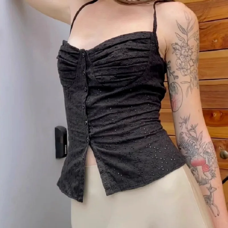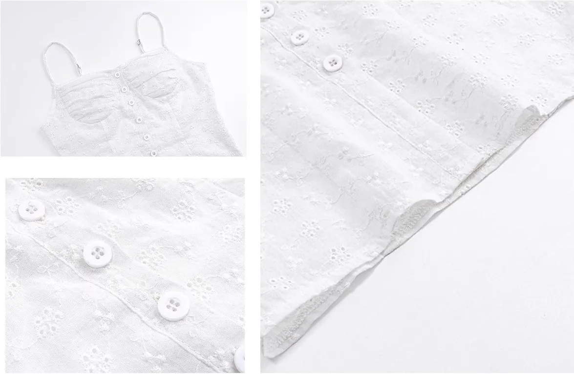 MQTIME - White Heavy Industry Embroidered Small Strap Women'S Summer Unique Temperament Slim Fit Button Top
