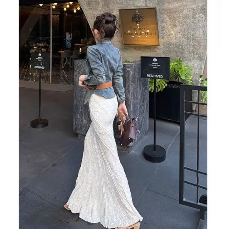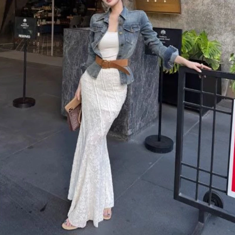MQTIME  -  White Hip Slim Lace Elegant Long Skirts Fishtail Trumpet A-line French Female Spring High Waist Skirts Mermaid Chic Women Sumer