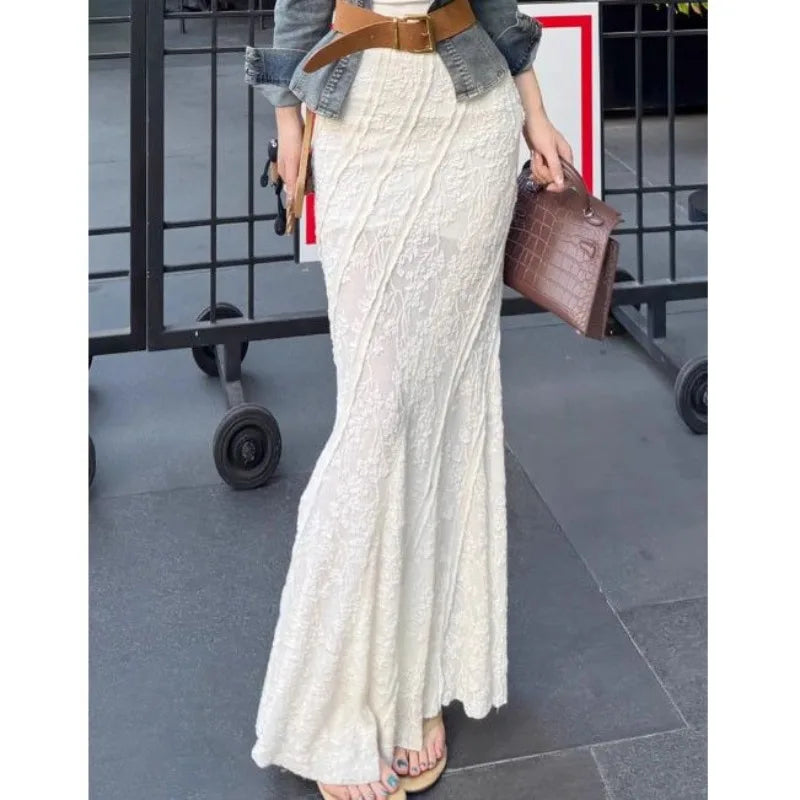 MQTIME - White Hip Slim Lace Elegant Long Skirts Fishtail Trumpet A-line French Female Spring High Waist Skirts Mermaid Chic Women Sumer