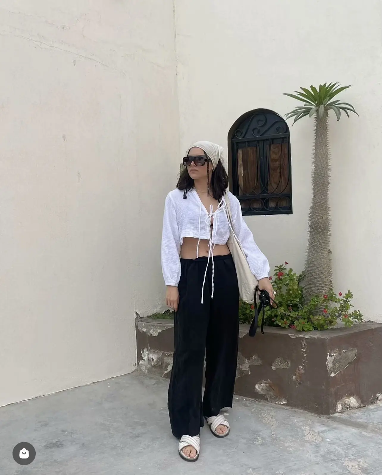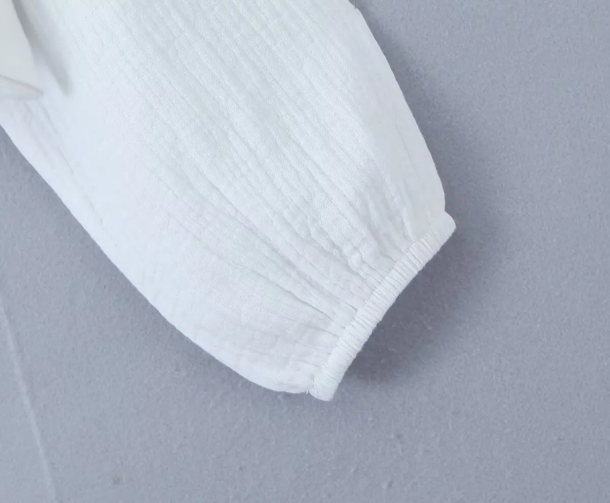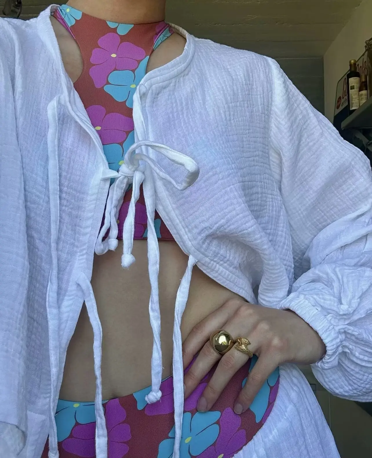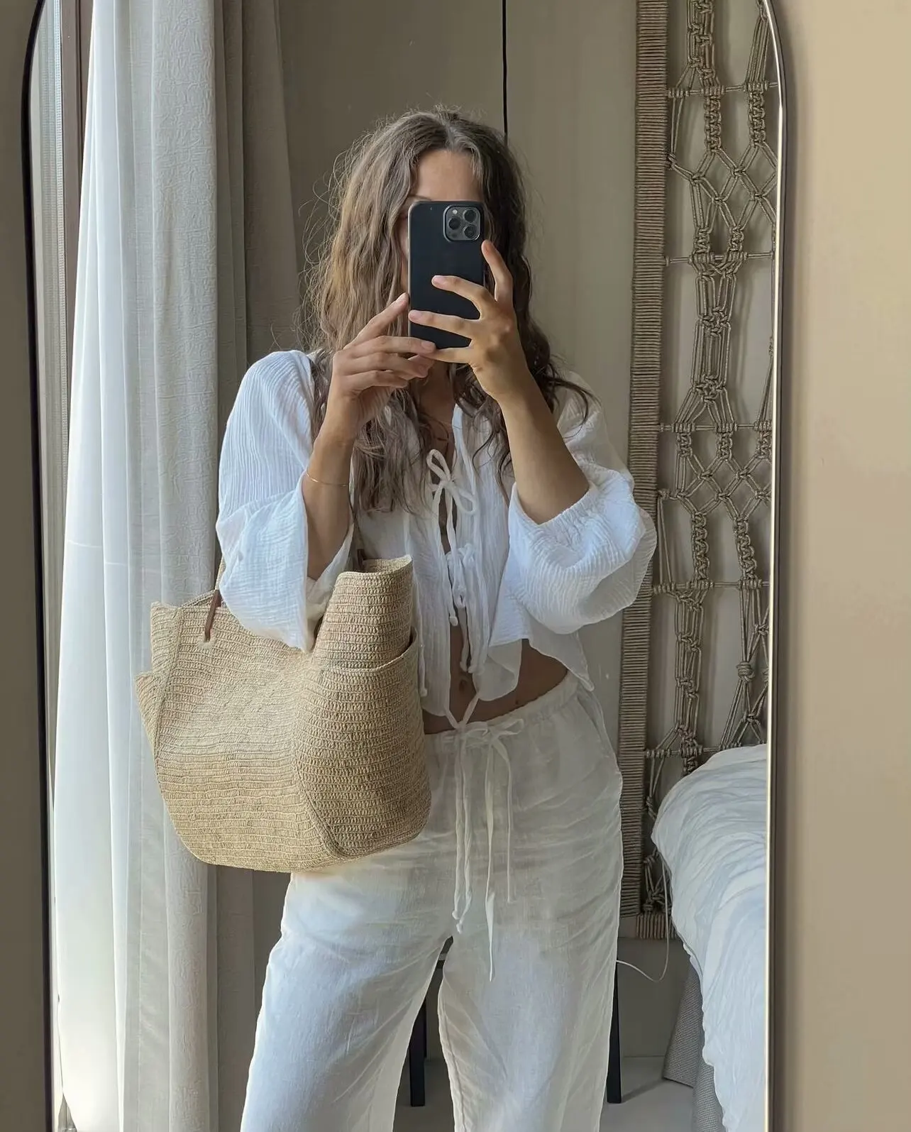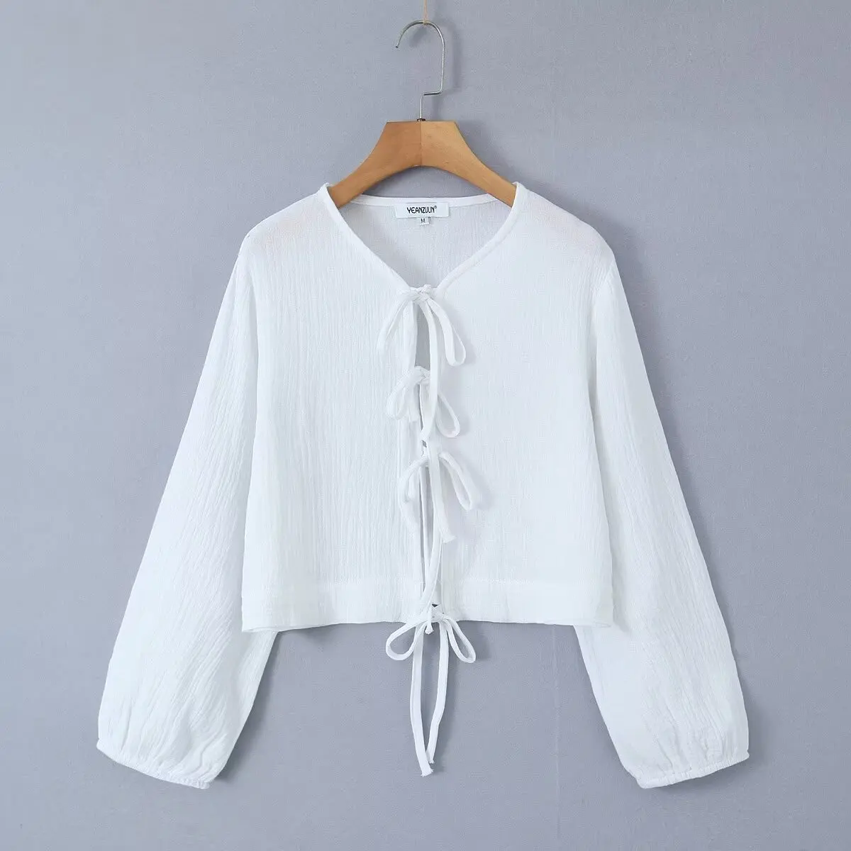 MQTIME - White Wide Leg Pants Sets 2024 New Long Sleeve Lace-up Cropped Shirt+Casual Trouser Suits Summer Fashion Holiday Two- Piece Set