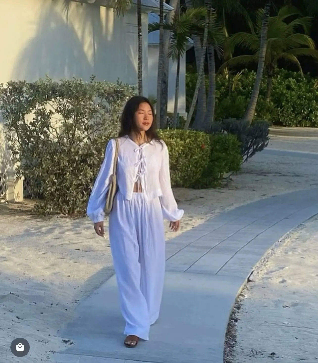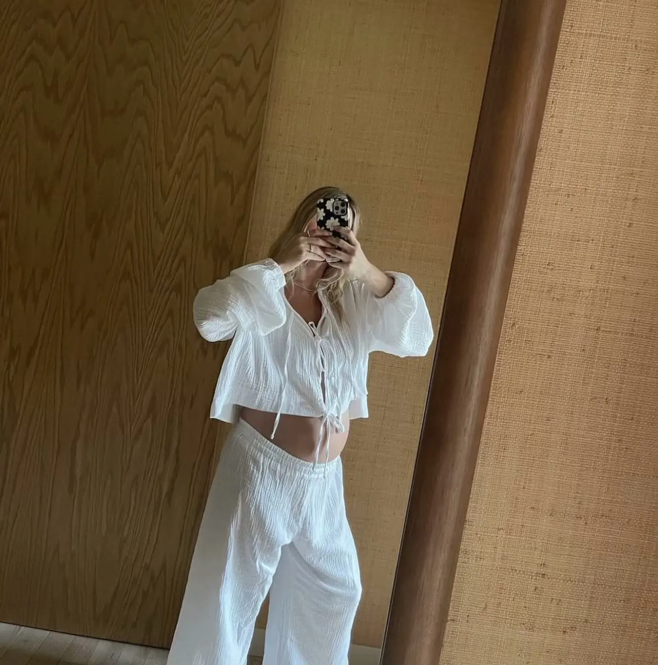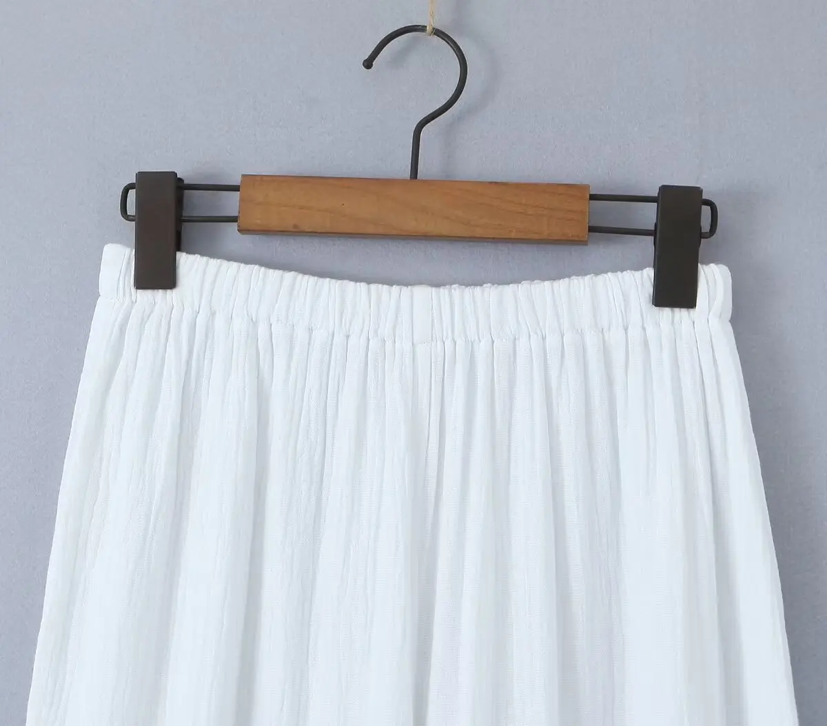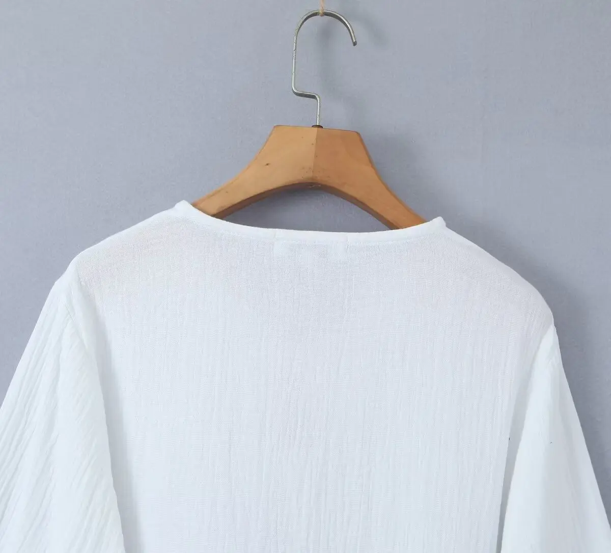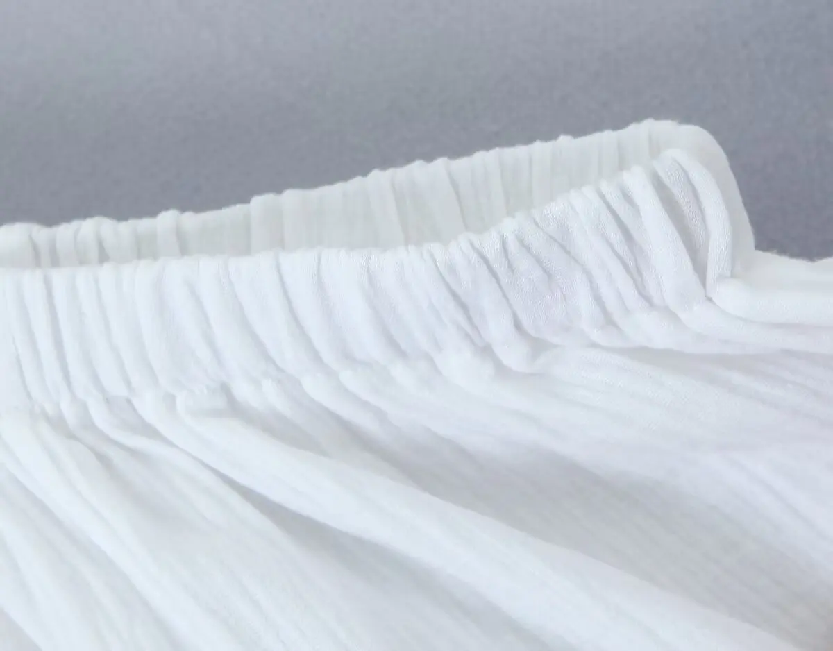 MQTIME - White Wide Leg Pants Sets 2024 New Long Sleeve Lace-up Cropped Shirt+Casual Trouser Suits Summer Fashion Holiday Two- Piece Set