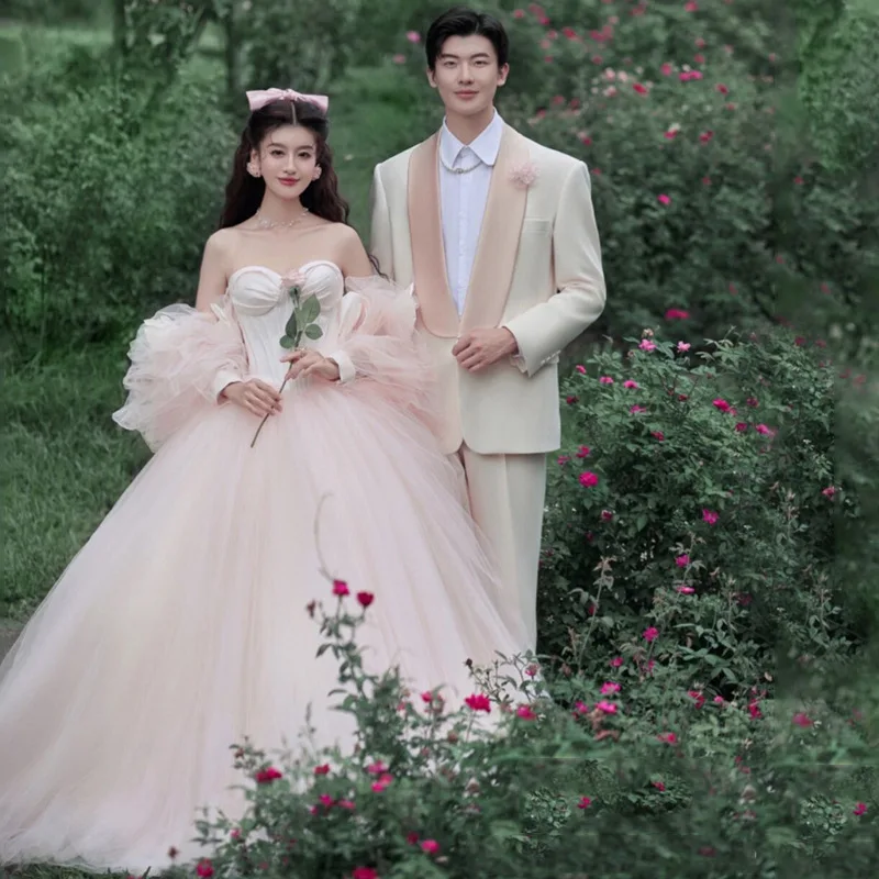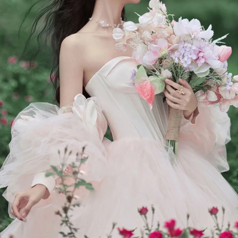 MQTIME - White Women Wedding Dresses Tulle Puff Sleeves Bridal Gowns Formal Bridal Dress