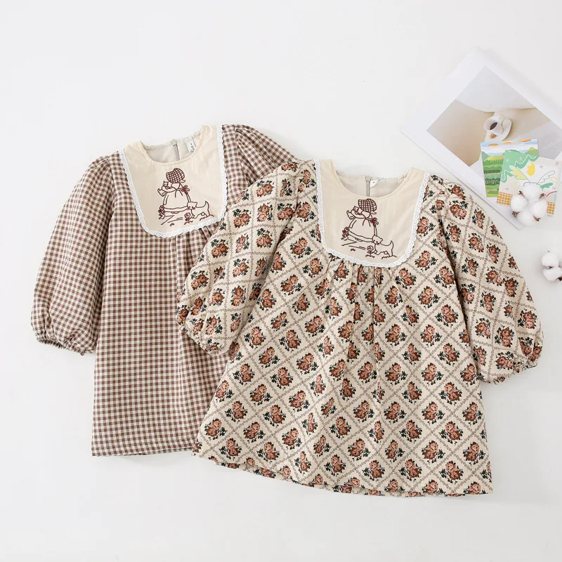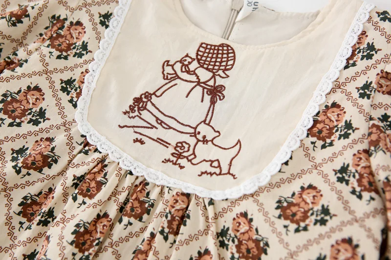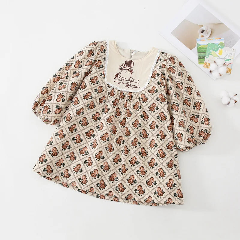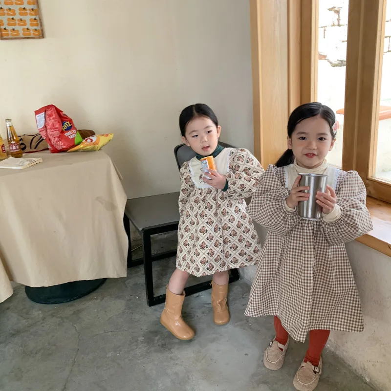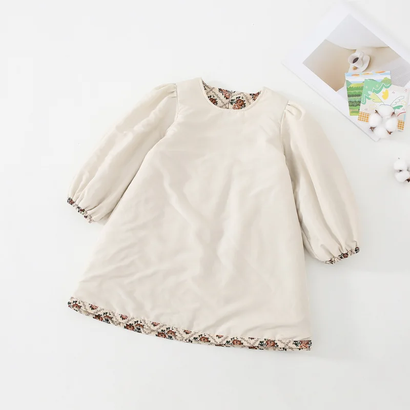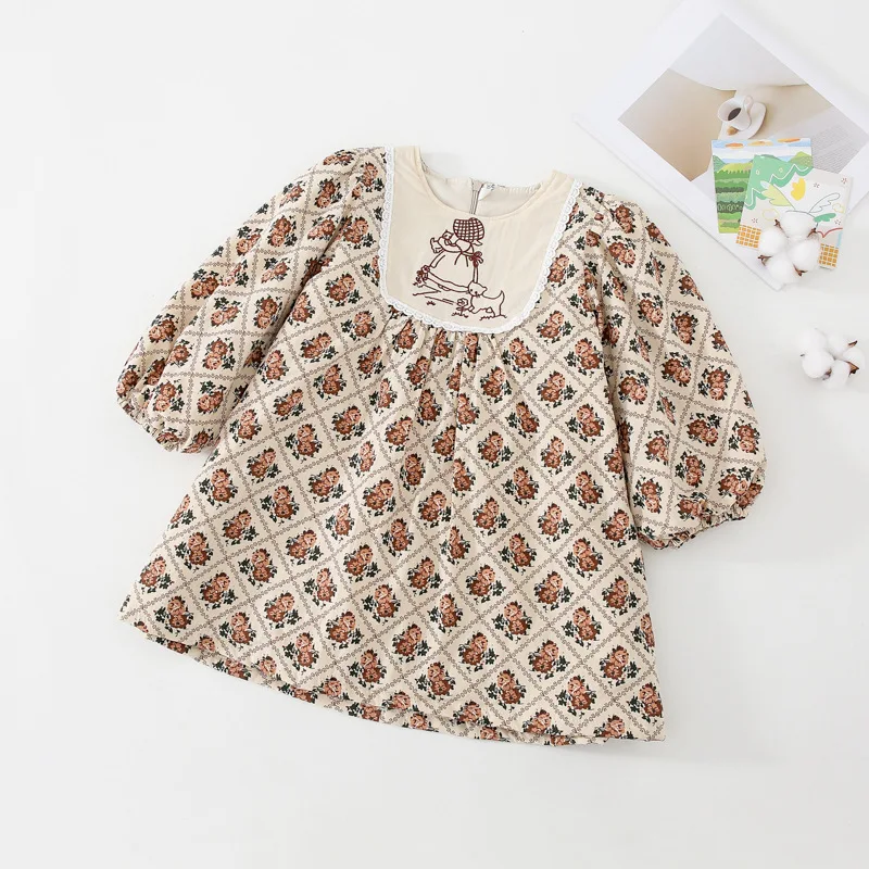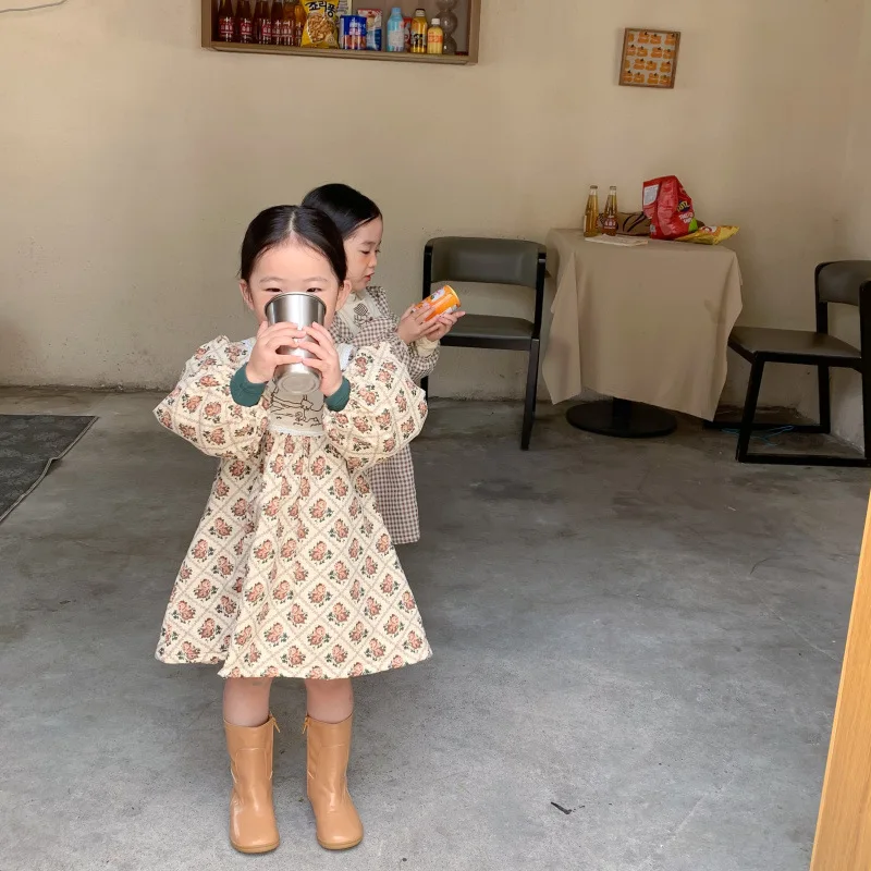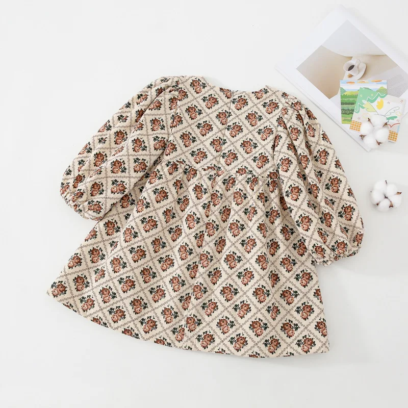 MQTIME - Winter Kids Clothes Thicekn Girls Dresses Floral Dress for Girls Puff Sleeve Kids Outerwear