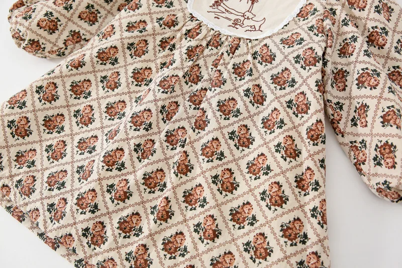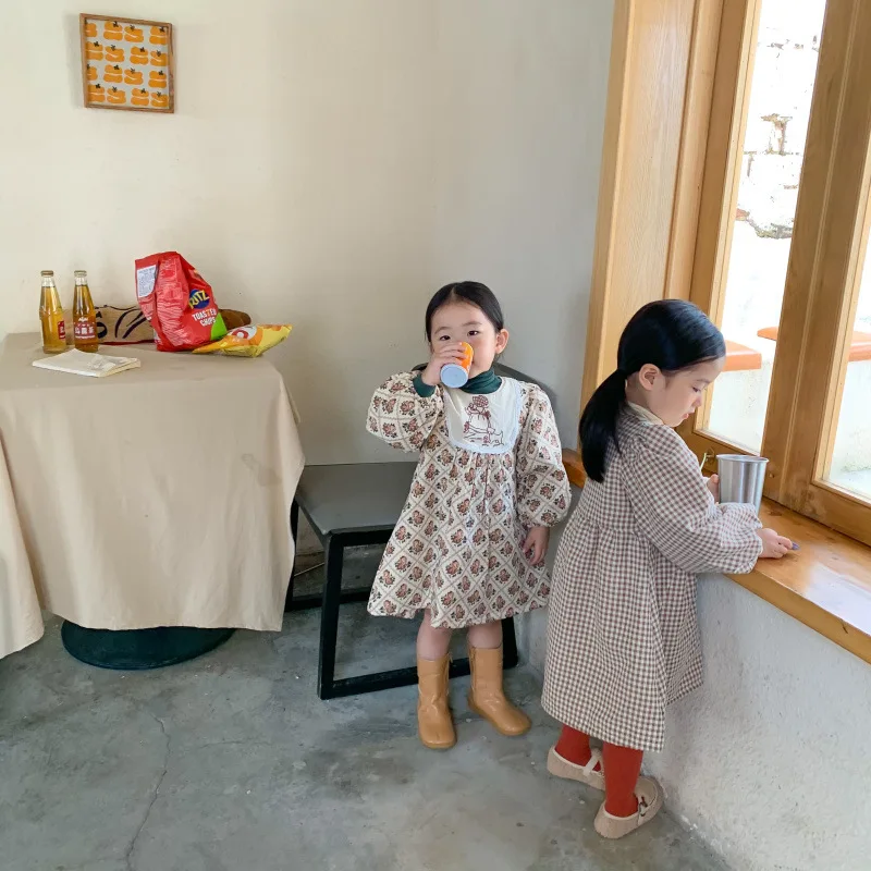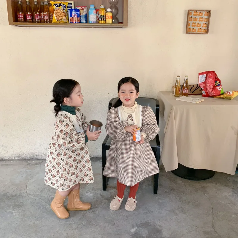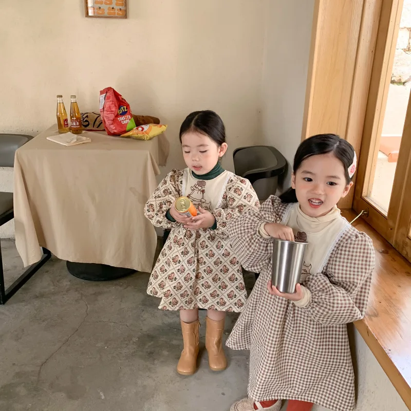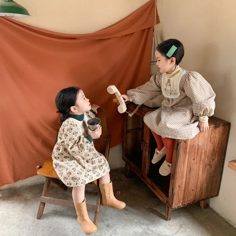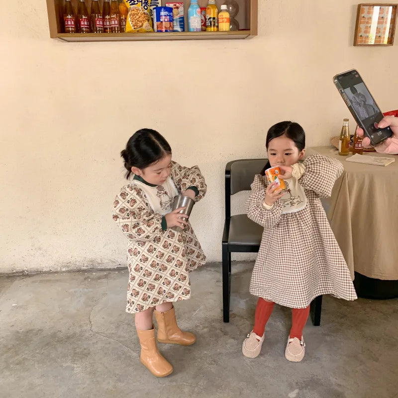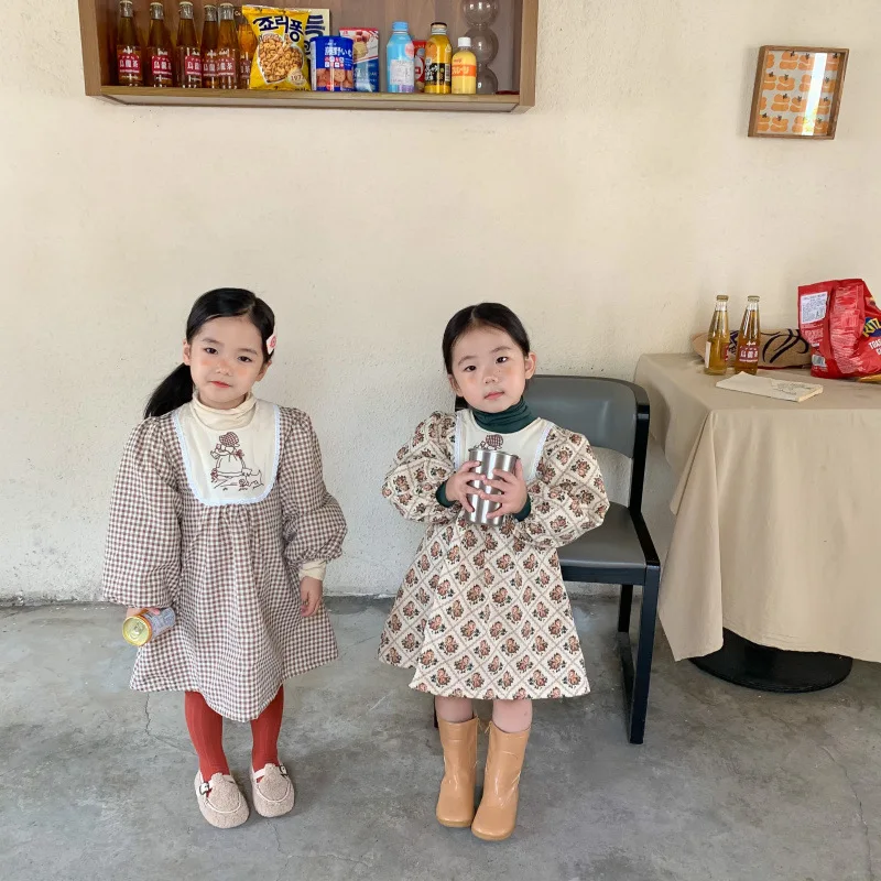 MQTIME - Winter Kids Clothes Thicekn Girls Dresses Floral Dress for Girls Puff Sleeve Kids Outerwear
