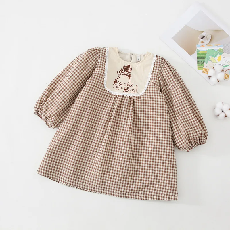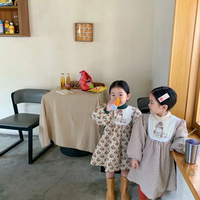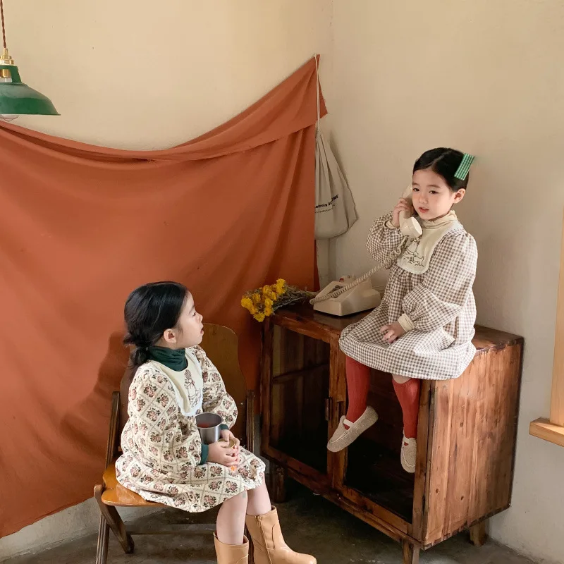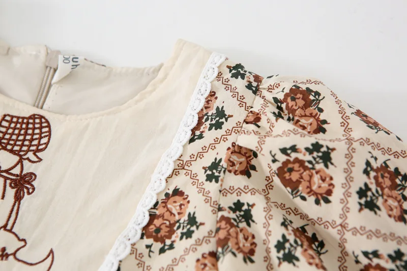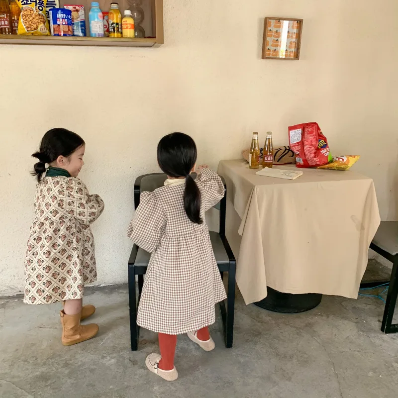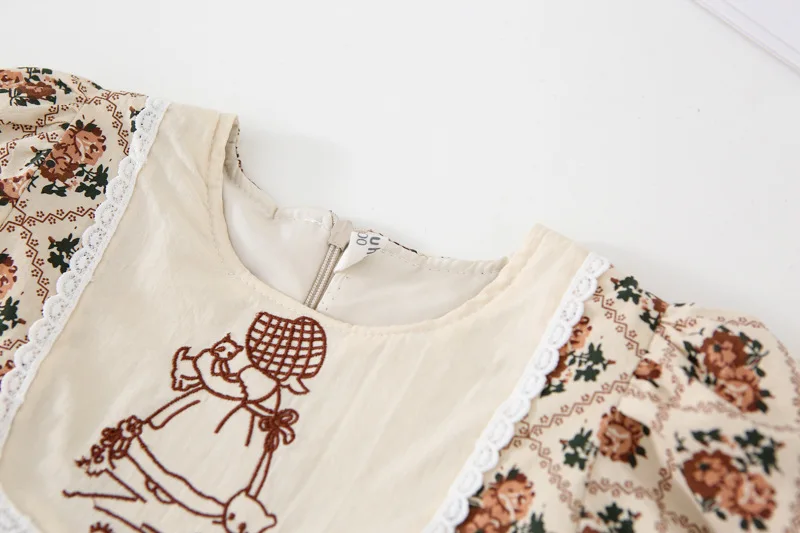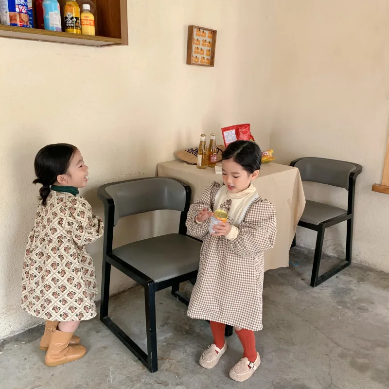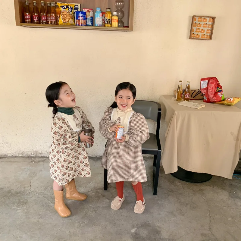 MQTIME - Winter Kids Clothes Thicekn Girls Dresses Floral Dress for Girls Puff Sleeve Kids Outerwear