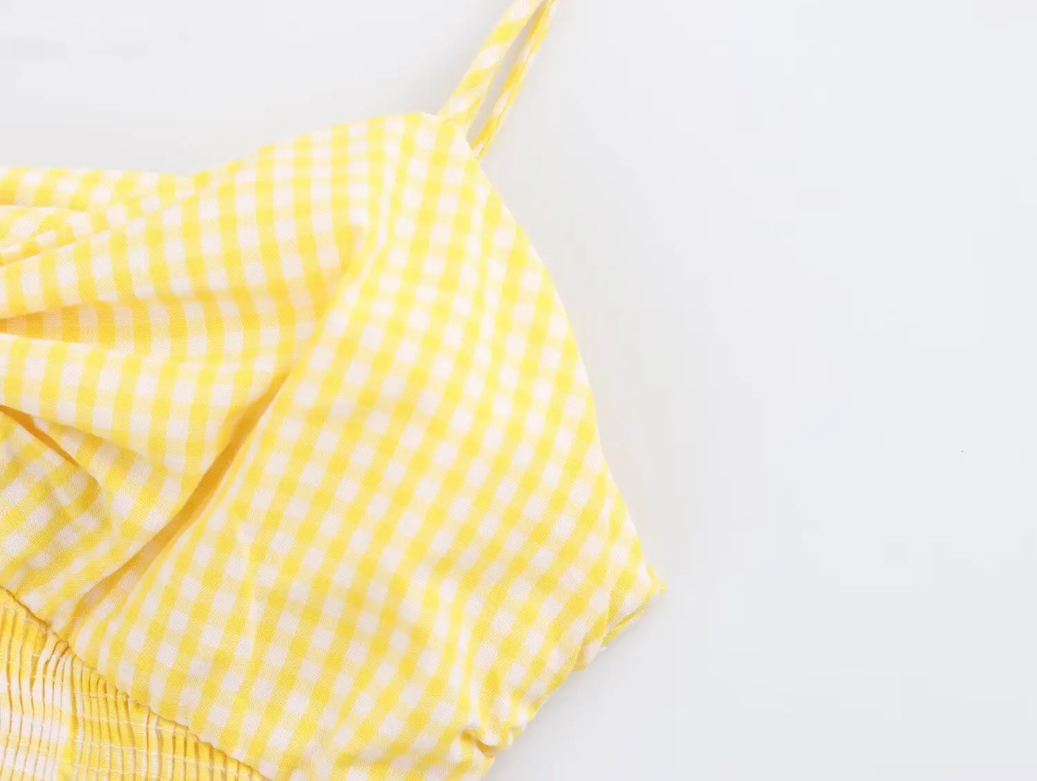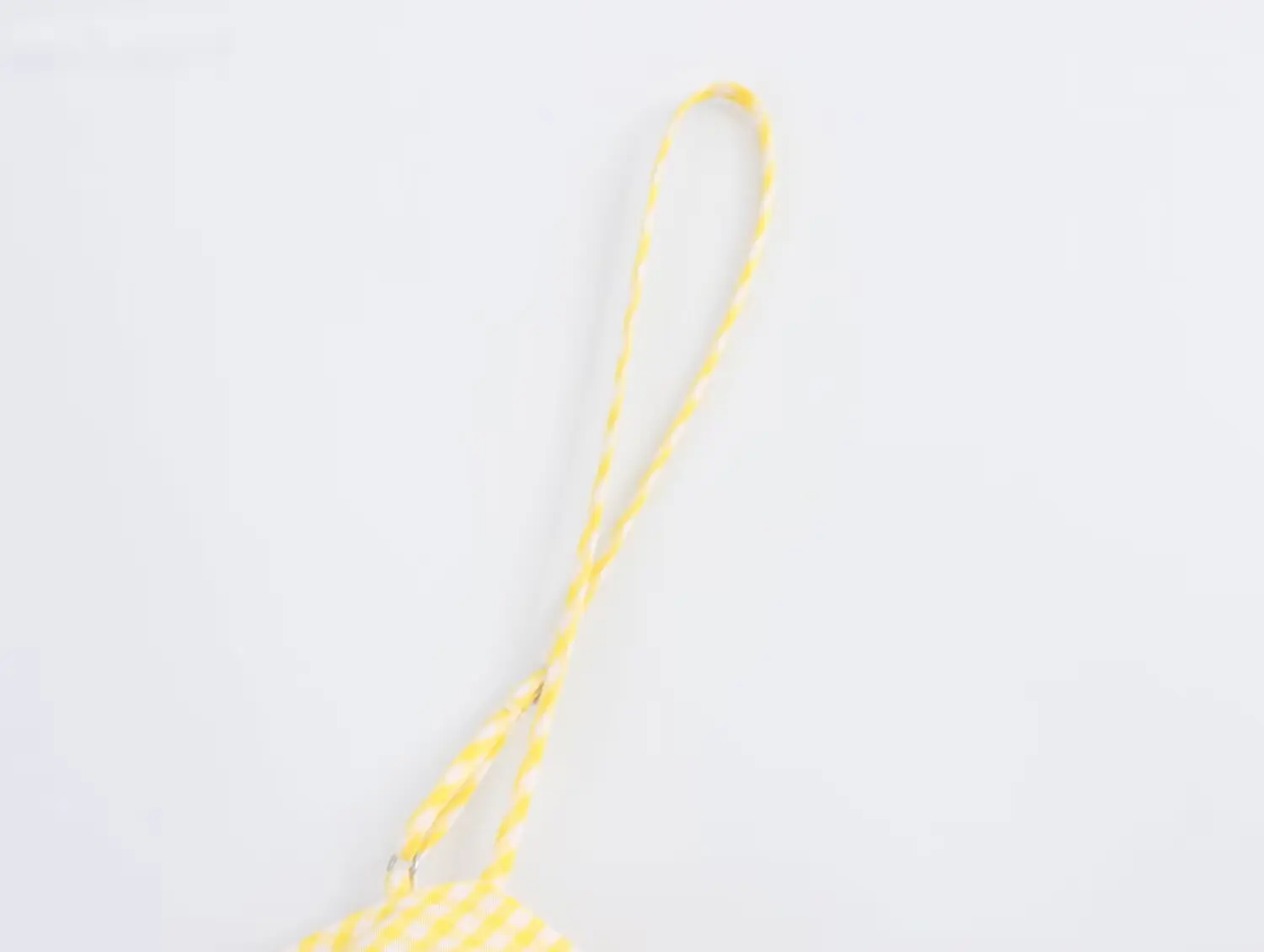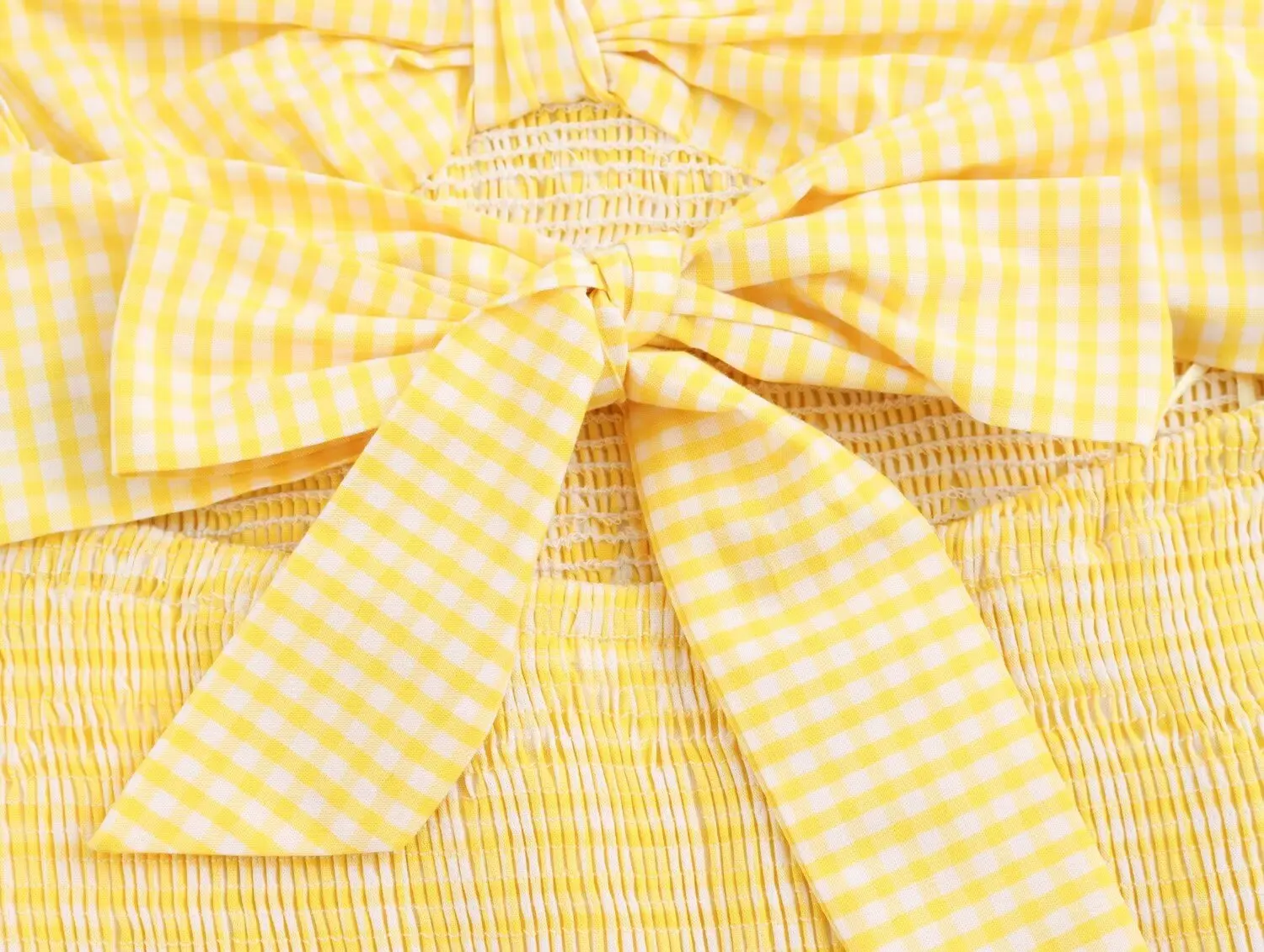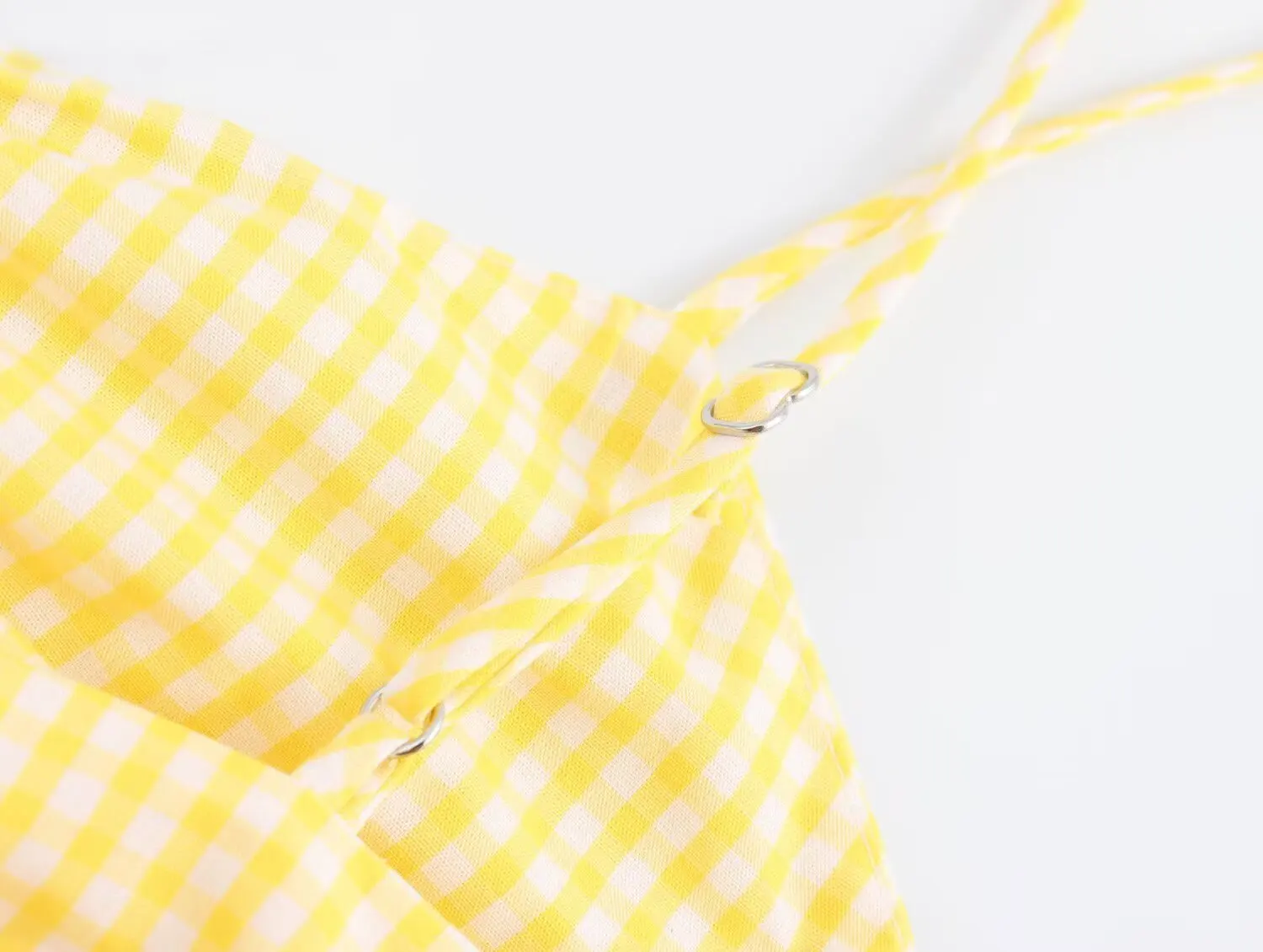 MQTIME - Woman's Beach Style Sexy A-Line Dresses Yellow Plaid Sleeveless Bow Decorate Backless Summer Mini Dress Woman Trendy