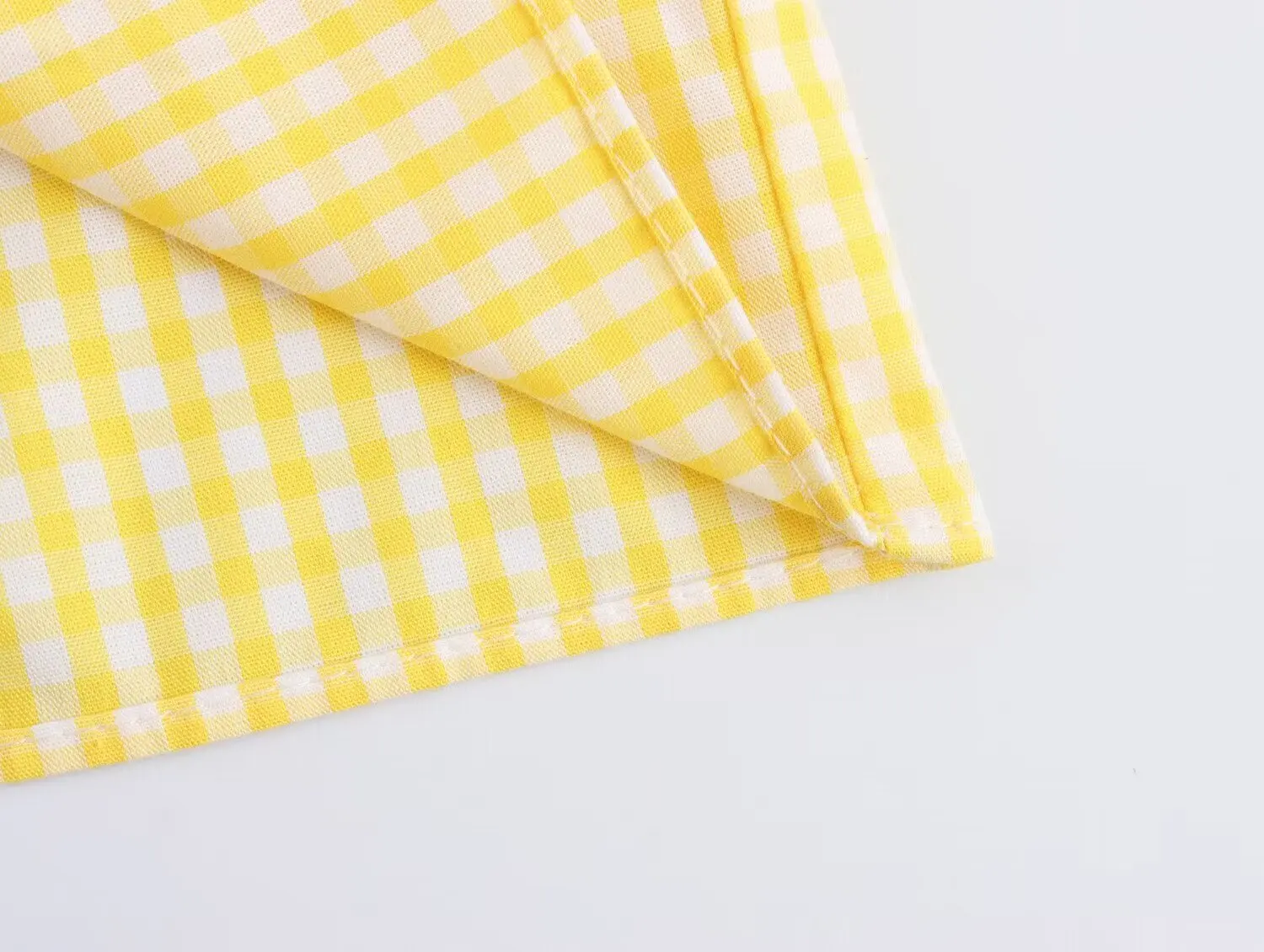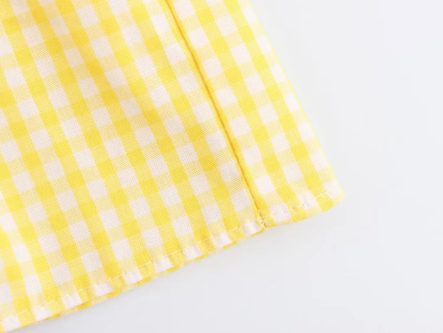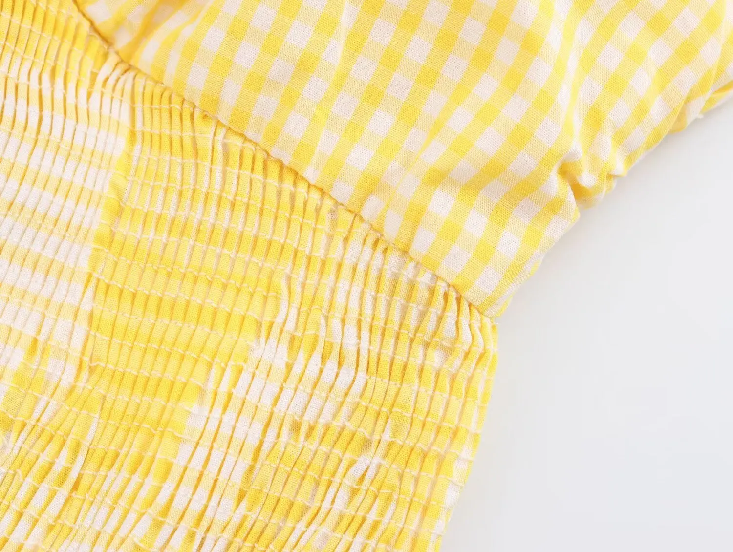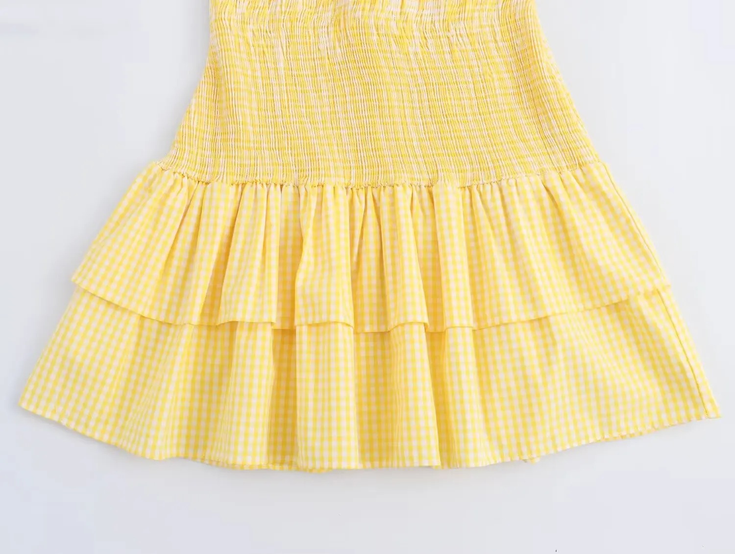 MQTIME - Woman's Beach Style Sexy A-Line Dresses Yellow Plaid Sleeveless Bow Decorate Backless Summer Mini Dress Woman Trendy