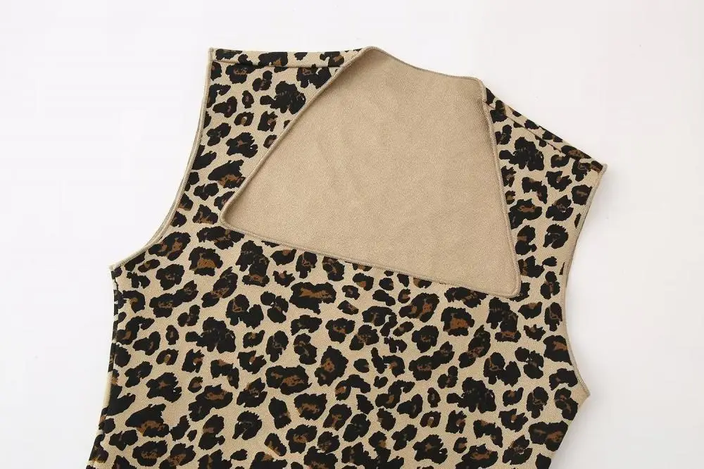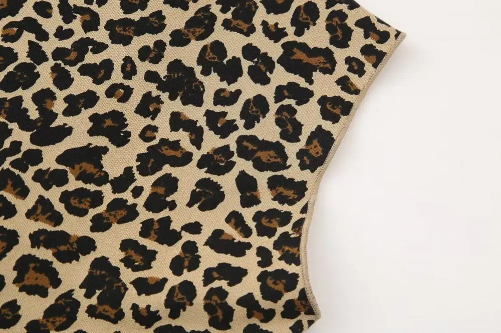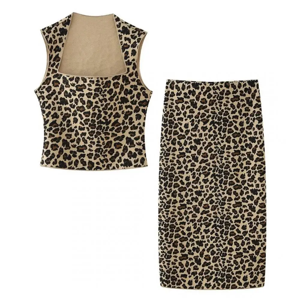 MQTIME  -  Women 2 Piece Set Leopard Print Sexy Sleeveless Bustier Crop Top Vintage High Waist Slim Midi Skirt Casual Commuting Wear