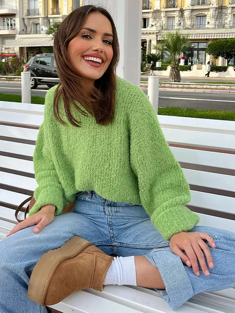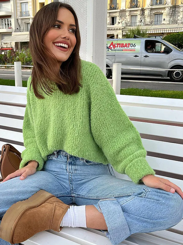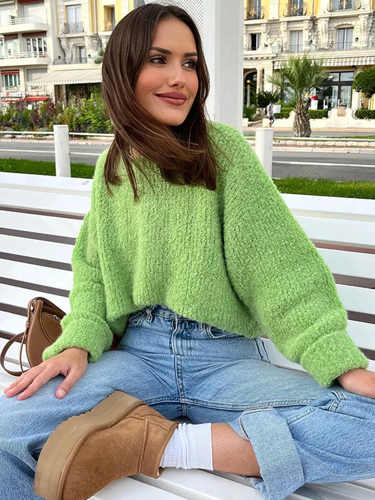 Mqtime Women Cropped Bat Wing Knitted Sweater Autumn Long Sleeve O-neck Loose Pullover Jumper Female Solid Casual Warm Knitwear