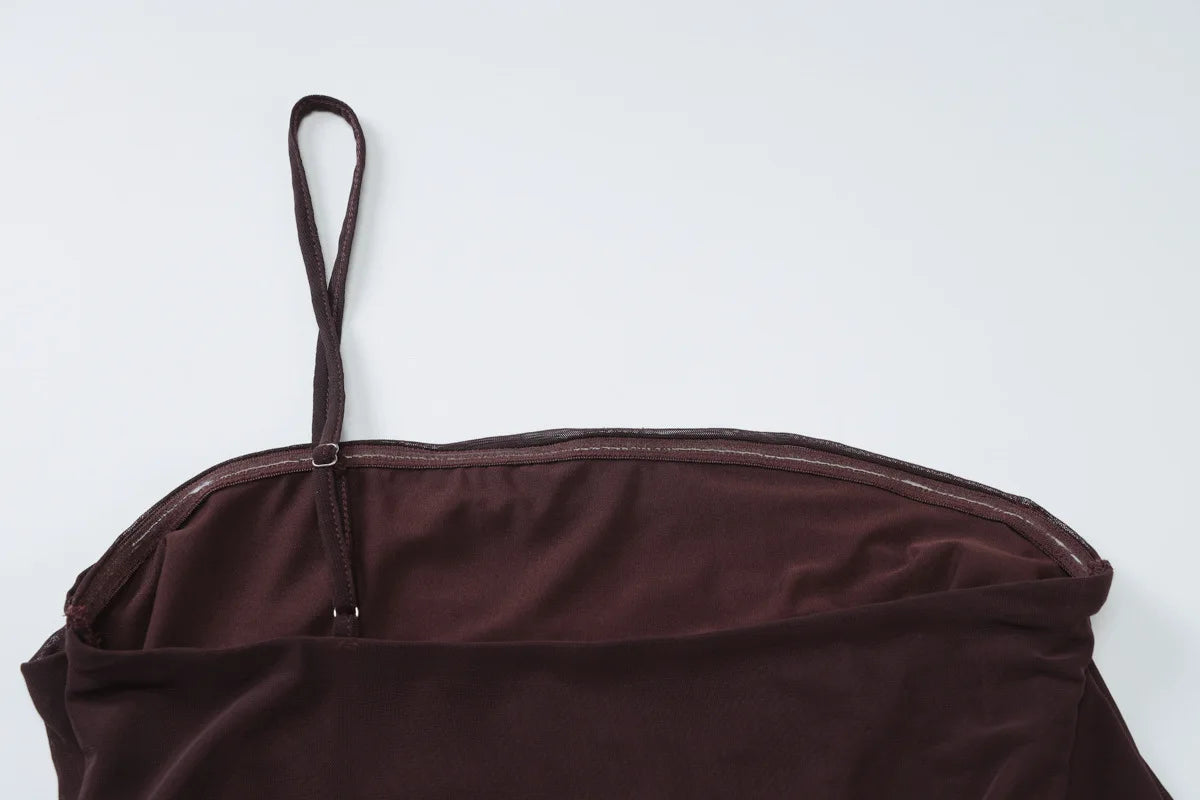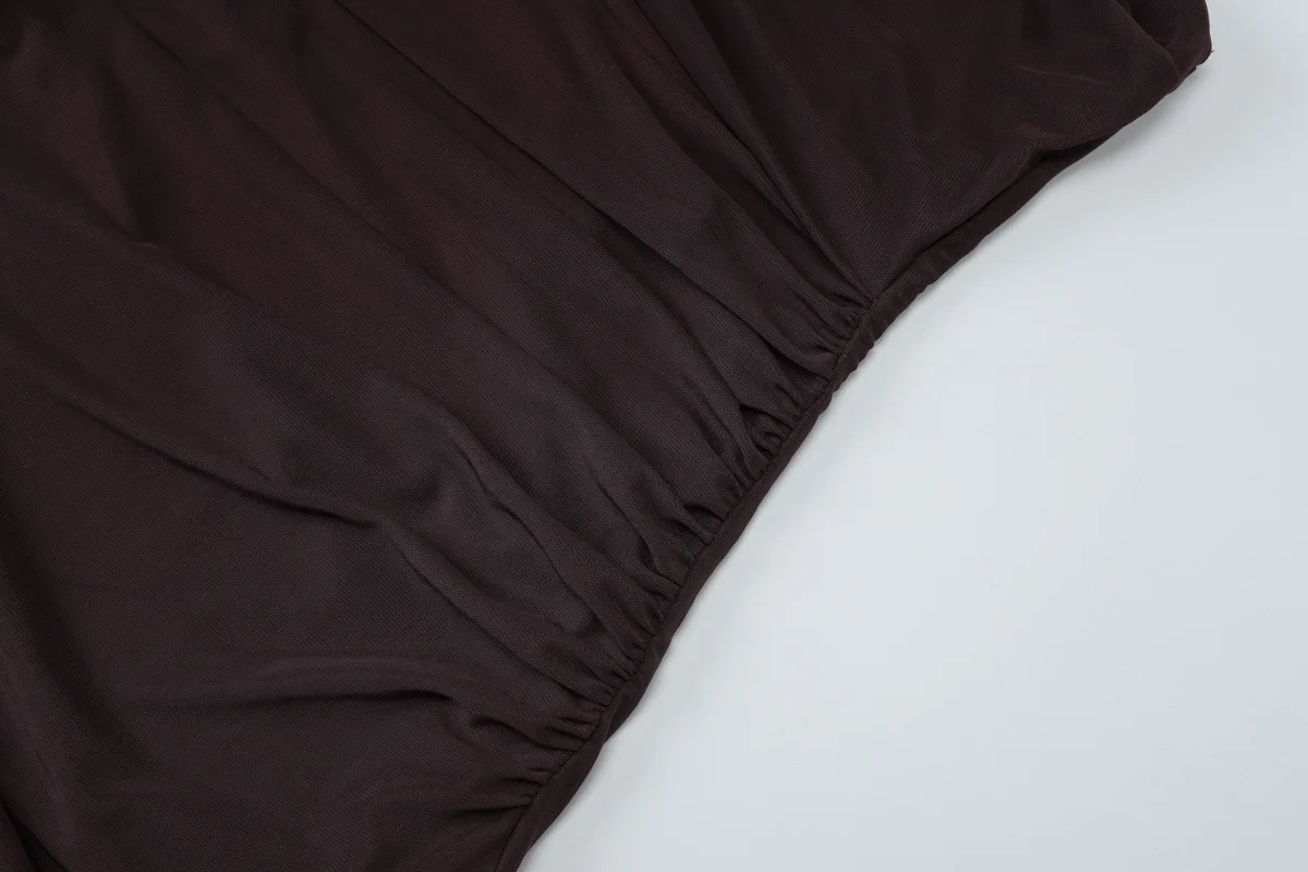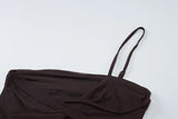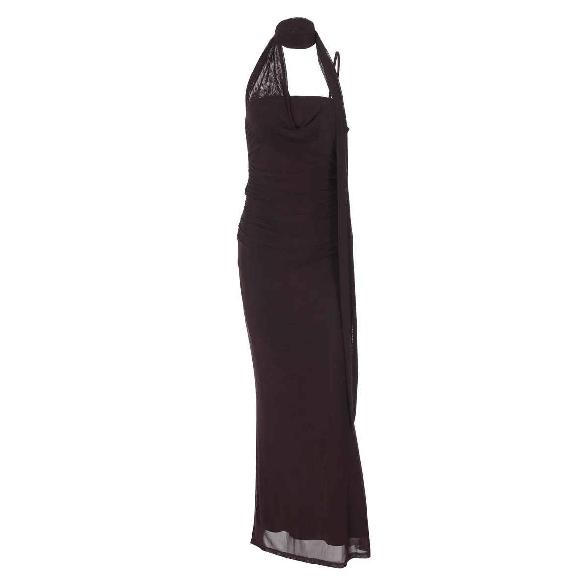 MQTIME - Women Gown Strapless Vestidos Brown Halter Off-shoulder Sexy Maxi Dress Sleeveless Backless Folds Club Party Long Dresses