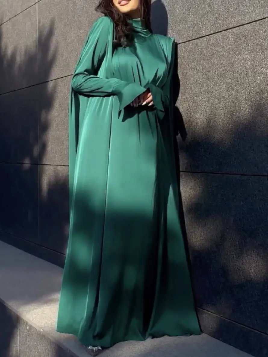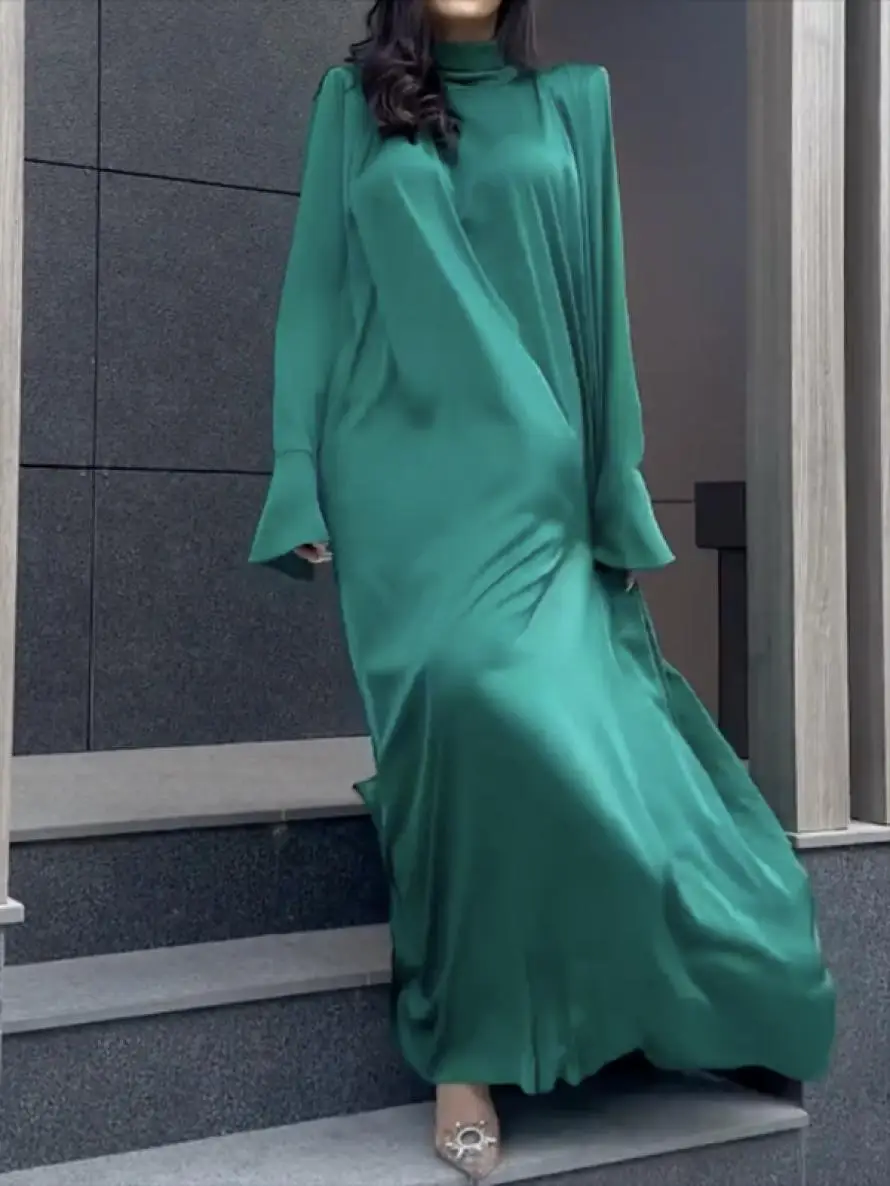 MQTIME - Women Indie Folk Solid Color Evening Maxi Dresses 2024 New Spring Flared Sleeves High-neck Muslim Dress Robe Vestioes