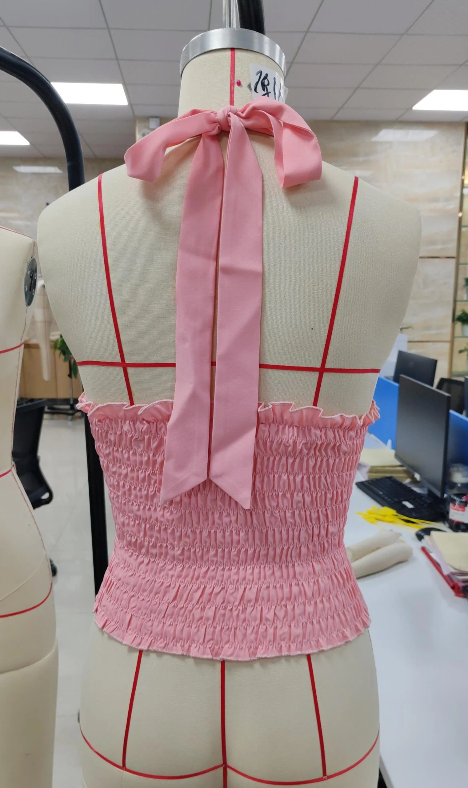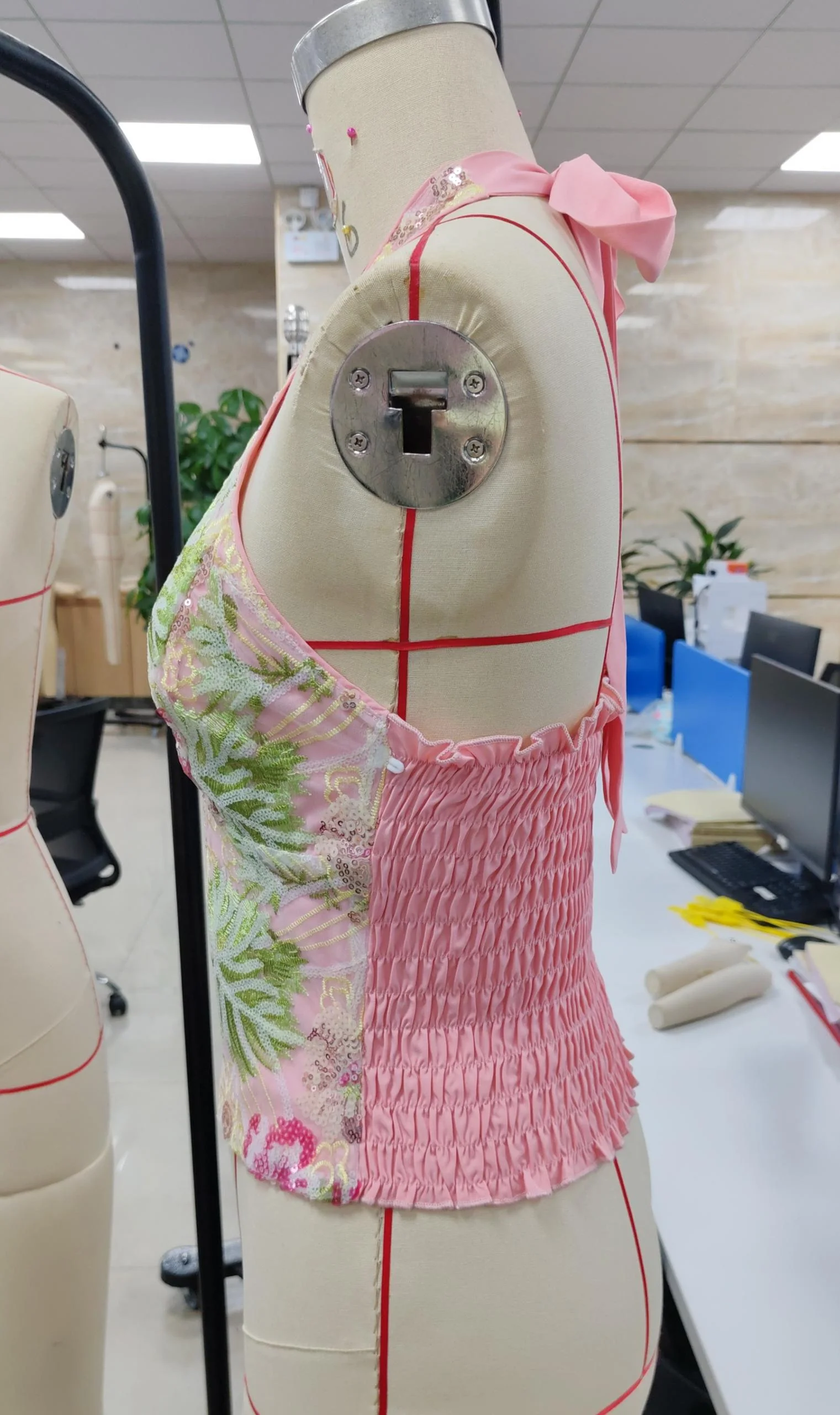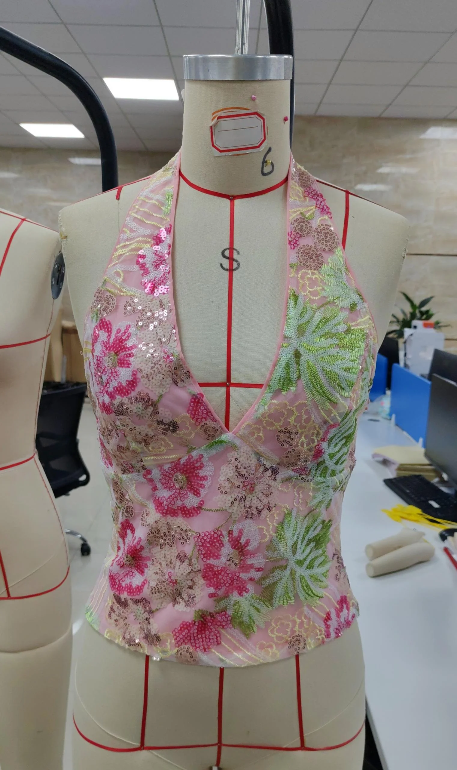 MQTIME - Women Summer Luxury Mesh Glitter Sequins Flower Embroidery Vest Lace-up Halte V-Neck Ruffle Smocked Backless Tank Top