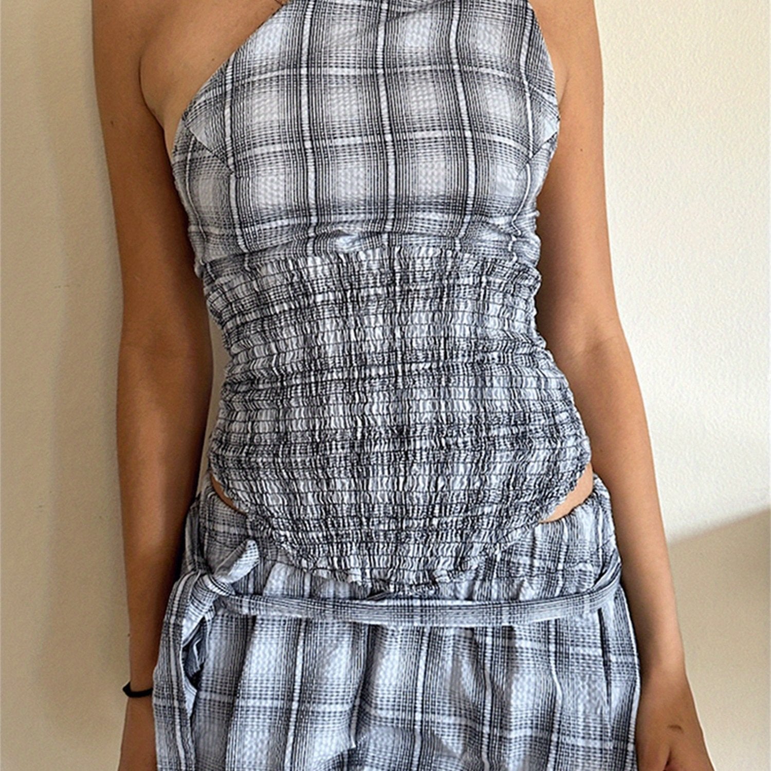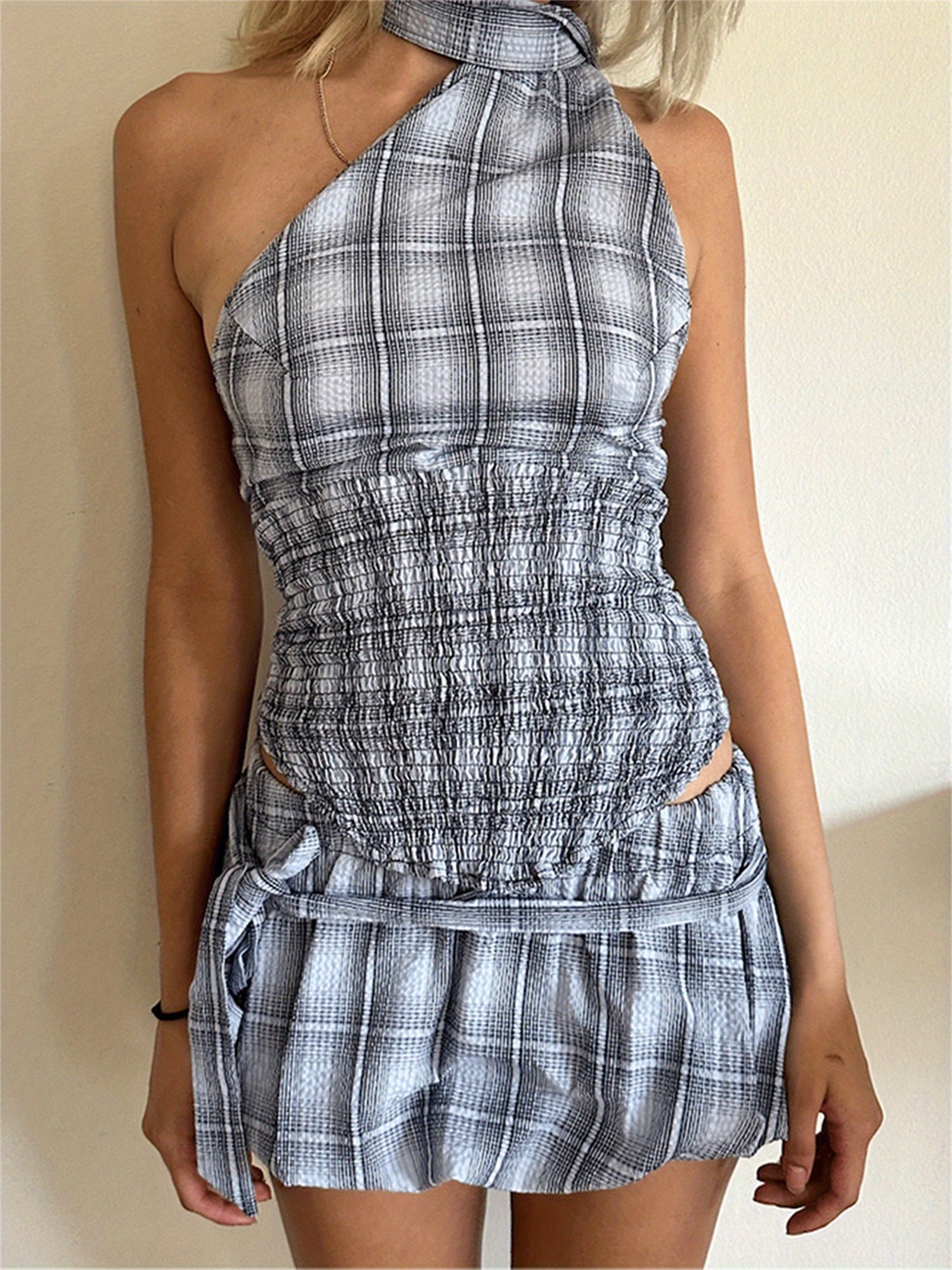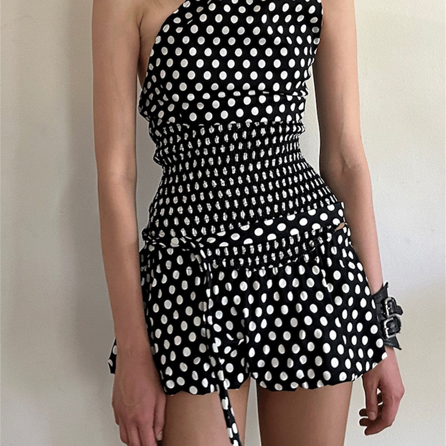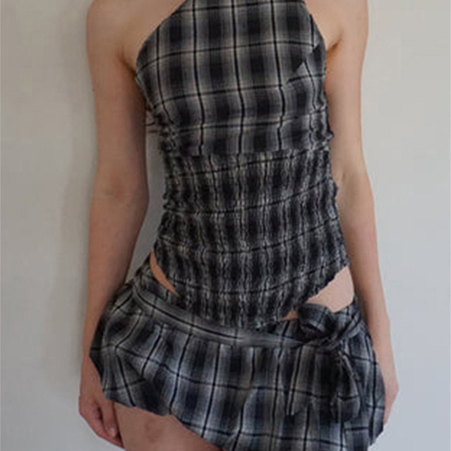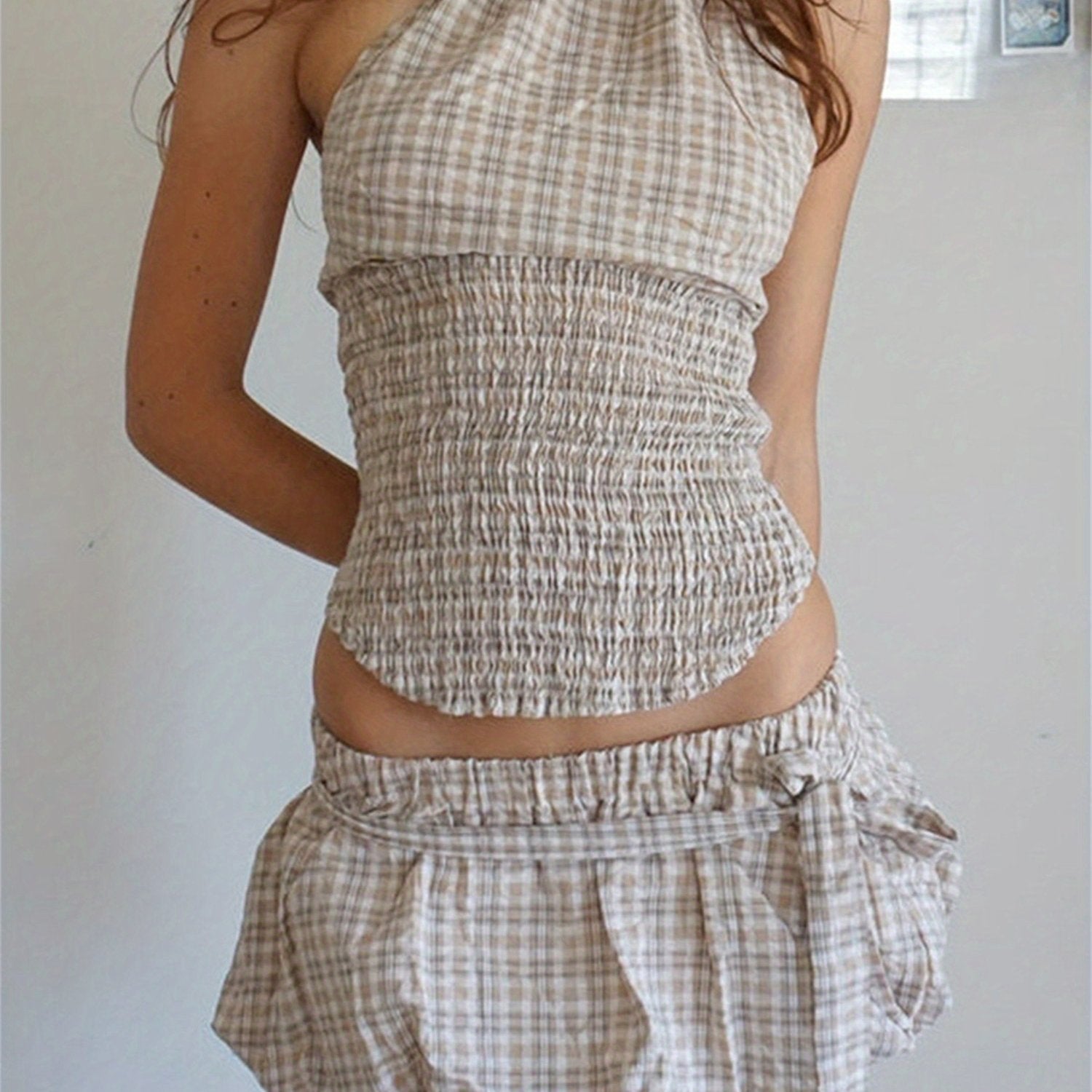 MQTIME - Women Y2K Bubble Skirt Low Waist Plaid/Dots Print Summer Mini Skirt Clubwear with Belt
