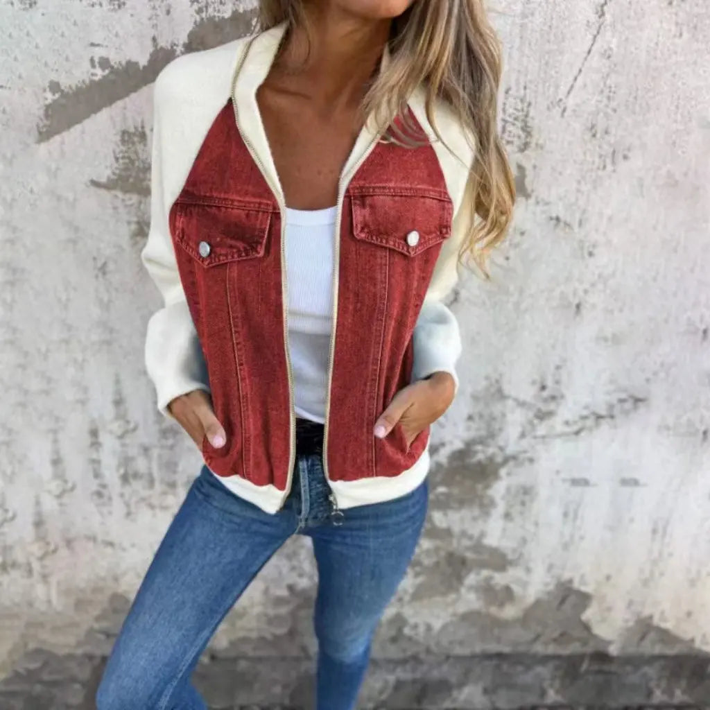 MQTIME - Women's Casual Fashion Denim Jacket Autumn Winter Stitching Shoulder Sleeve Coat European And American Style Clothing