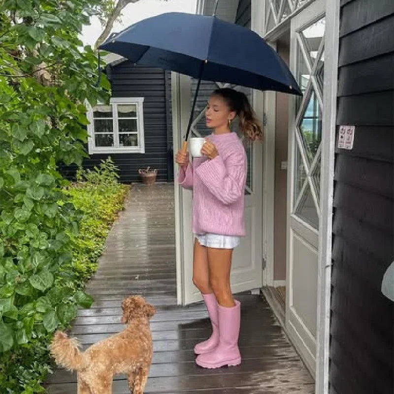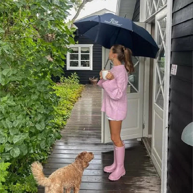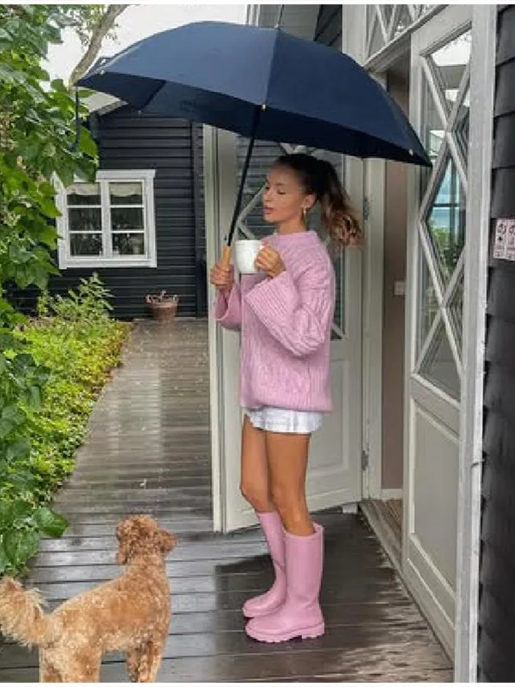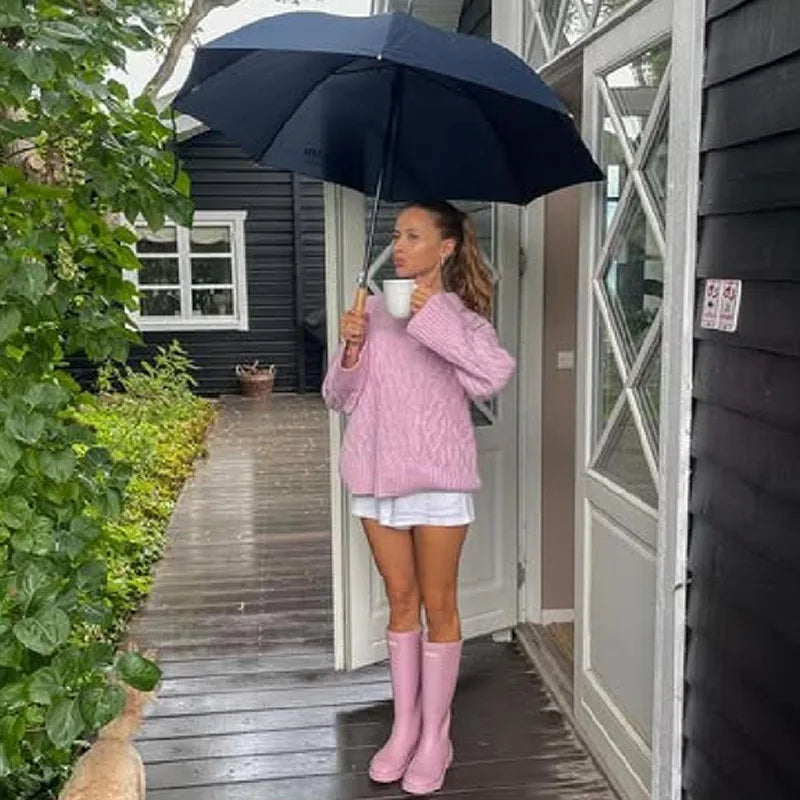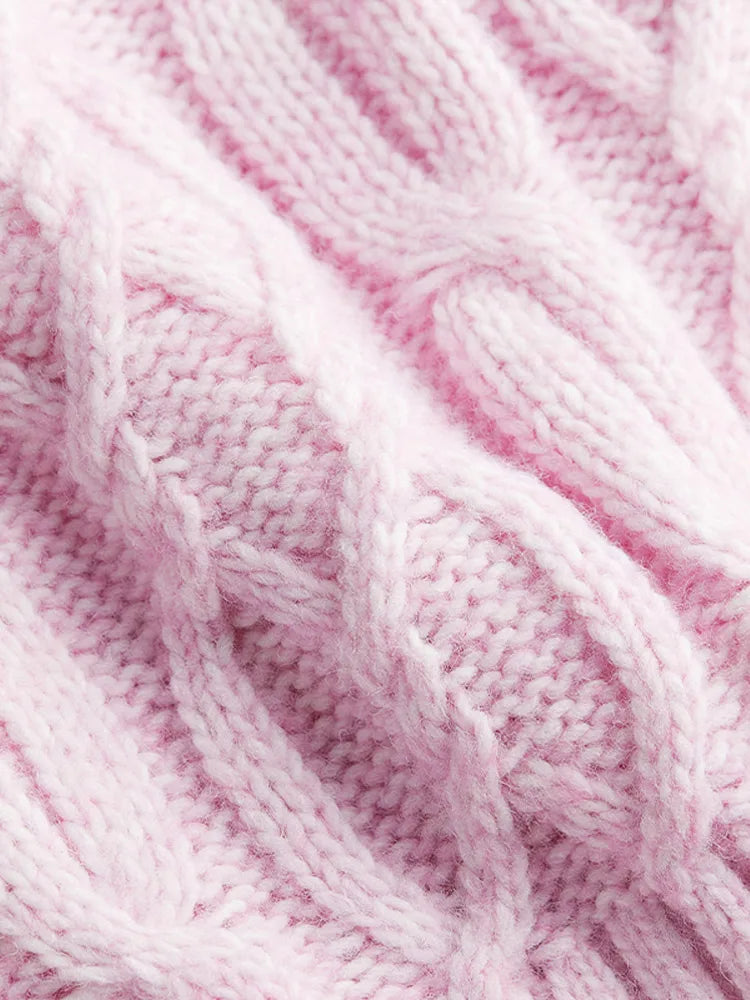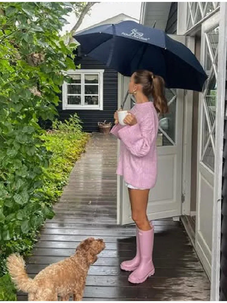 MQTIME - Women's Chic Sweet Pink O Neck Sweater Casual Loose Soft Comfortable Jacquard Long Sleeves 2025 Lady Autumn Winter Y2K Outwears