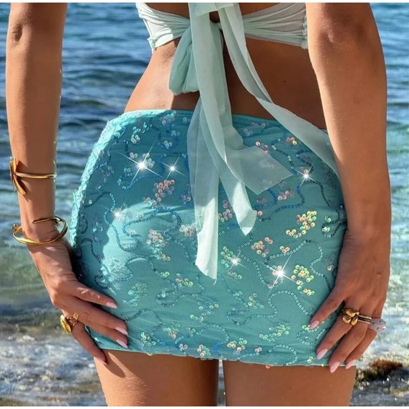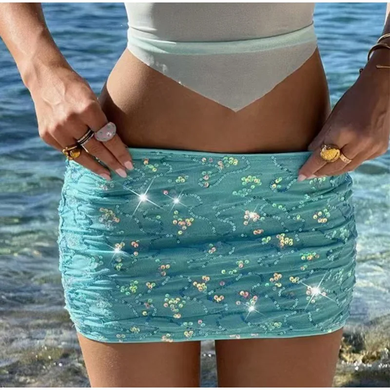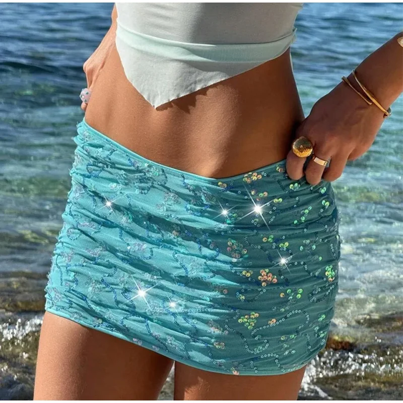 MQTIME - Y2K Sequins Glitter Mini Skirt Women Sexy Low Rise Bodycon Skirts Coquette Sparkle Short Skirt 2025 Summer Lady Fashion Clubwear