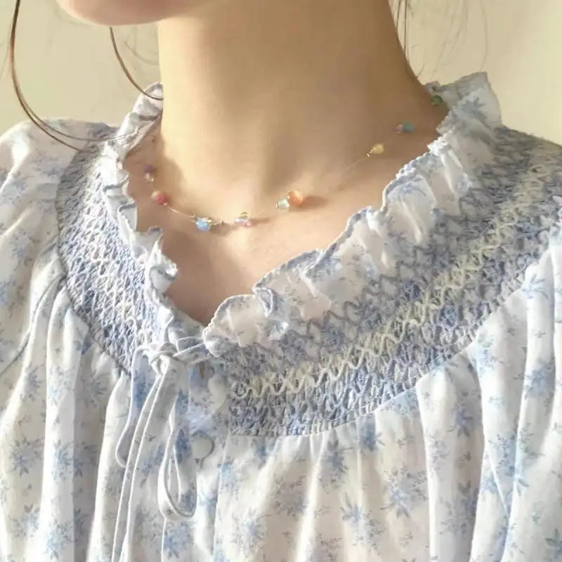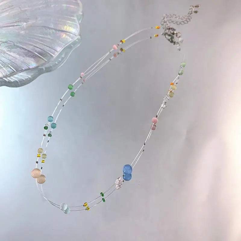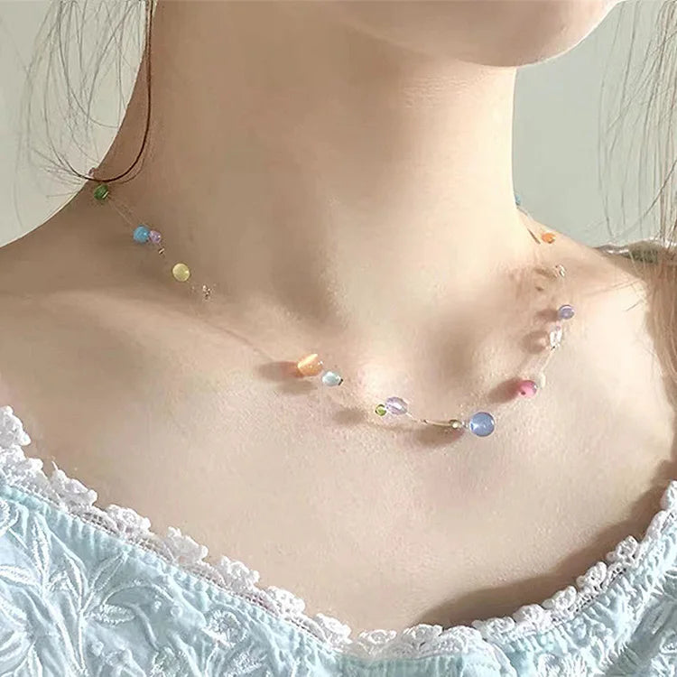 Women's Bohemian Necklace Colorful Beads Korean Fashion Fresh Summer Simple Pendant Necklace Fashion Jewelry