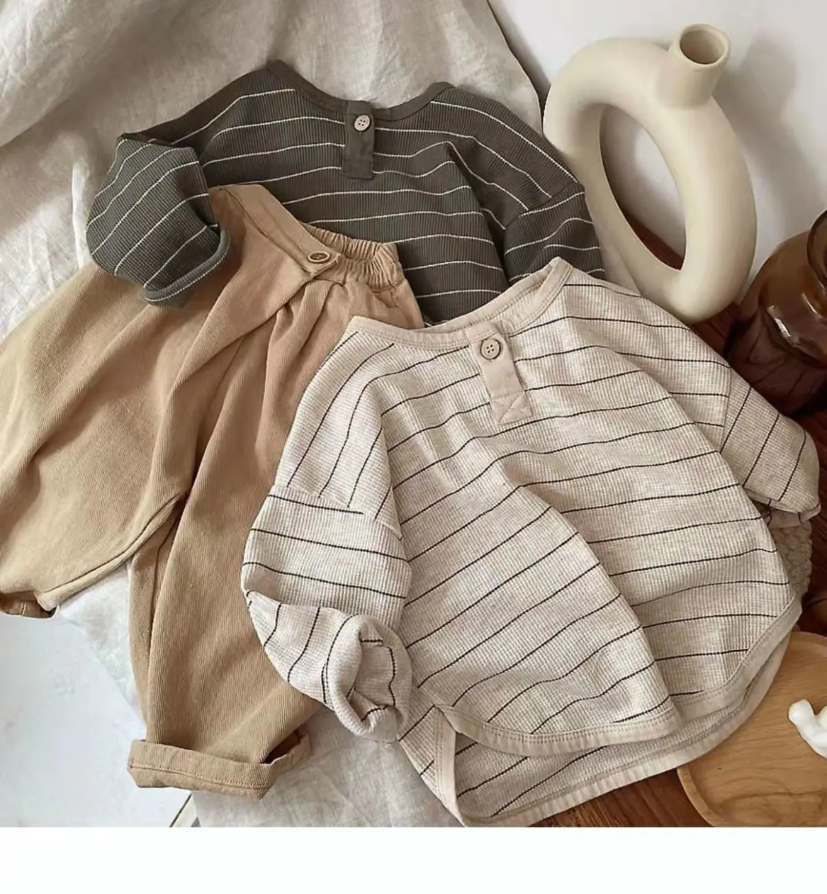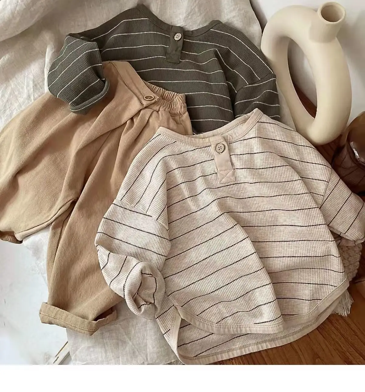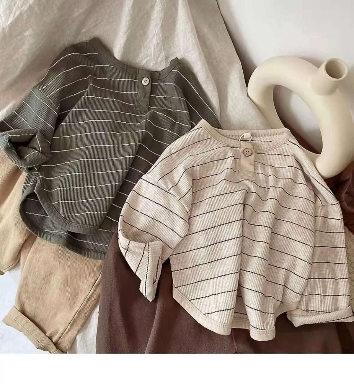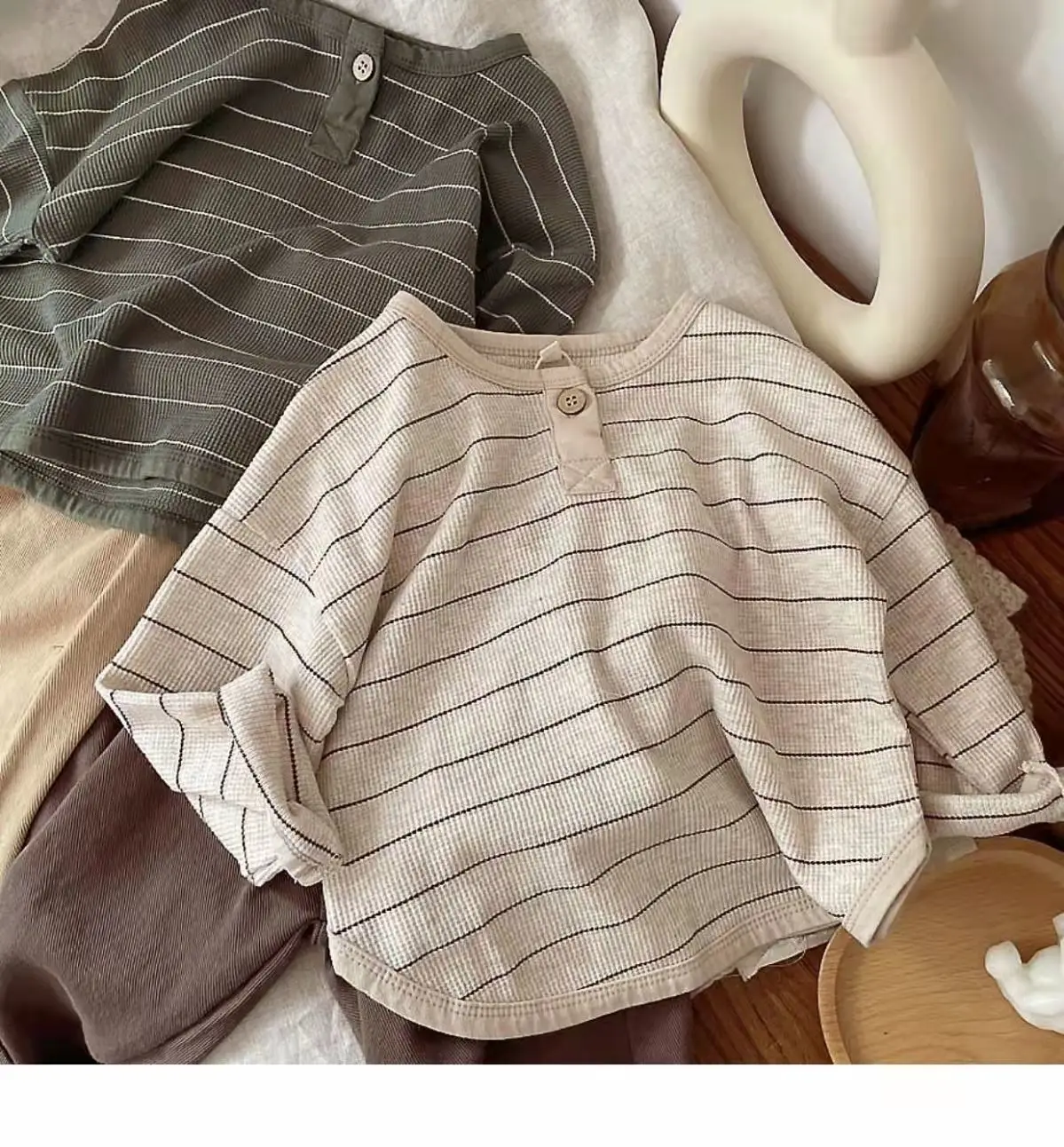 Tavimart Kids Clothes Unisex Korean Children's Striped Long-sleeved T-shirt Unisex Boys and Girls Loose Top Spring and Autumn