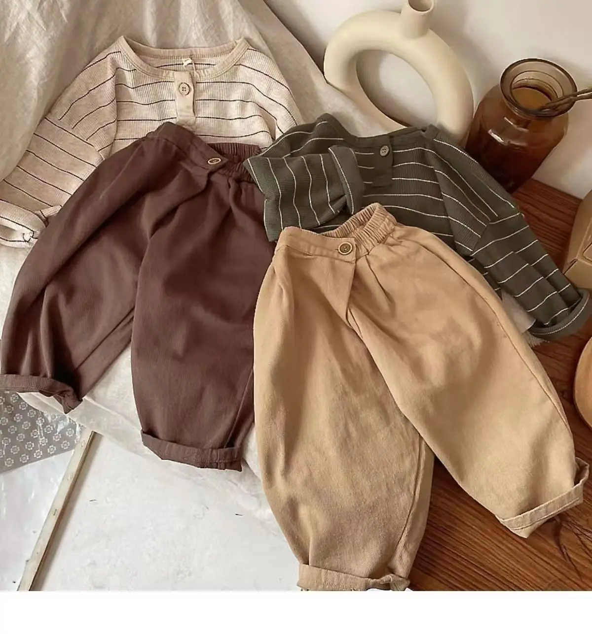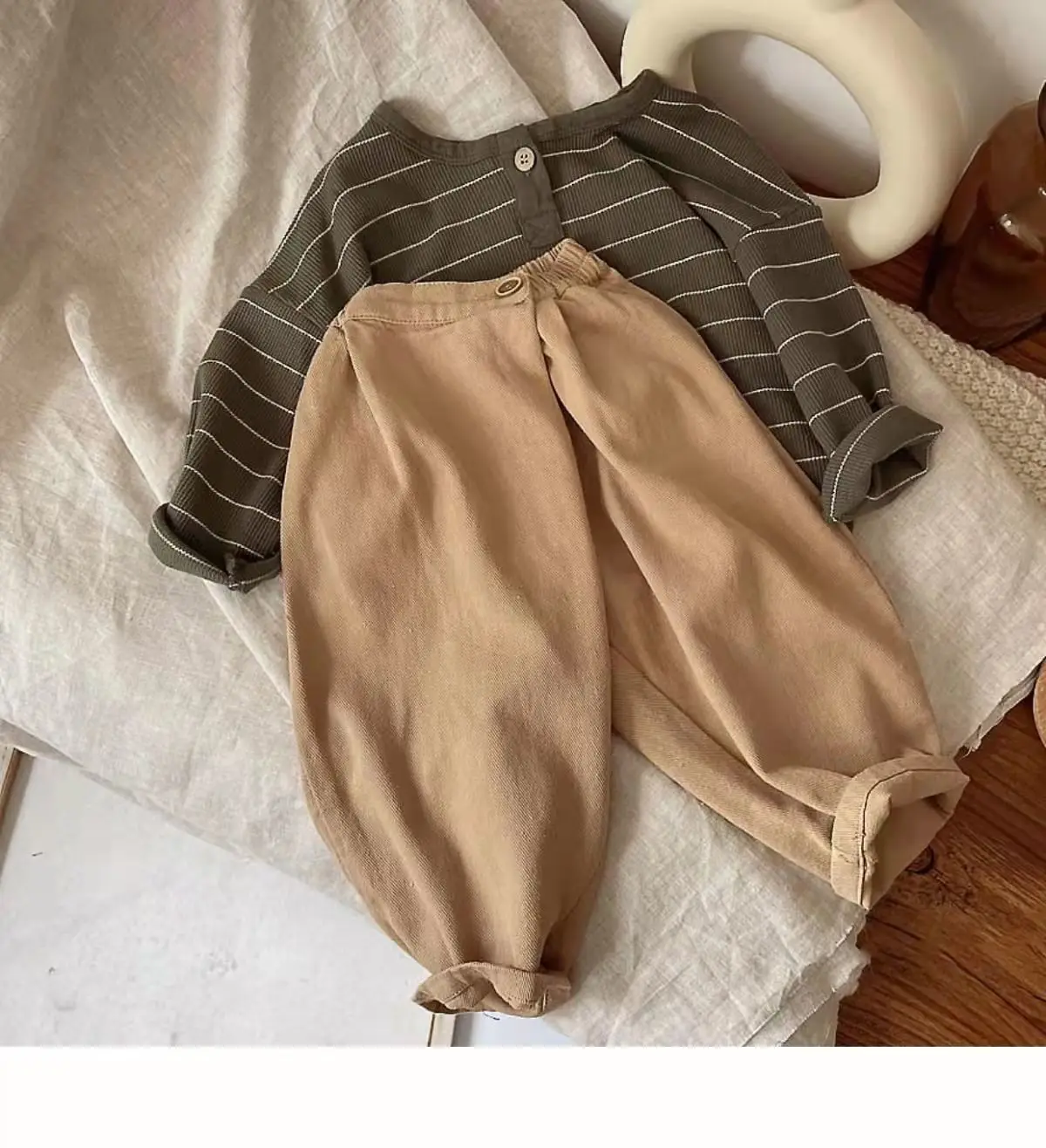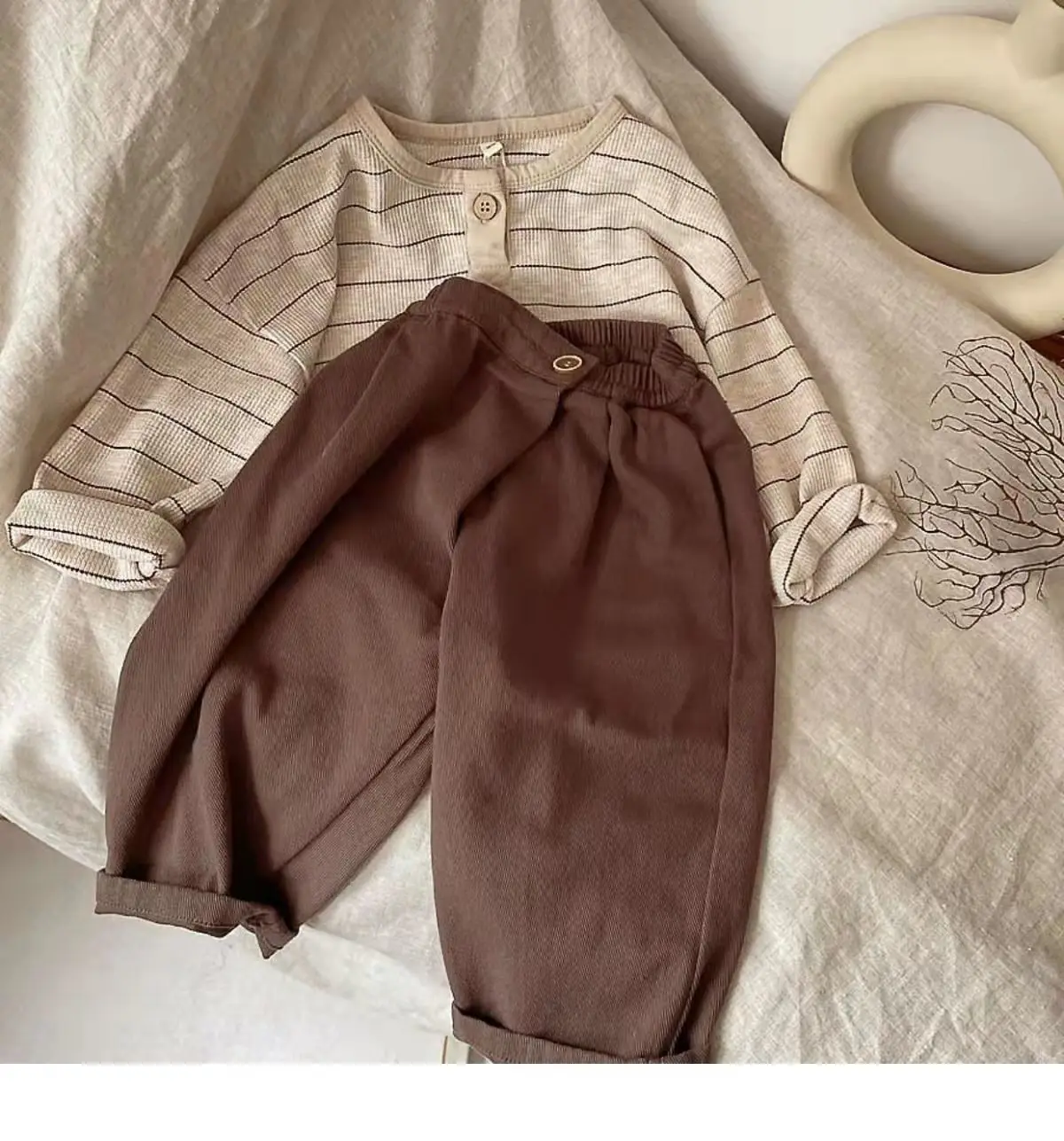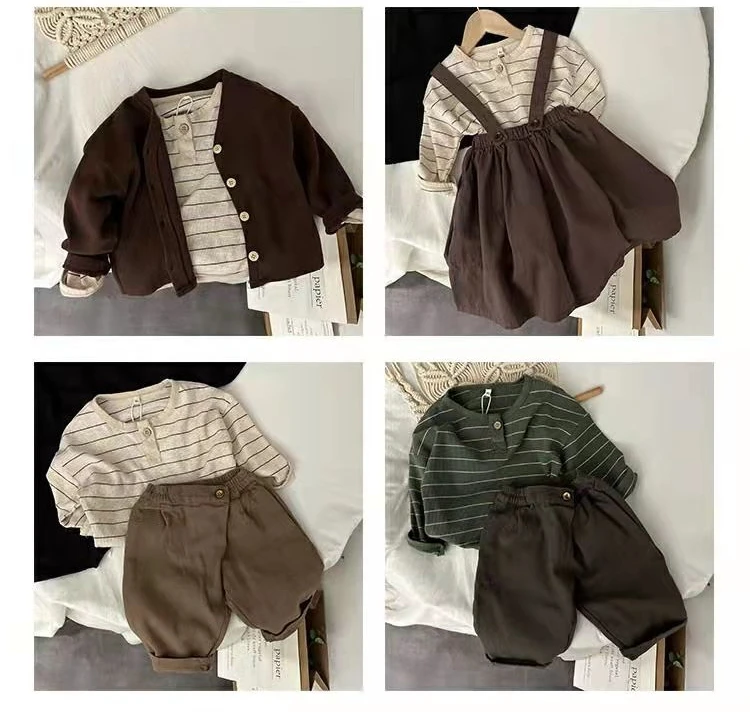 Tavimart Kids Clothes Unisex Korean Children's Striped Long-sleeved T-shirt Unisex Boys and Girls Loose Top Spring and Autumn