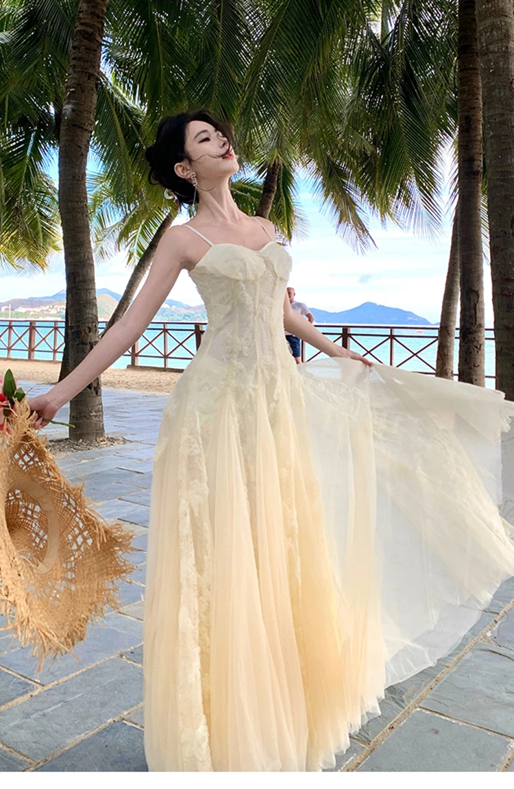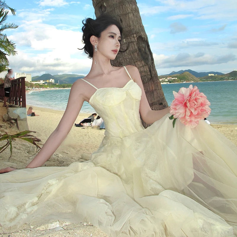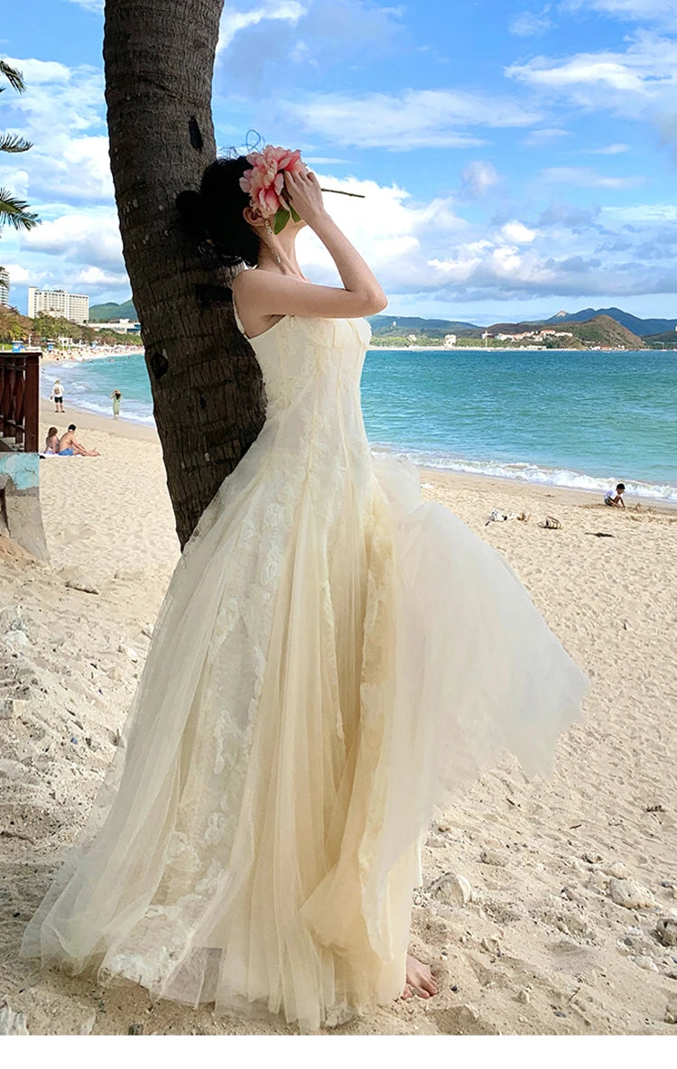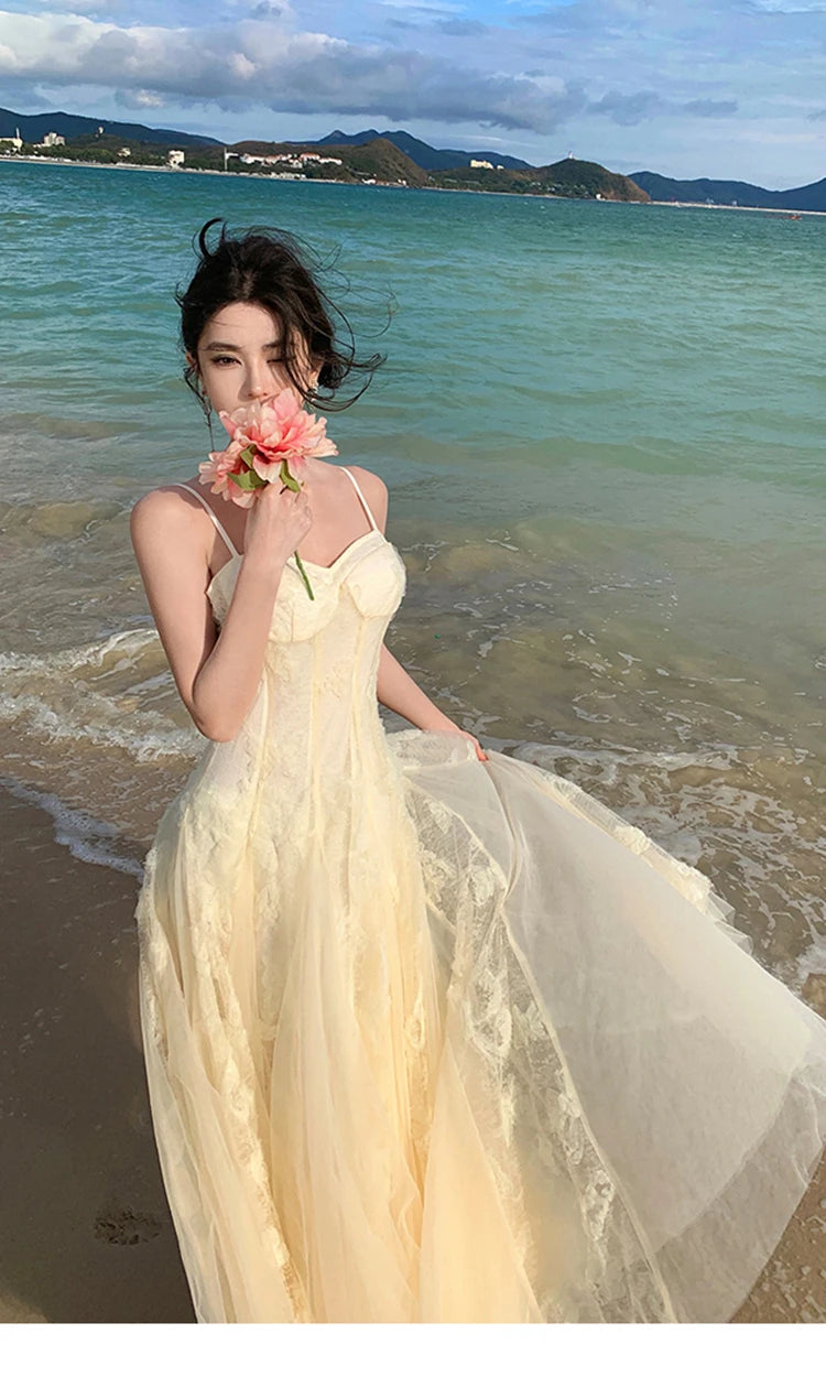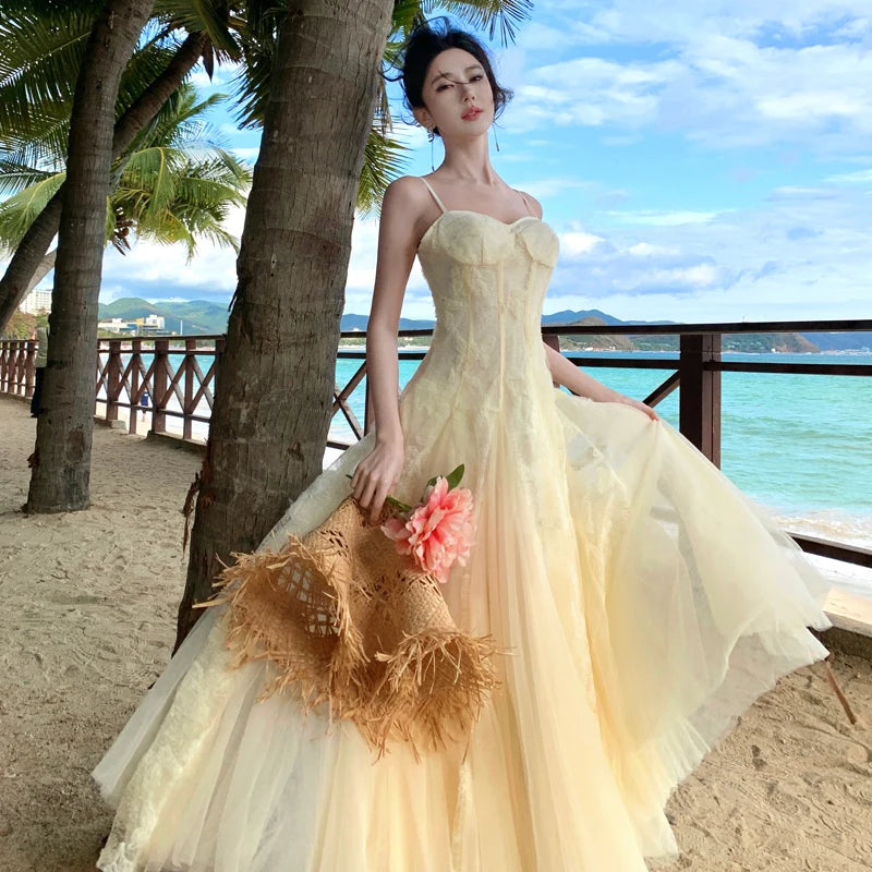 MQTIME - 3D Butterfly Lace Skirt Heavy Industry High Grade Mesh Style Design Dress Vacation Beach Elegance Temperament Long Dress