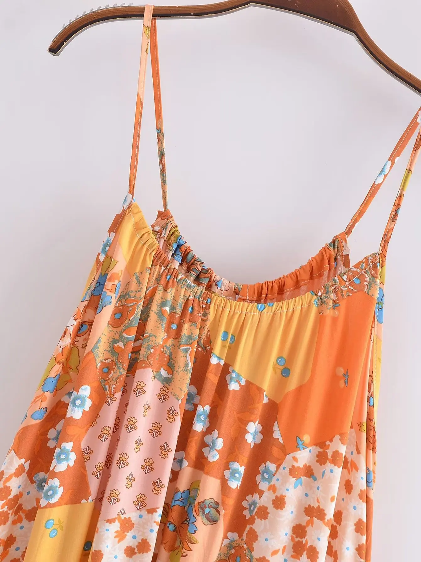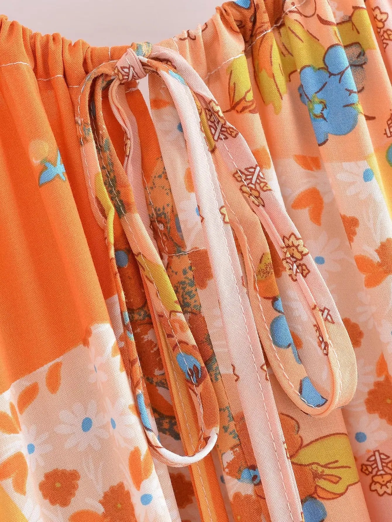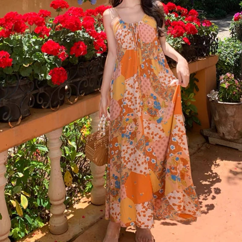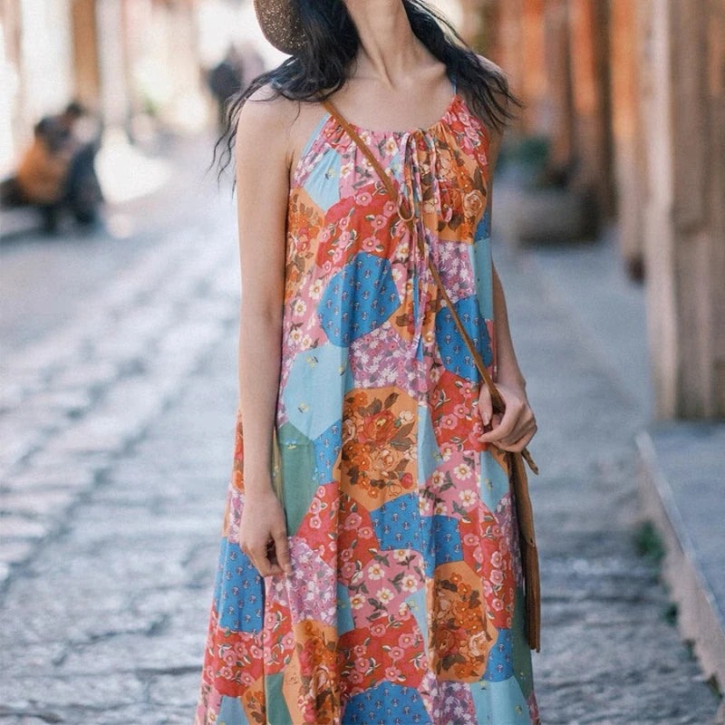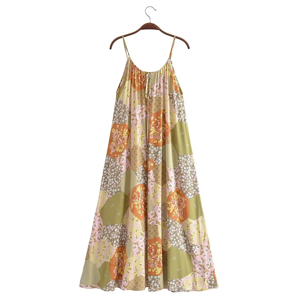 MQTIME - A-line Boho Dress Strapless Printed Summer Dress Femme Rayon Floral Straight Chic Maxi Dress Straps Holiday Vestidos