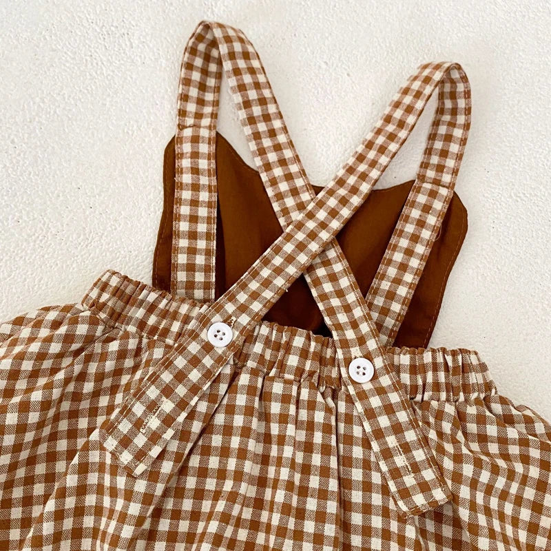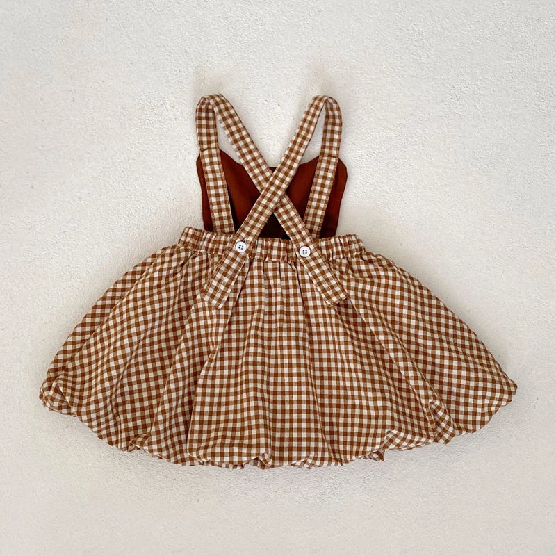 MQTIME - Autumn New Baby Clothing, 0-5 Year Old Female Baby, fashionable and versatile embroidered checkered suspender dress