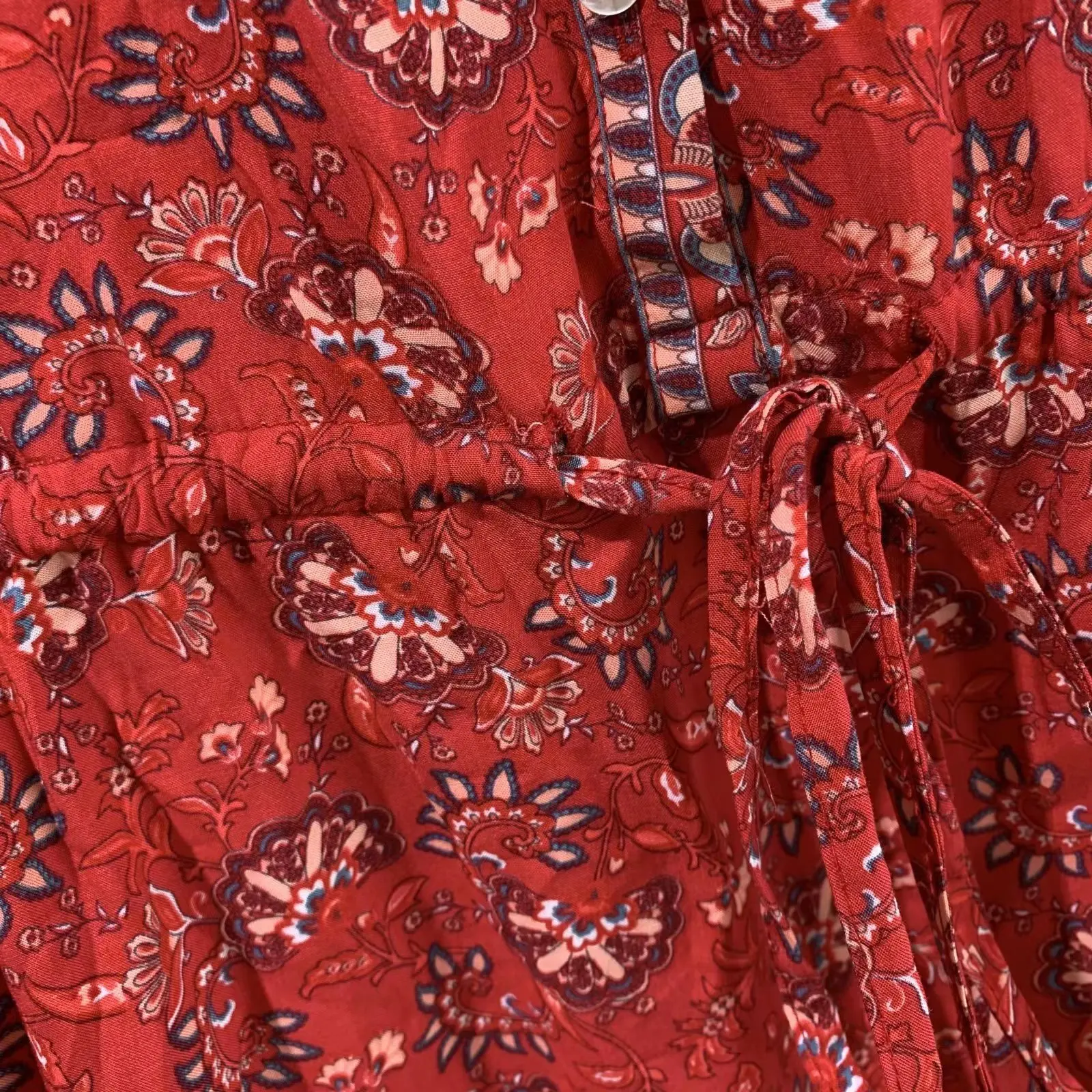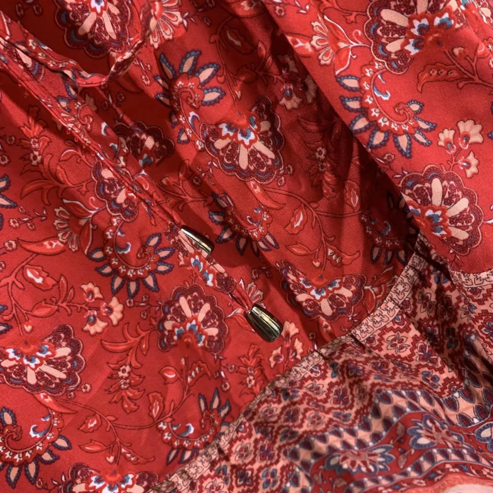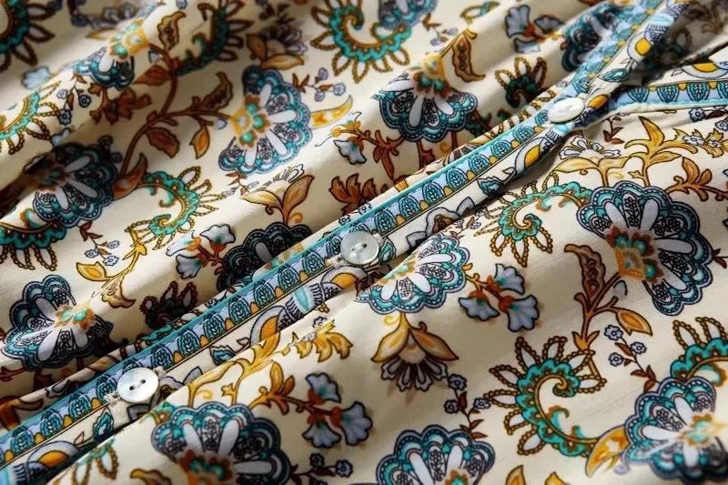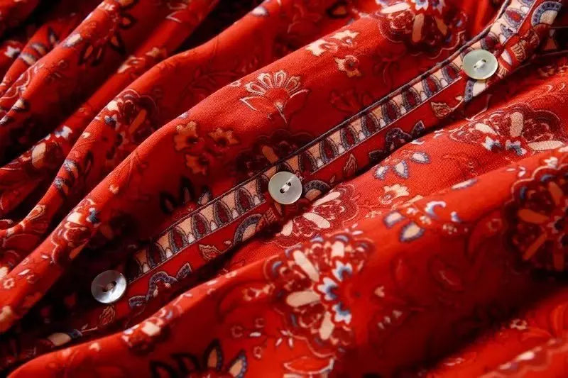 MQTIME - Boho Long-sleeved Dress V Neck Rayon Summer Short Dress Femme Hippie Printing Mini Dress Flare Sleeve Chic Vestidos