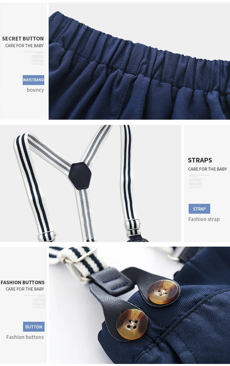 MQTIME - Boy Formal Dress Cotton Striped Romper + Bow + Navy Shorts + Suspenders Sets Boy Dress Clothes for Wedding Clothes 0 3 Months