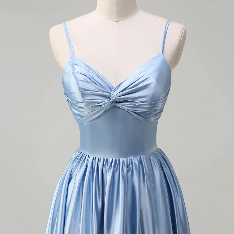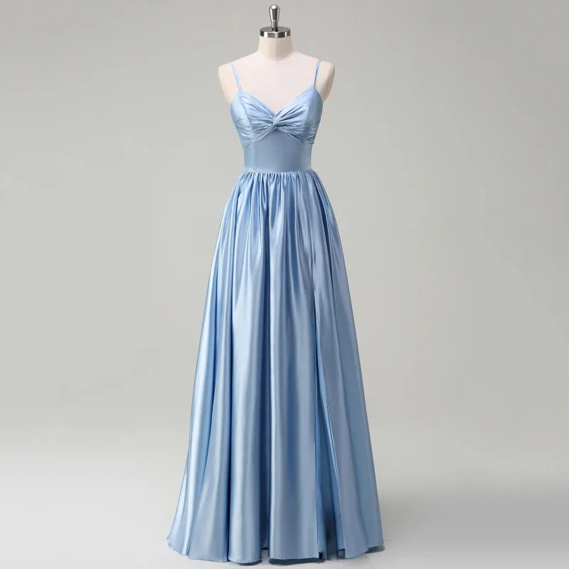 MQTIME Customized Sky Blue Women Ceremonial Dress Satin Solid With Sleeveless For Wedding Evening Banquet Prom Birthday Bridesmaid Gown
