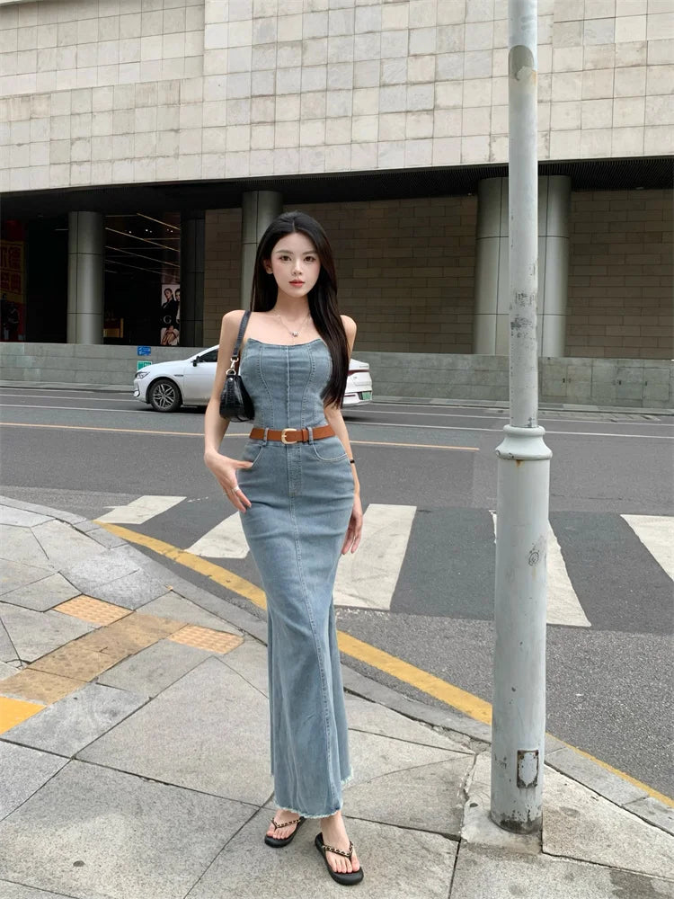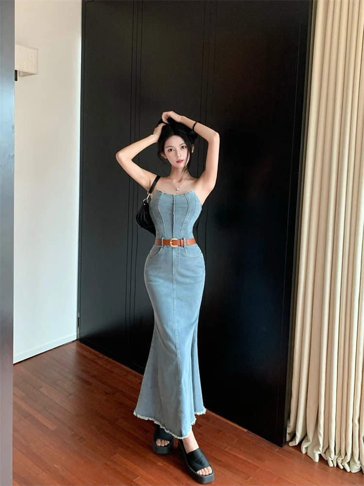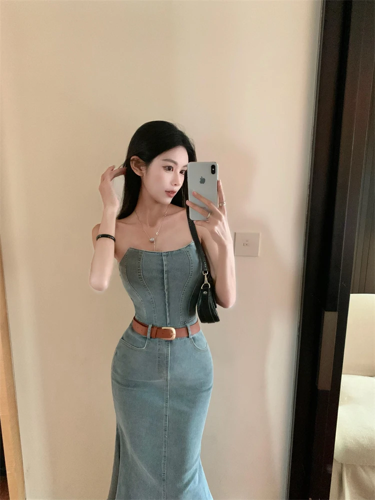 MQTIME  -  Denim Suspender Dress For Women'S Summer New French Retro Design With Personalized