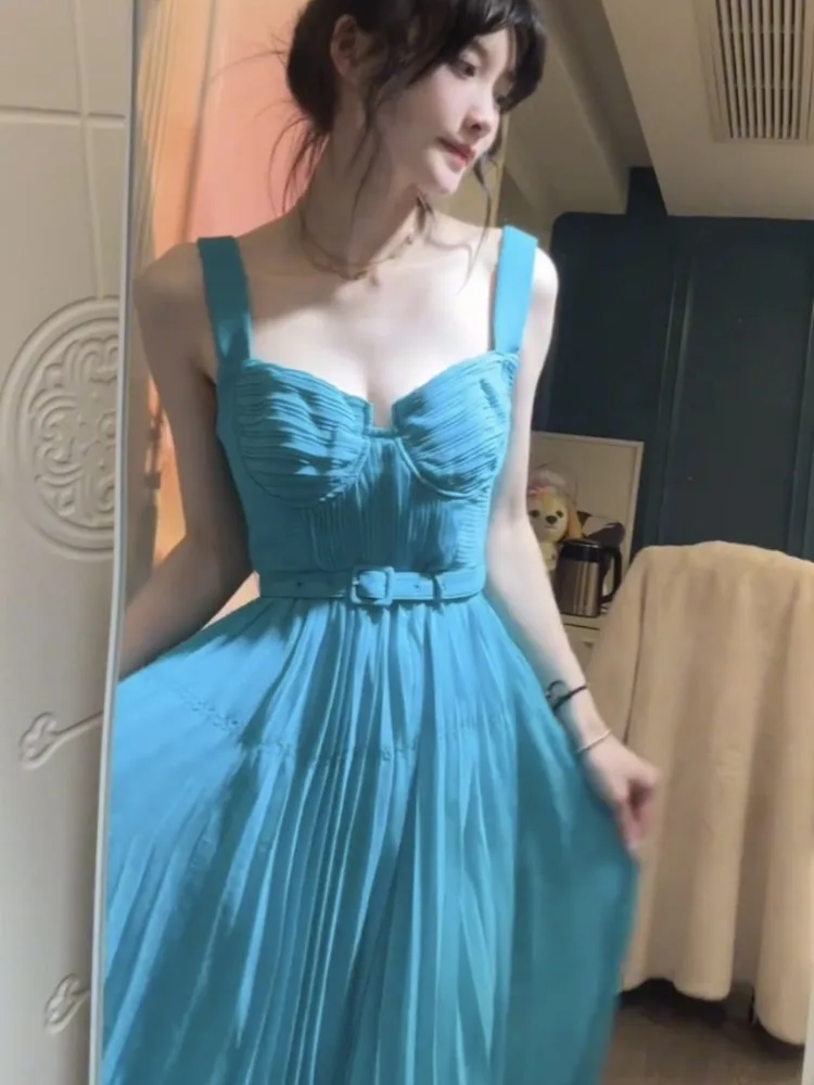 MQTIME - Design Sense French Dresses Elegance Waist Dating Suspender Dress Spring Summer New Beautiful Romantic Vestido