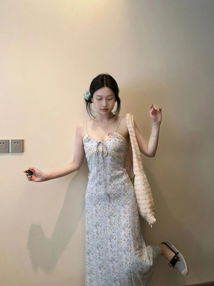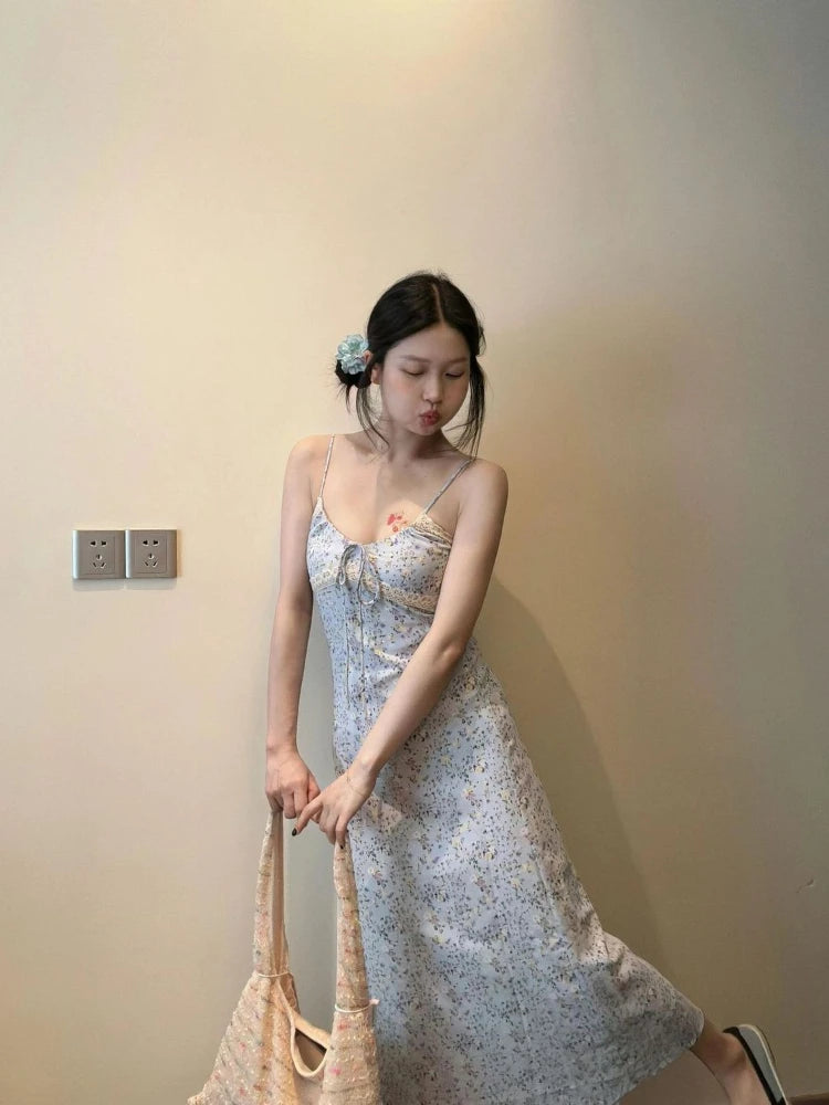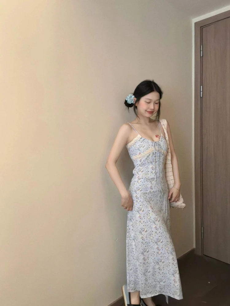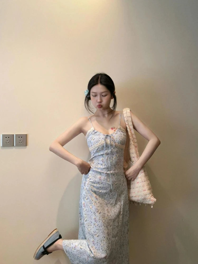 MQTIME - Dresses Women Sleeveless Floral Printed Bandage V Neck Backless Lace Patchwork Sweet Elegant Party Dress Female Casual