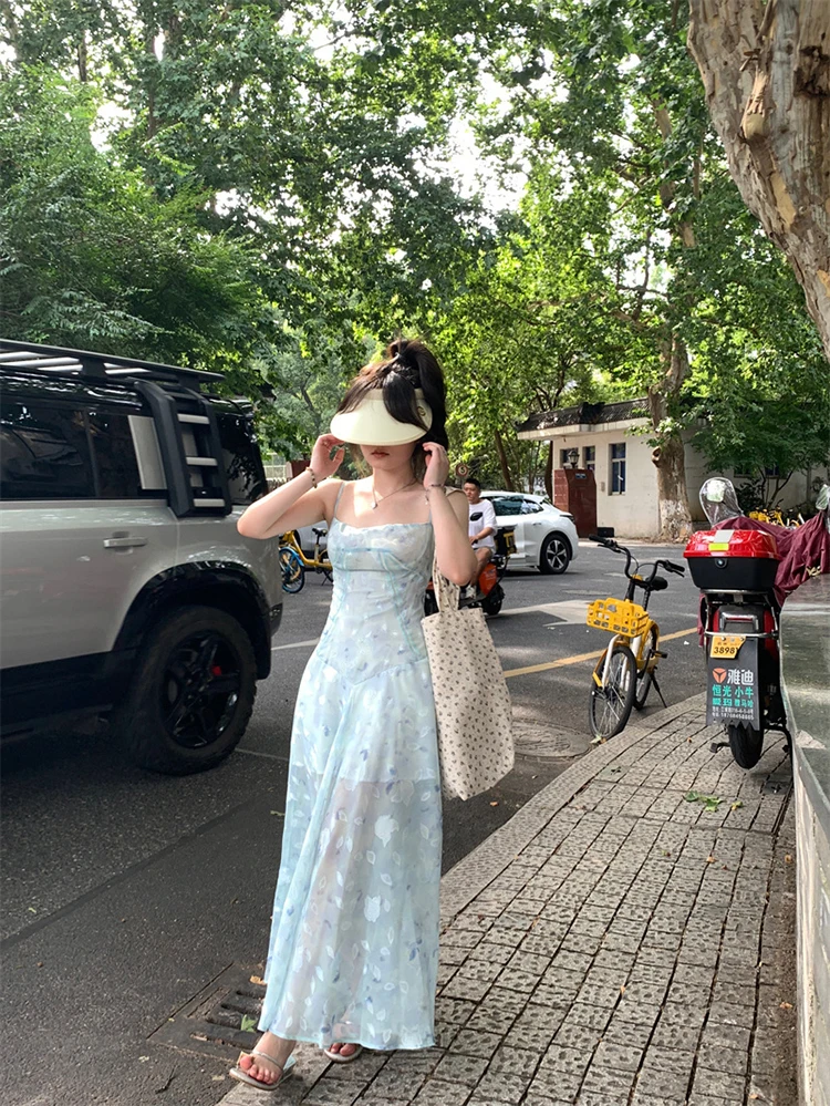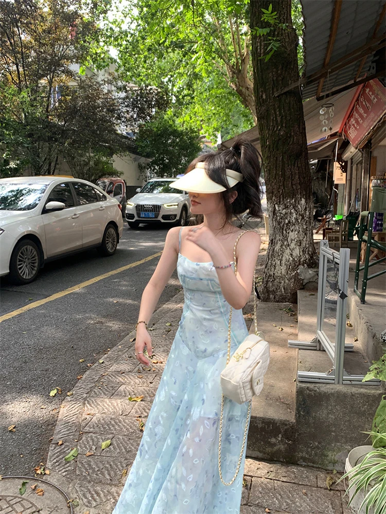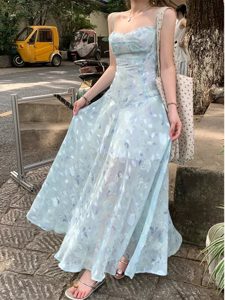 MQTIME - Elegant Floral Fairy Dress Women Casual Sweet Y2k Clothing Sexy Strap Dress Even Party One Piece Dress Korean Chic Sleeveless