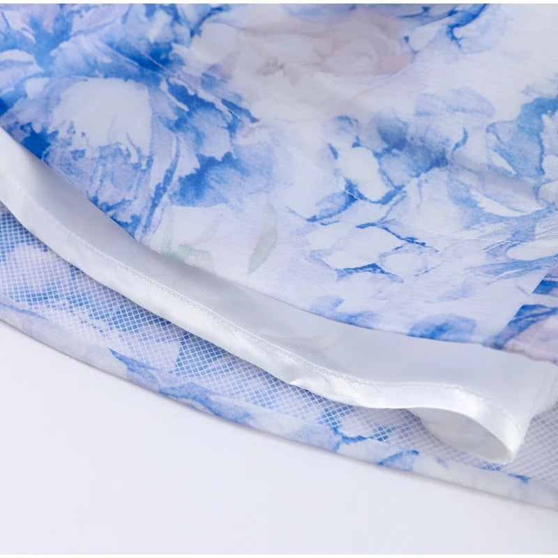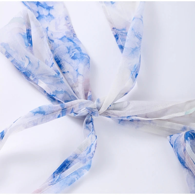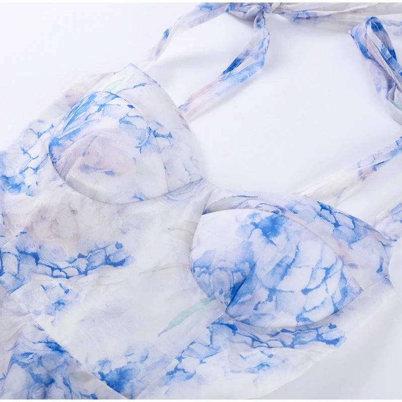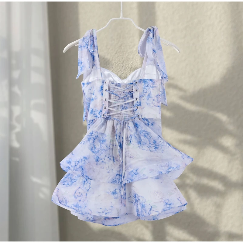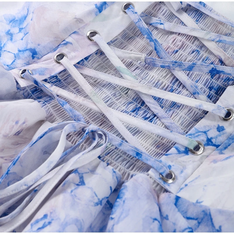 MQTIME  -  Elegant Printed Short Dresses Women Chic Lace Up Sleeveless Puff Dress Female Summer Holiday High Waist Lady Vestidos Beachwear