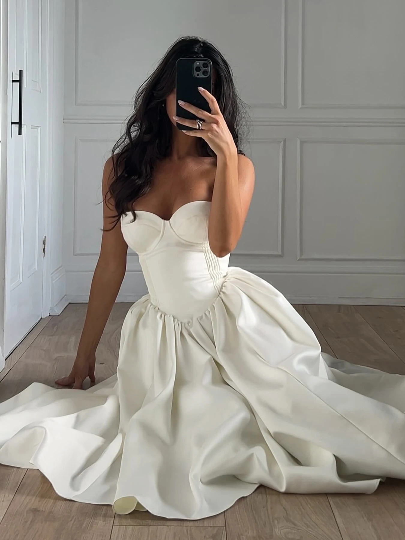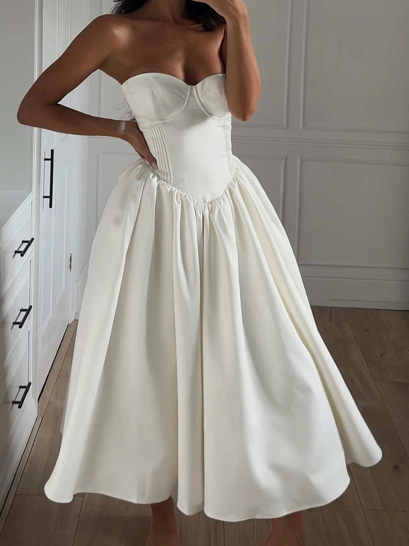 MQTIME  -  Elegant Strapless Maxi Dress Women's Prom Gown A-Line Robe Sexy Cleavage Chest Wrap Backless Party Long Dress Y2K Style
