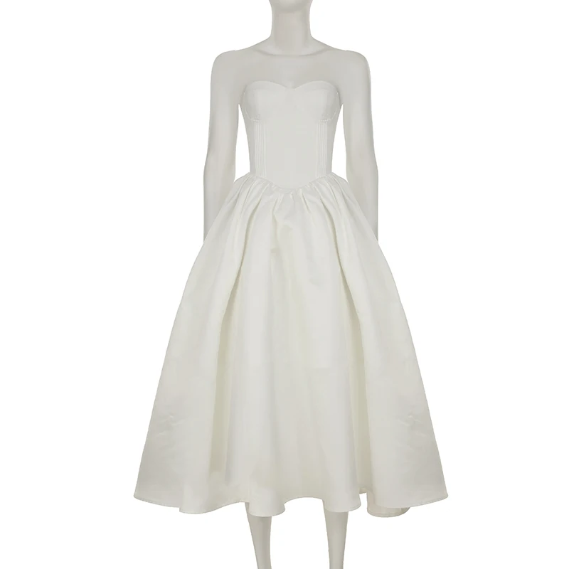 MQTIME - Elegant Strapless Maxi Dress Women's Prom Gown A-Line Robe Sexy Cleavage Chest Wrap Backless Party Long Dress Y2K Style