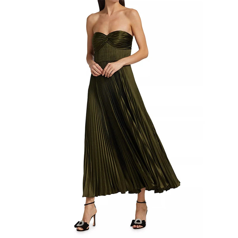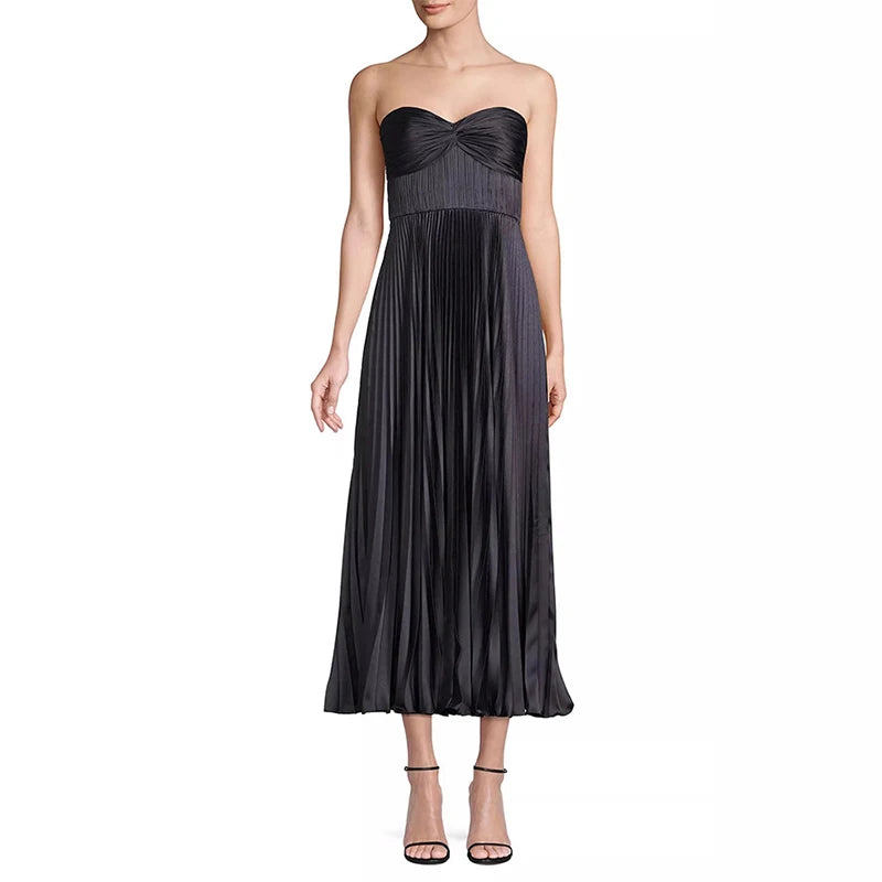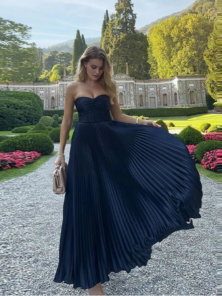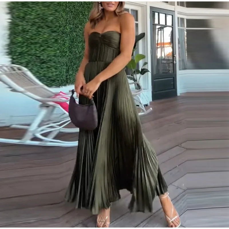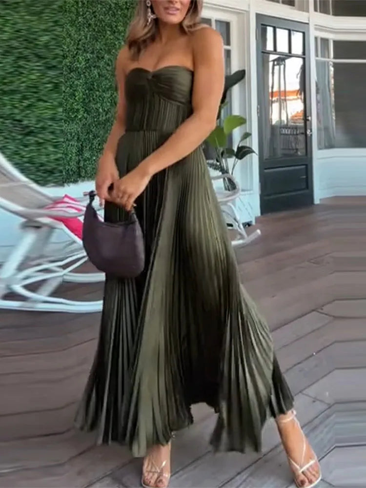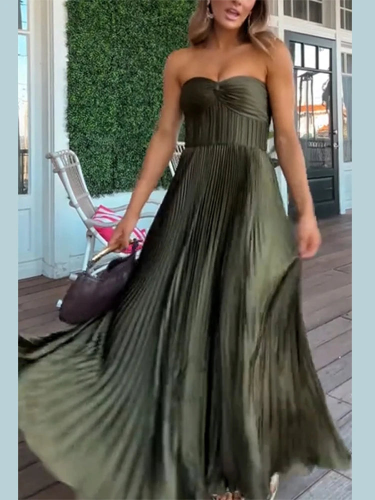 MQTIME - Elegant Summer Pleated Long Dress Women Backless Sleeveless Beach Vacation Dresses Female 2025 Fashion Lady A-line Robes