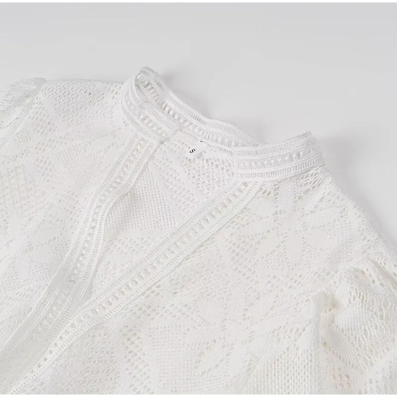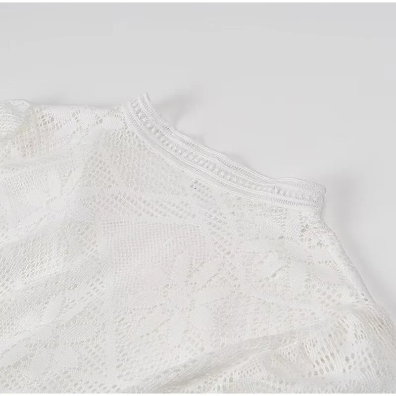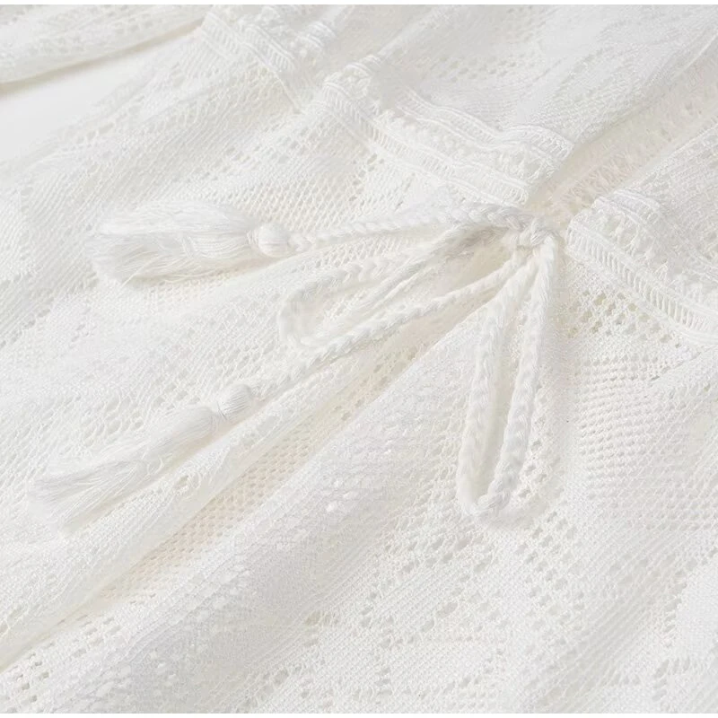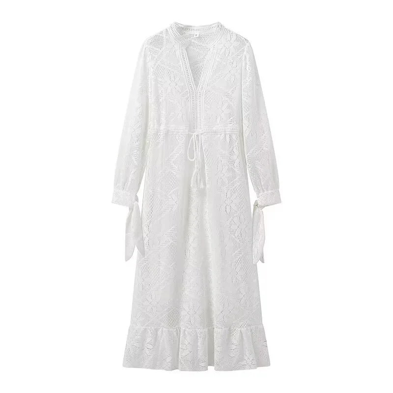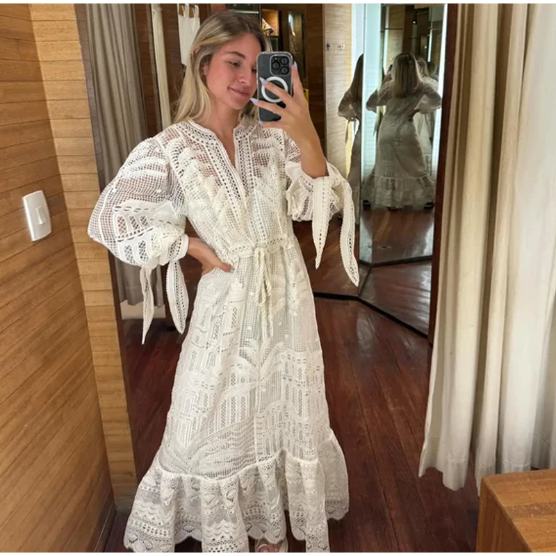MQTIME  -  Embroidered White Lace Midi Dress Women 2 Pieces Suits Fashion Elegant Spring Summer Lady Dresses Boho Beach Style New Elegant