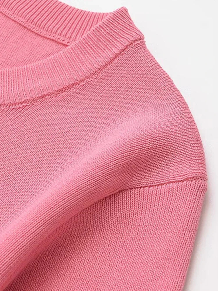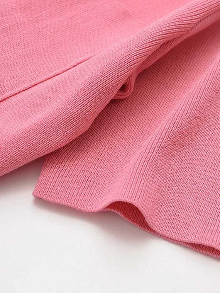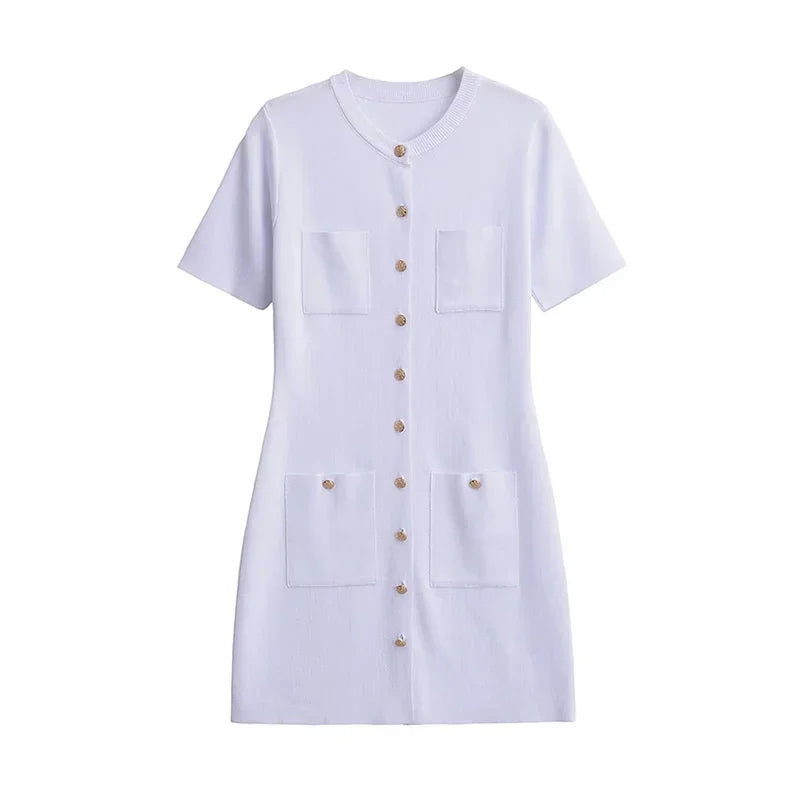 MQTIME  -  Gold Button Pocket Knitted Short Dresses Solid Color Round Neck French Simple Slimming Fashion Single Breasted Straight Dress