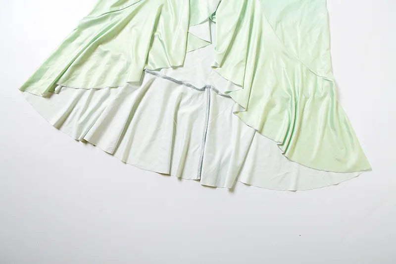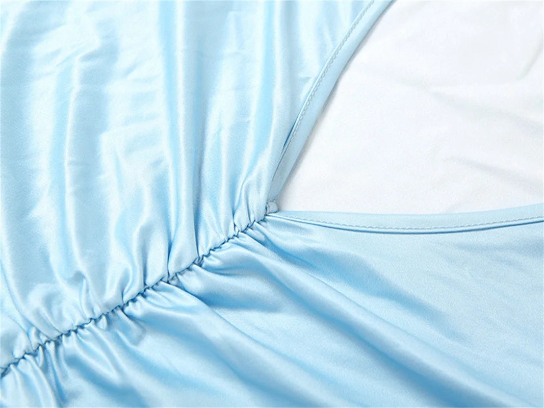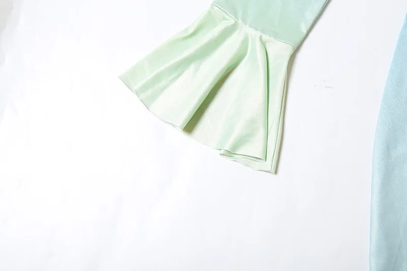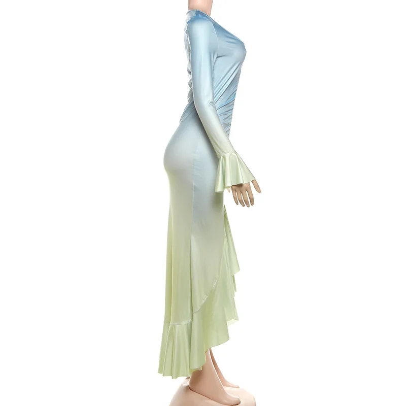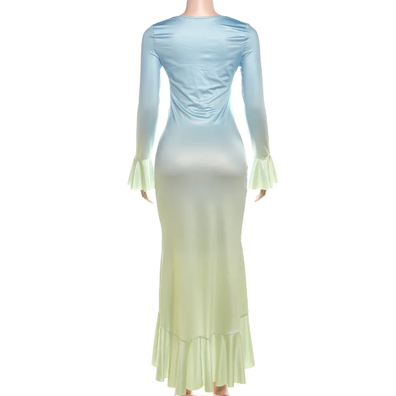 MQTIME - Gradient Color Flared Sleeve Women's Evening Dress Deep-V Neck Pleated Bandage Gown Blue Slim Party Skirt New Arrival In Stock