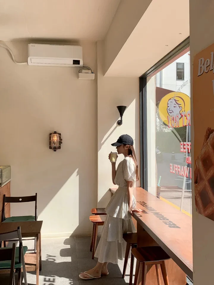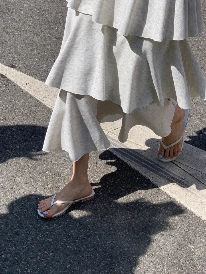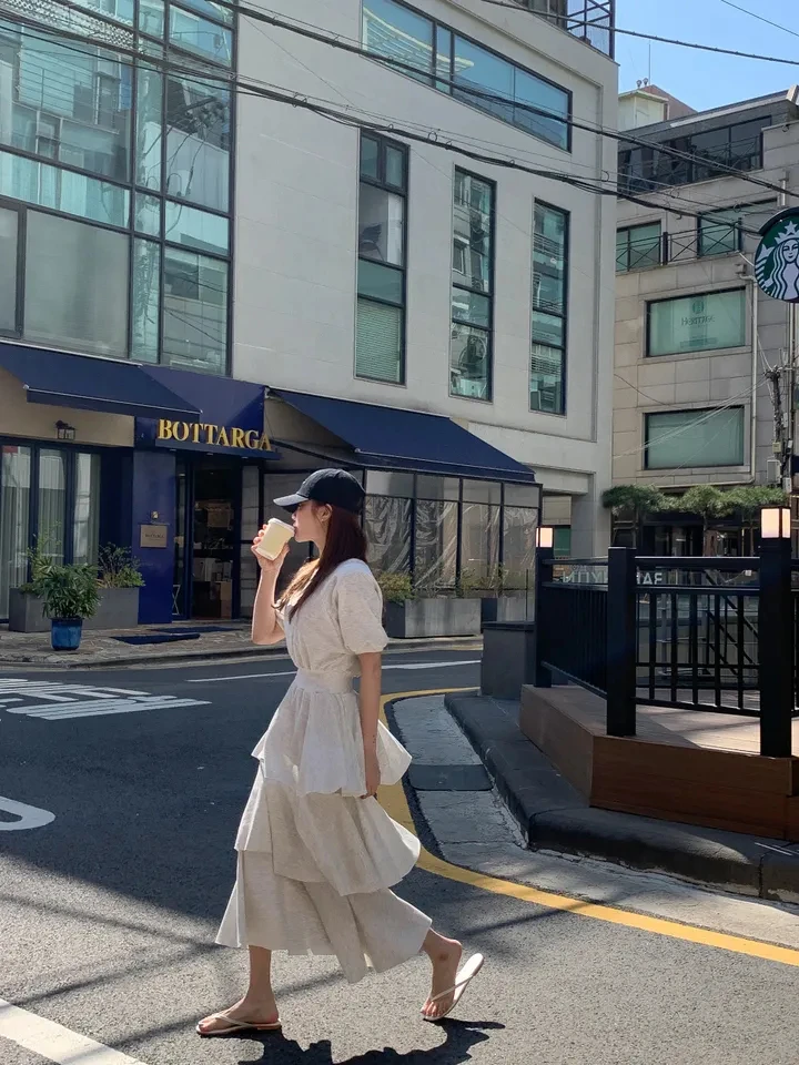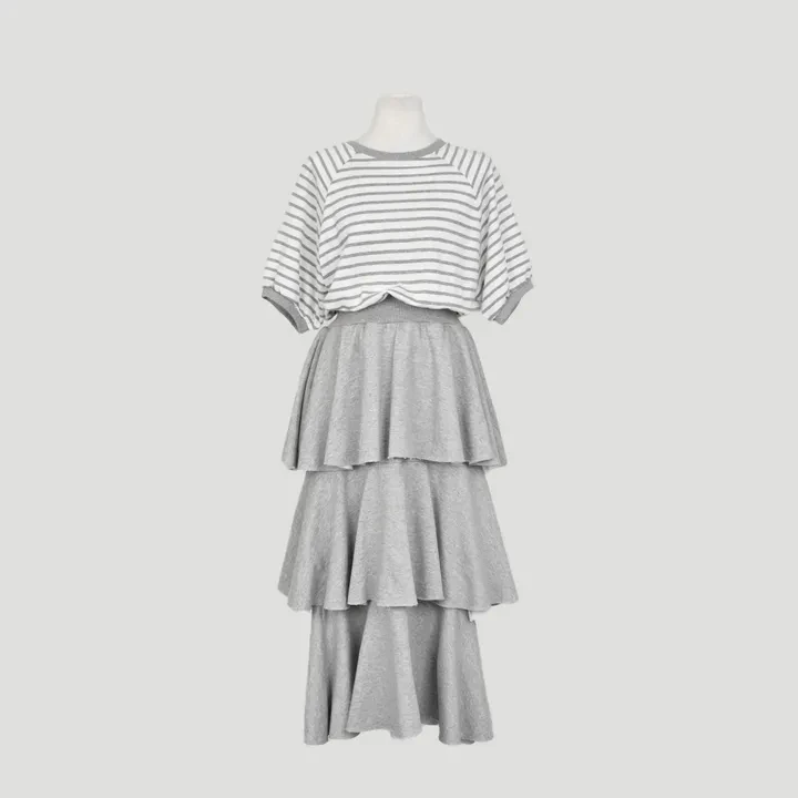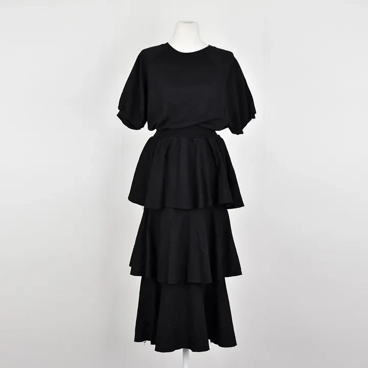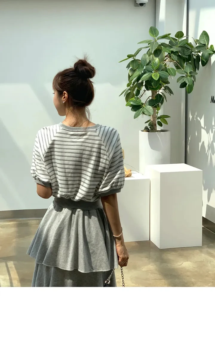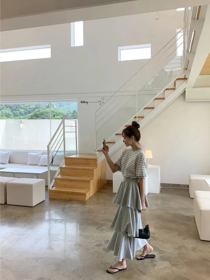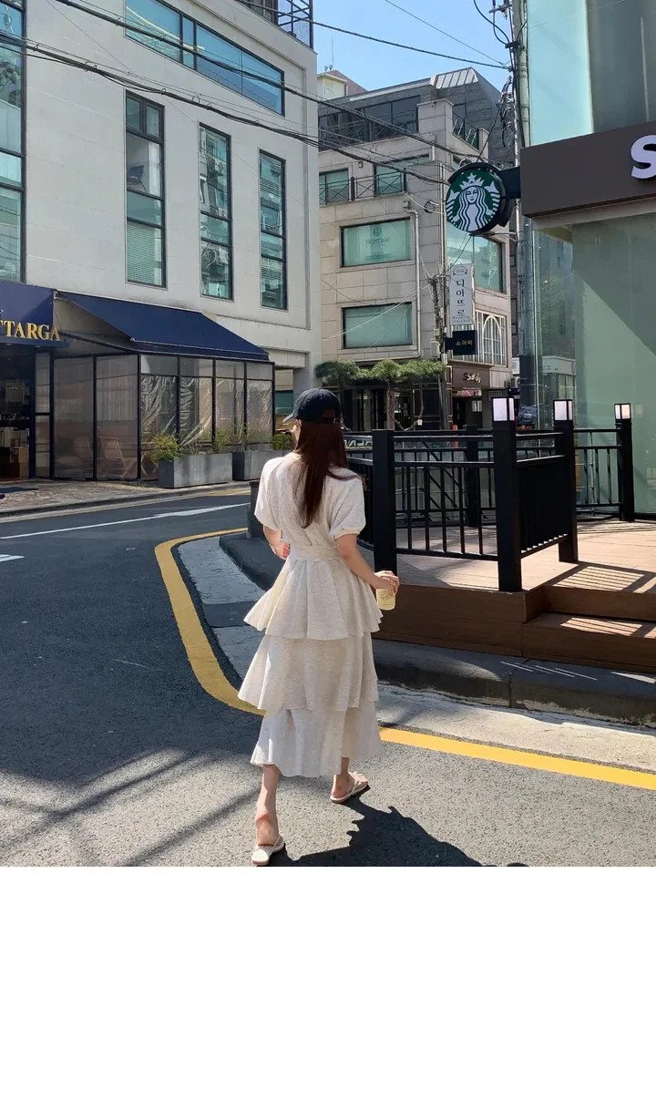 MQTIME - Korean Style Summer Women's Dress Lady Stretchy Tiered Dress for Travel Female Ruffled Hem Knitted Midi Dress Sweet Cake Dresses