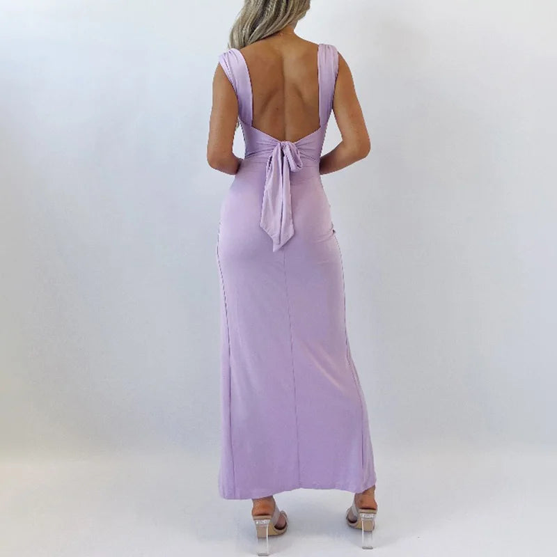 MQTIME - Lady New Slim High Waist Split Dress Temperament High Waist Sleeveless Halter Dress Summer New Solid Color Bodycon Evening Dress