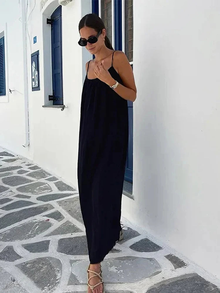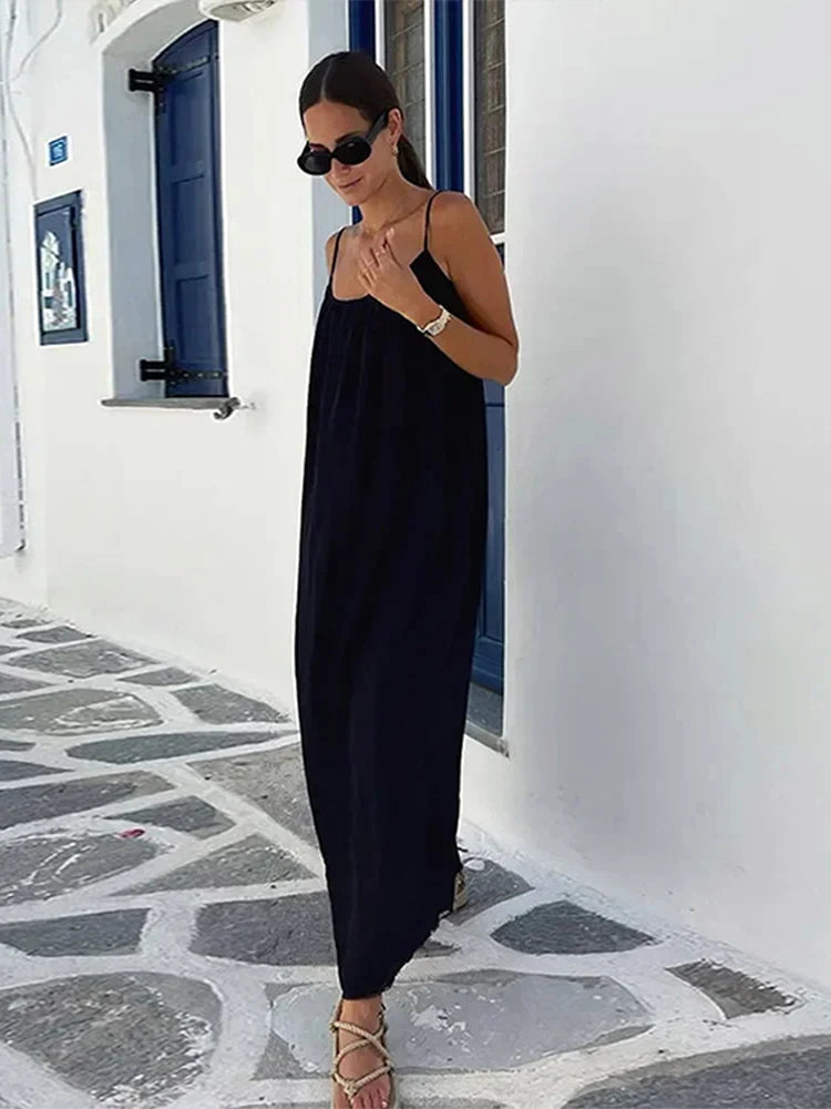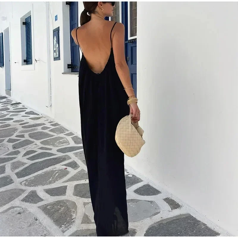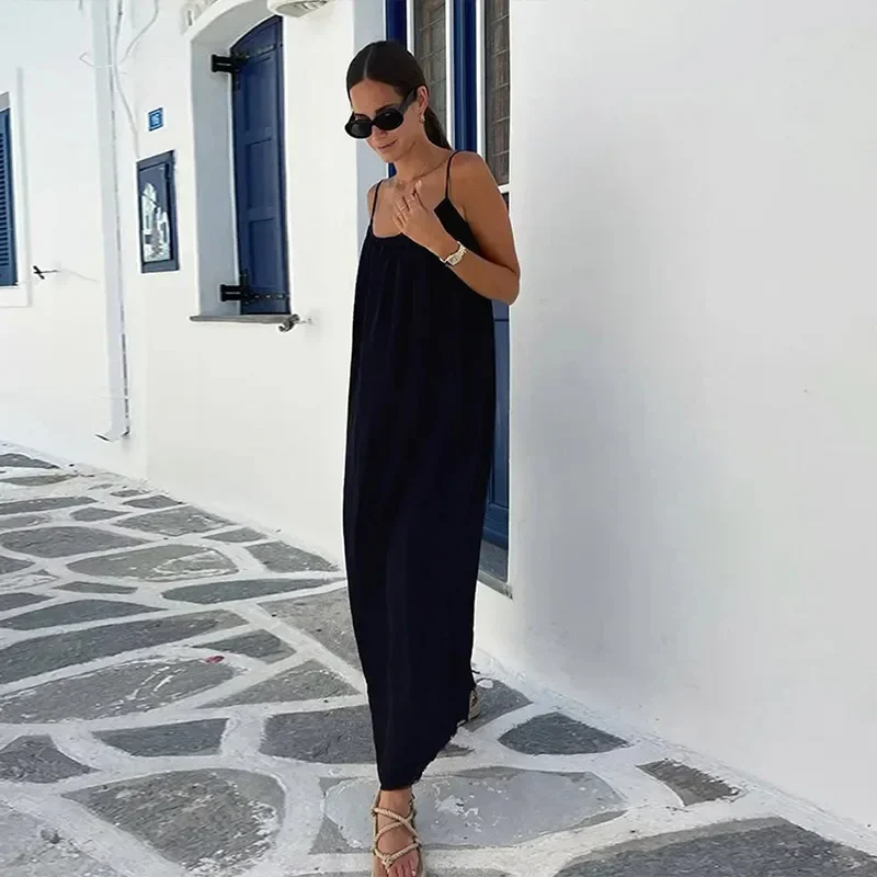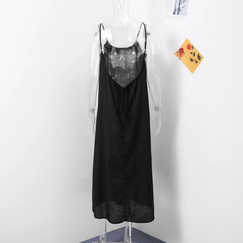 MQTIME - Loose Backless Solid Sling Women Dresses Sleeveless Empire Elegant Female Dress Fashion New Holidays Lady Beach Robes