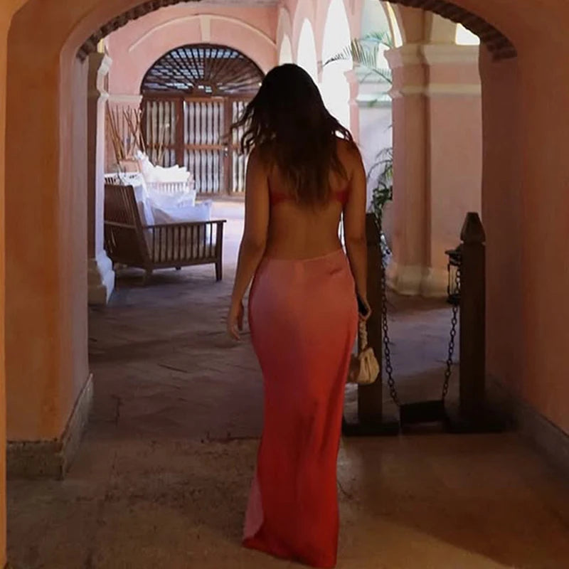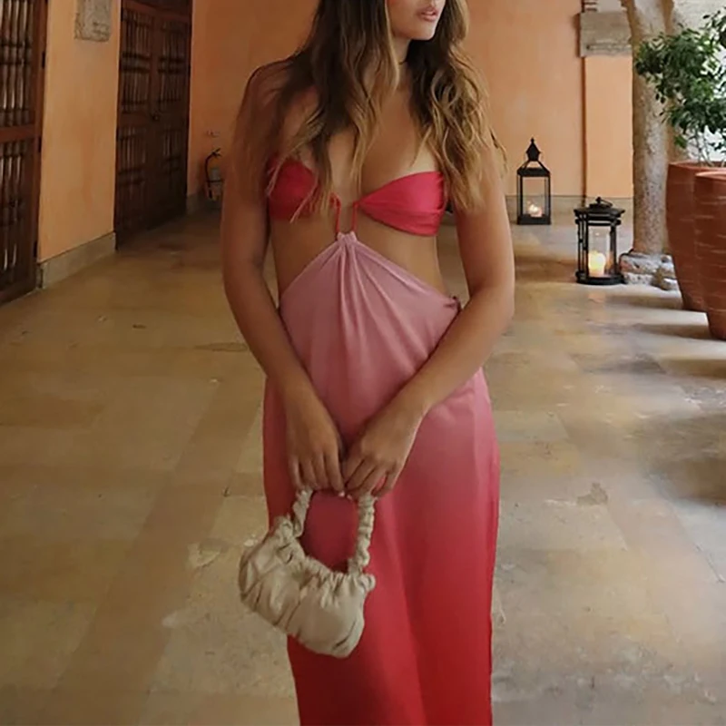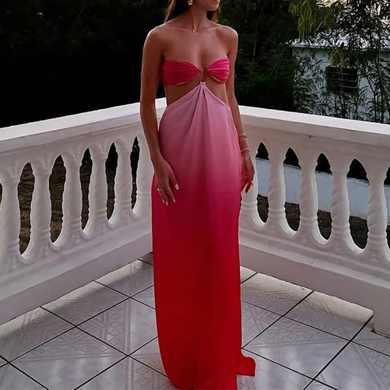 MQTIME - Luxury Hollow Waist Tube Top Dress Summer New Sleeveless Gradient Off Shoulder Evening Dress Elegant Lady Backless Banquet Gown