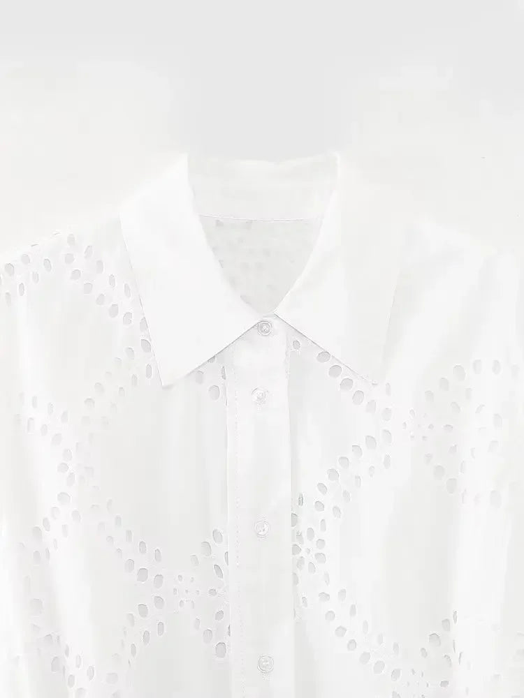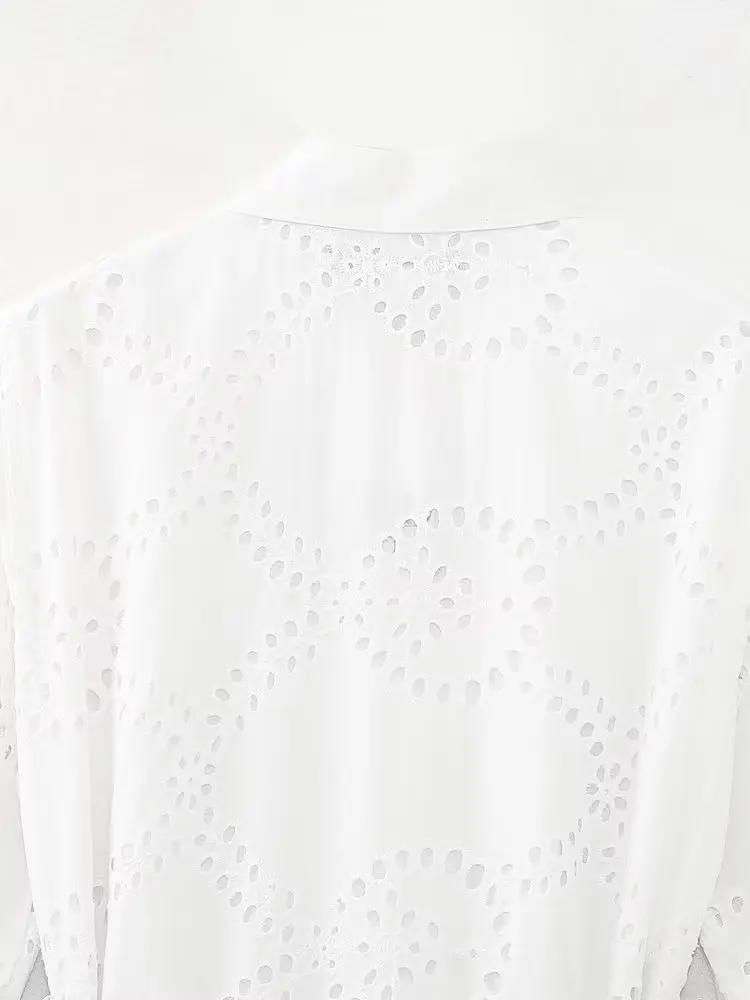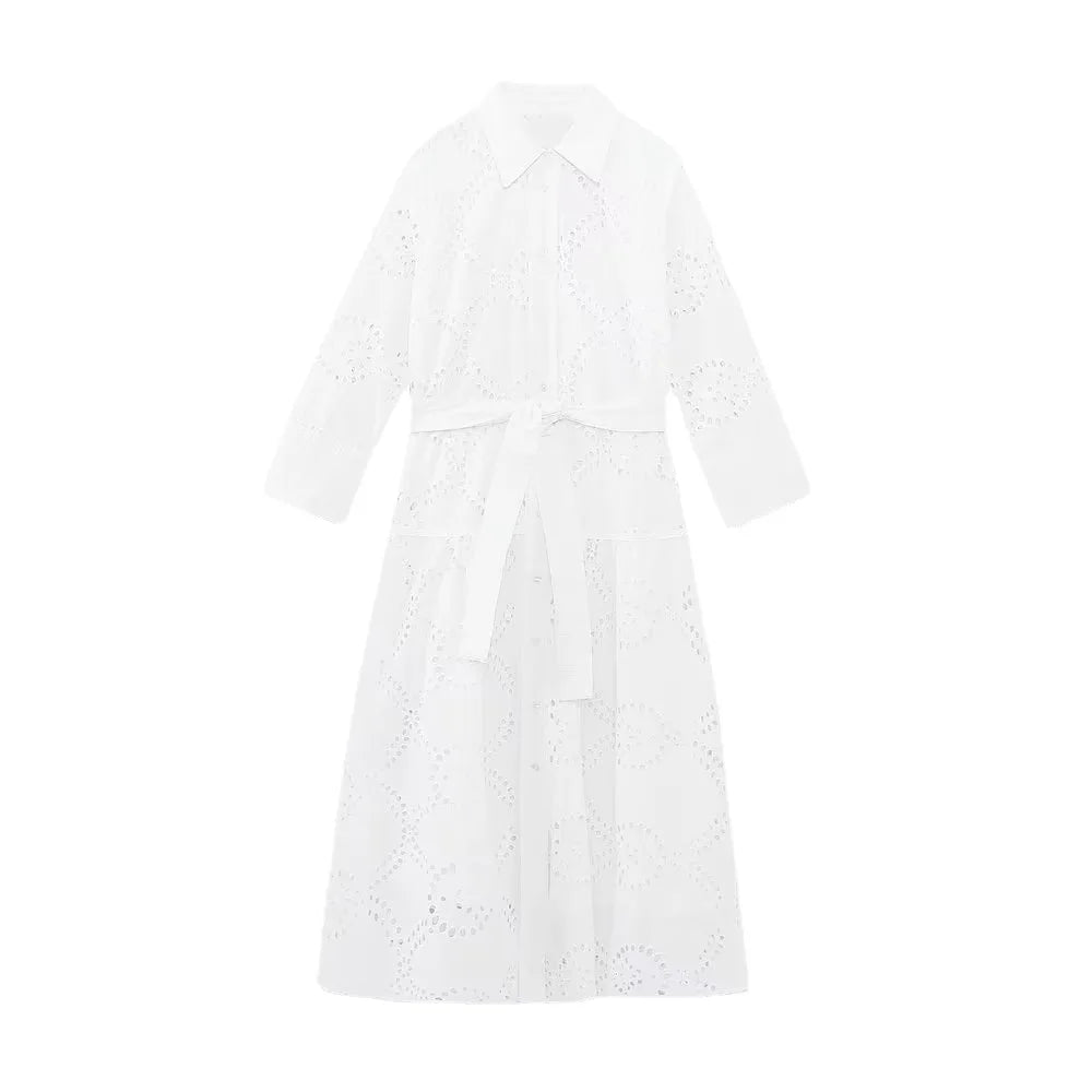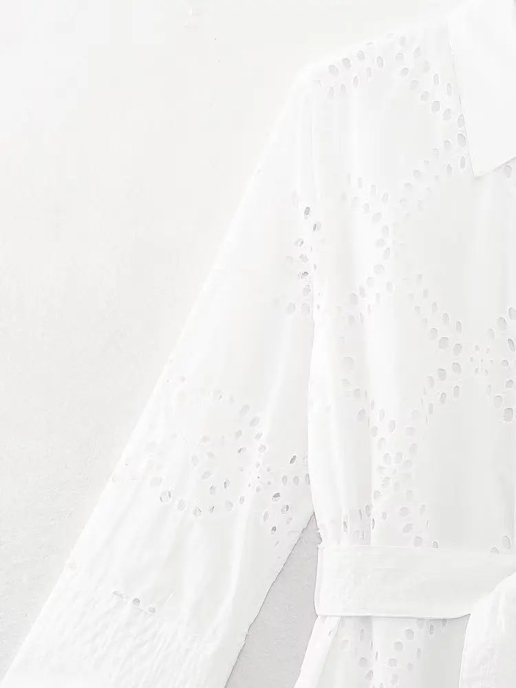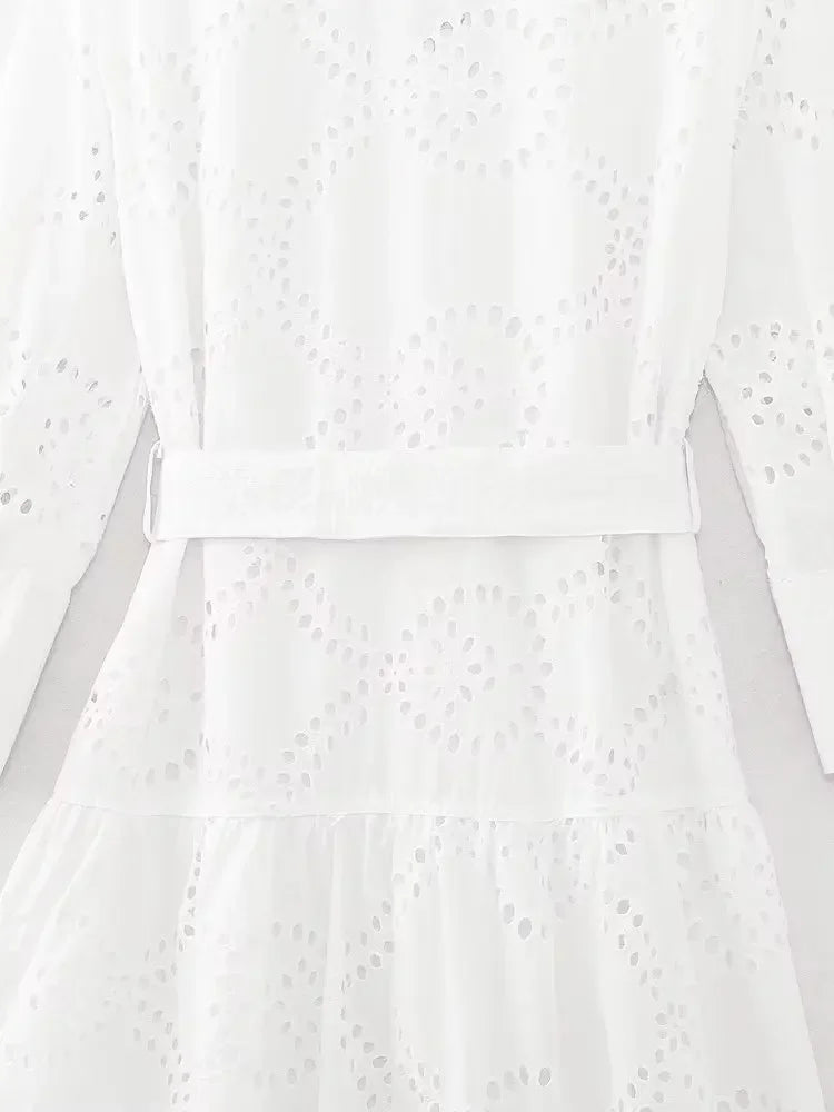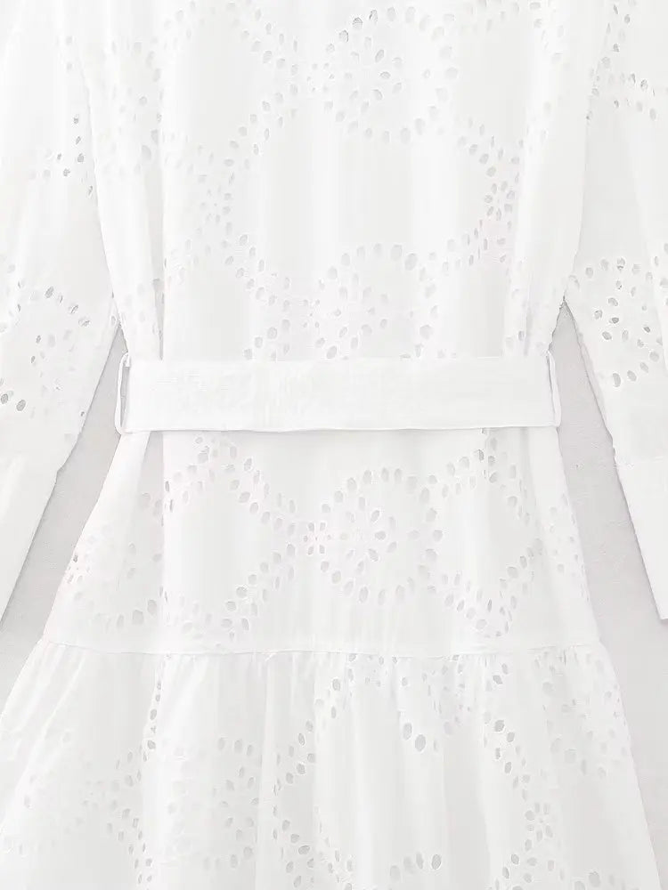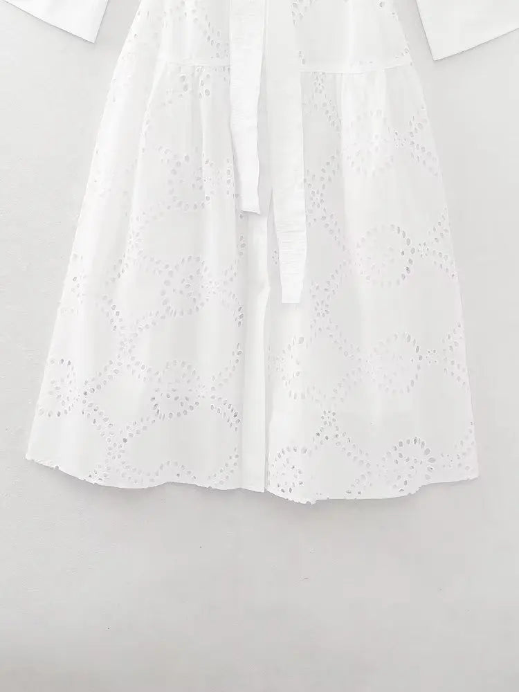 MQTIME - New White Midi Dress Long Sleeve Embroidery Blouse Dress Regular Fit Fashion Women's Dress Mujer Chic Vestidos