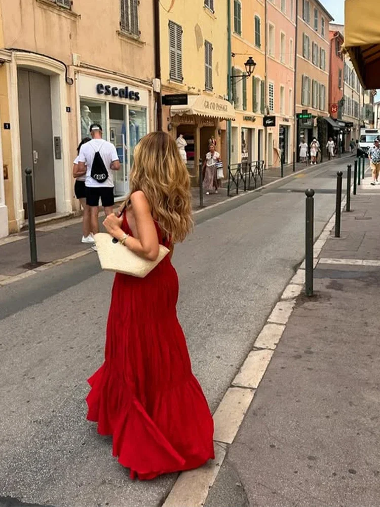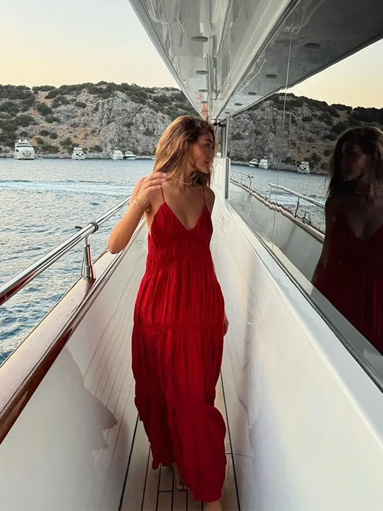 MQTIME - Pleated Halter Maxi Dress Women Large Skirt Hem Suspender Sexy Slimming Loose Camisole Robes Vacation Women Maxi Beach Dresses