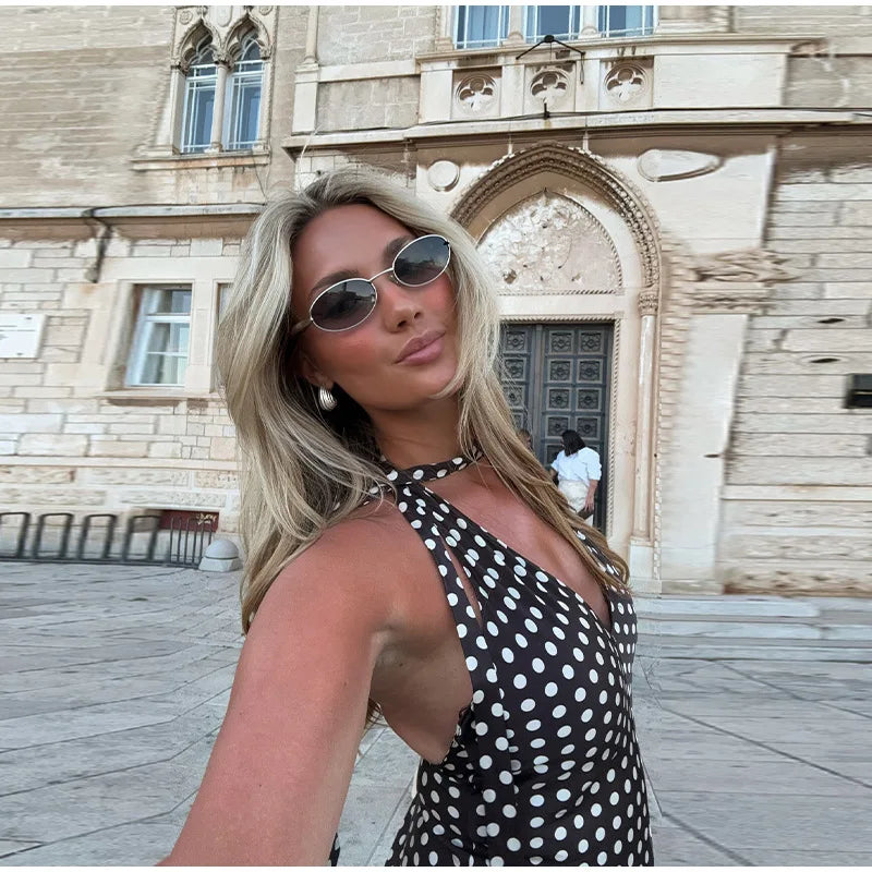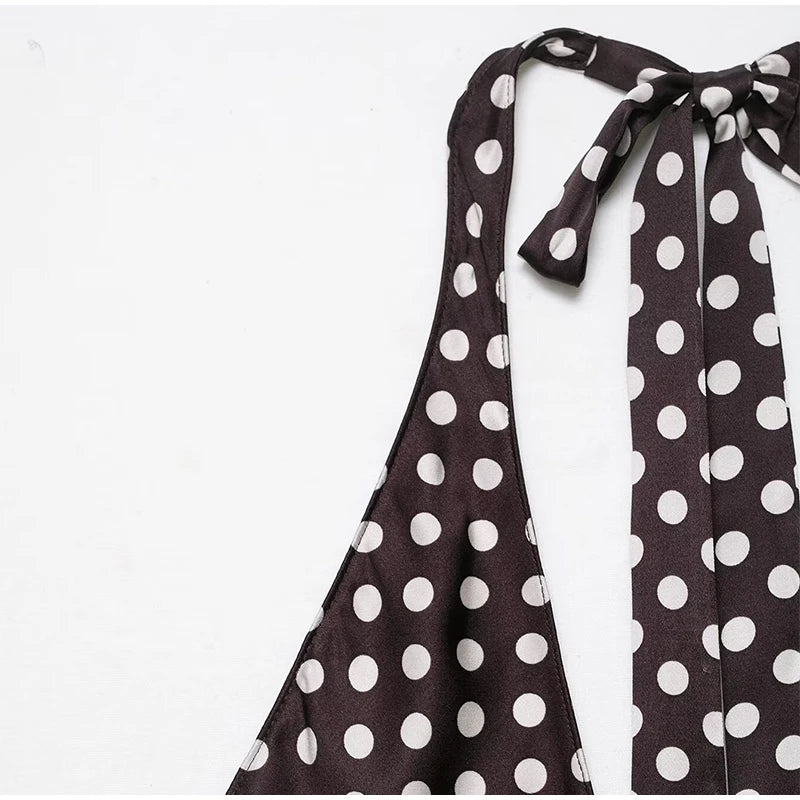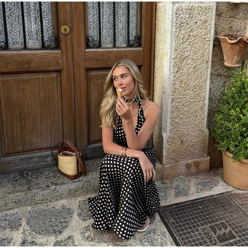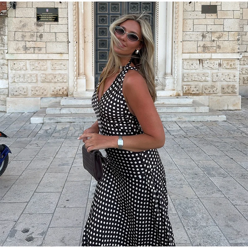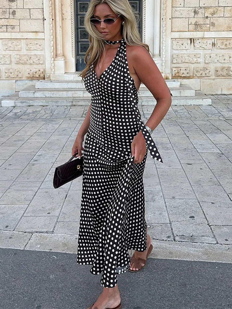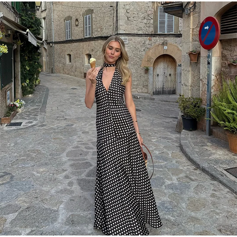 MQTIME - Polka Dot Halter Backless Long Dress Women Off Shoulder V-neck Scarf Sexy Sleeveless Dresses 2025 Summer Street Holiday Robe