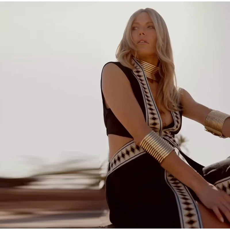 MQTIME - Printed Sexy Deep V-neck Backless Long Dress Women Sleeveless Belts Hollow Out O-neck A-line Dresses 2025 Summer Holiday Robe