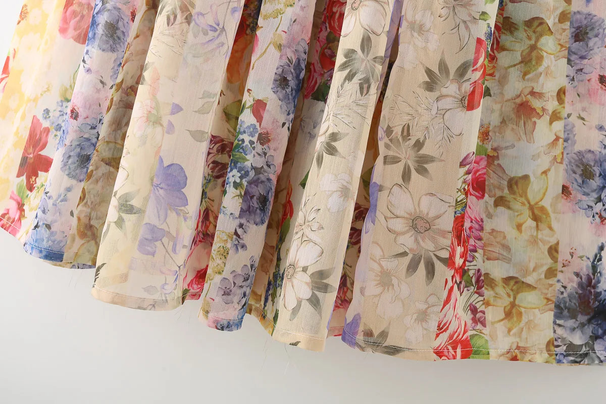 MQTIME  -  Printing Boho Dress Lace-up Straps Maxi Dress A-line Floral Pleated Vestidos Chiffon Holiday Dresses Hippie Robes