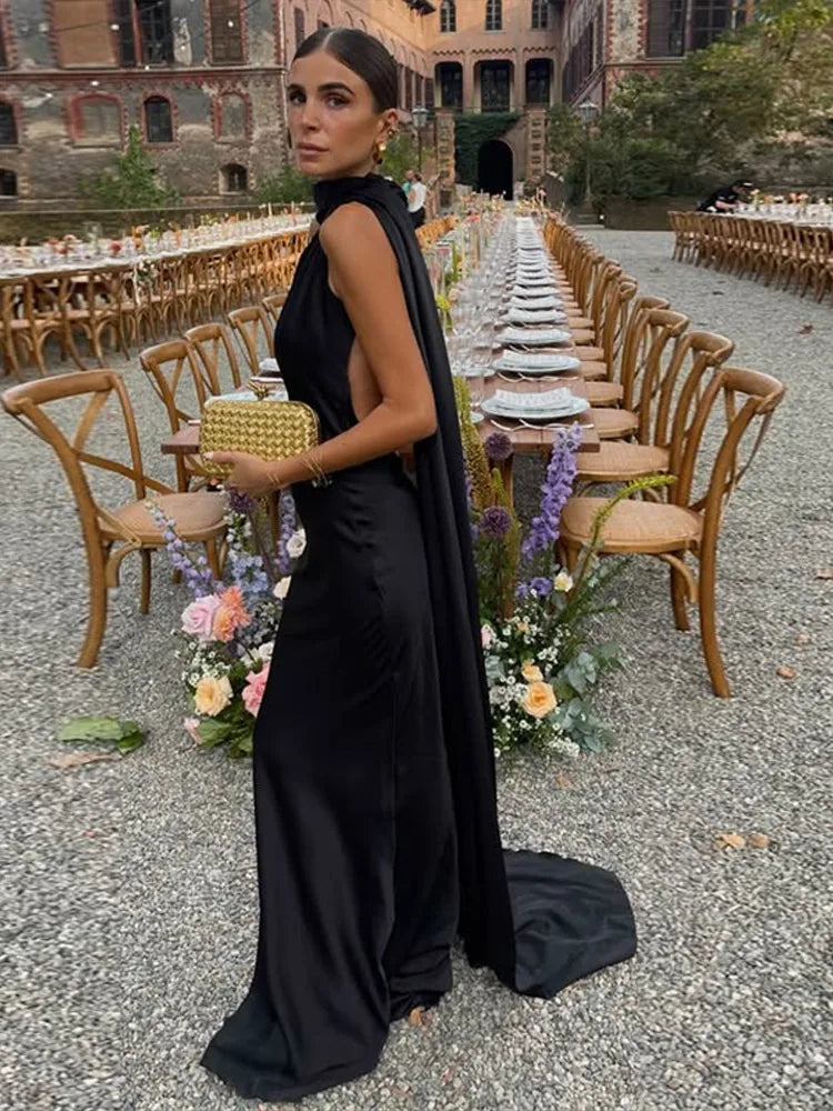 MQTIME  -  Ribbon Satin Long Party Dress Women Elegant Solid Sleeveless Female Backless Dresses 2025 Spring Summer Lady Evening Club Gowns